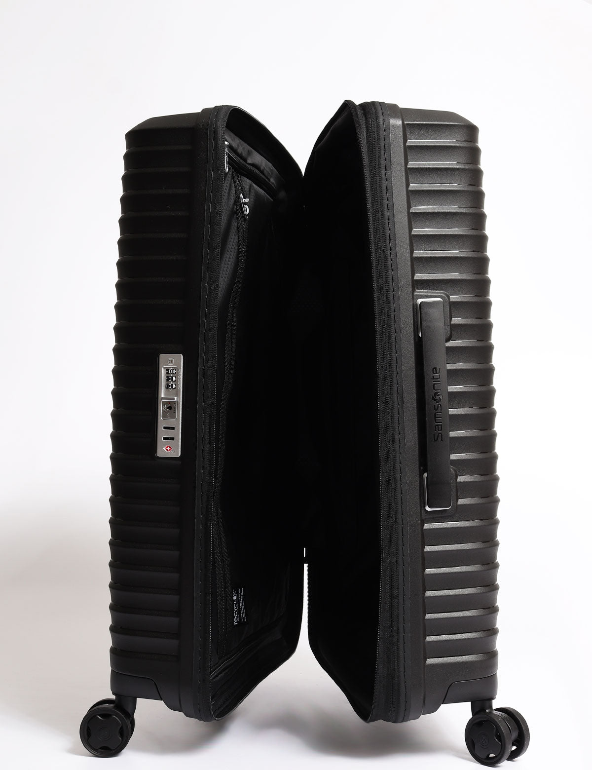 Take your travel to the next level of comfort and functionality with the Upscape line of Samsonite suitcases, featuring revolutionary shock-absorbing wheels and a removable and washable lining. Lightweight and resistant, the trolleys and suitcases in the collection are also sustainable