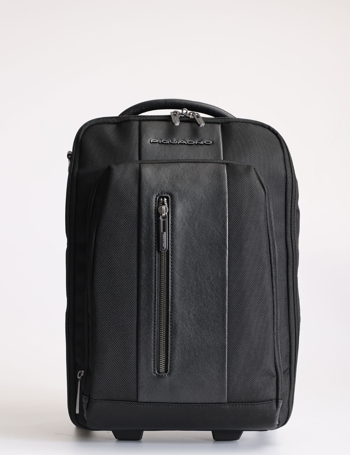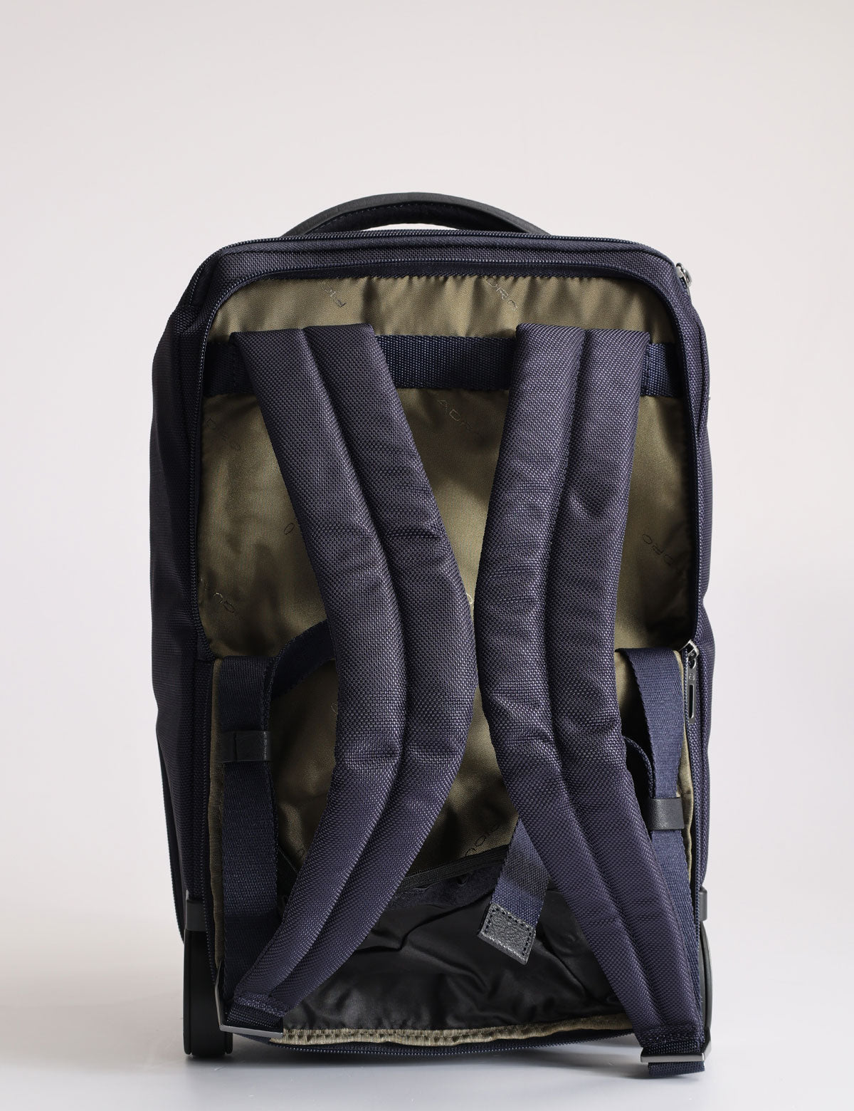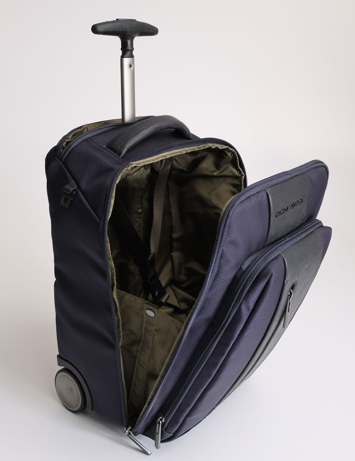 Piquadro hand luggage convertible into a backpack with 12.9" tablet compartment, made of fabric with leather details