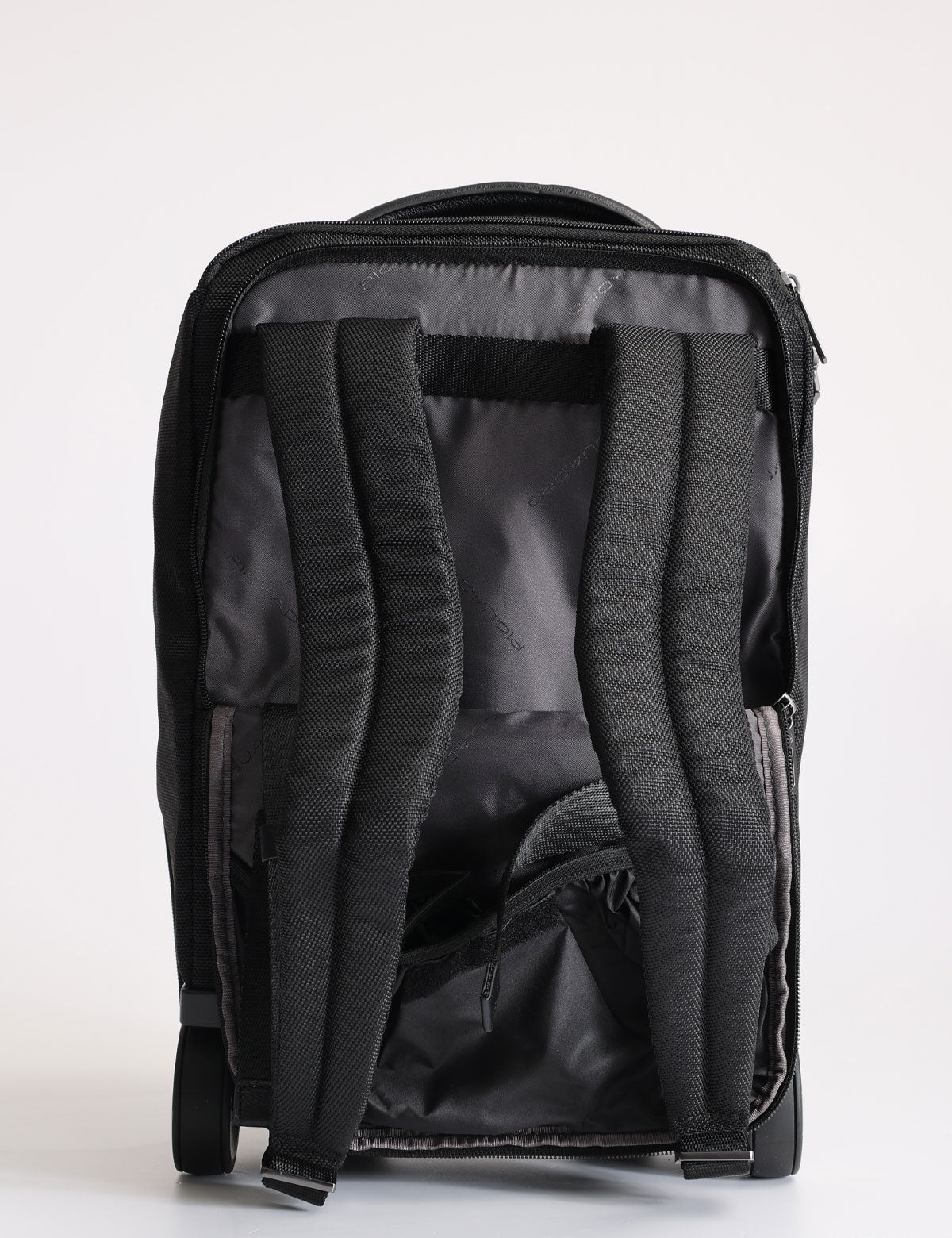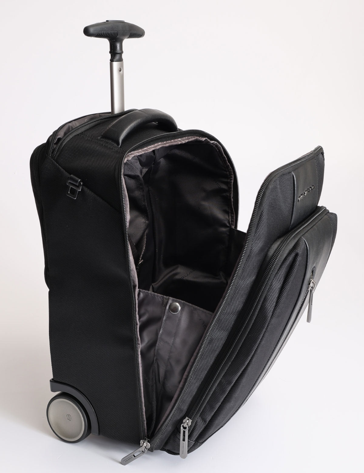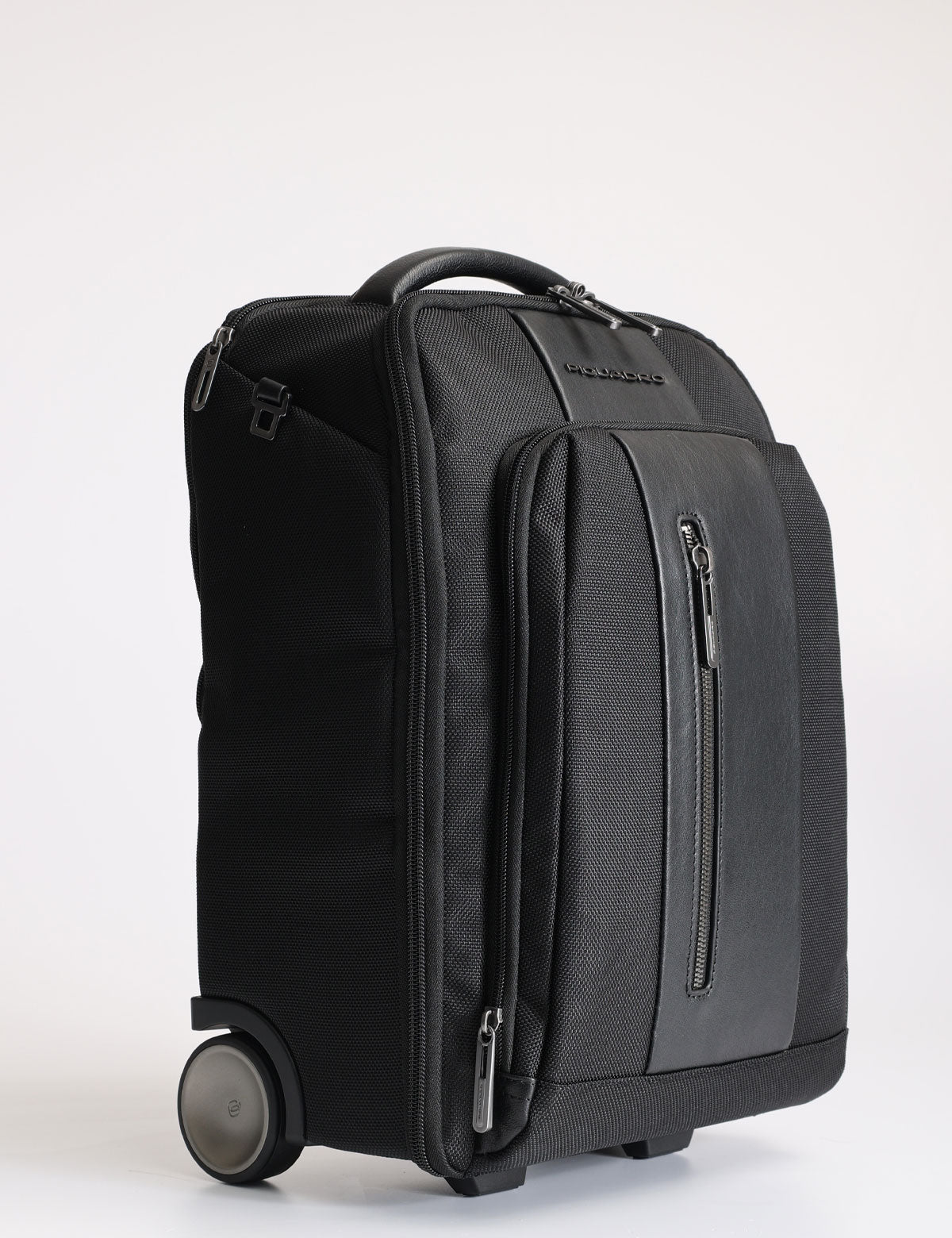 Piquadro hand luggage convertible into a backpack with 12.9" tablet compartment, made of fabric with leather details