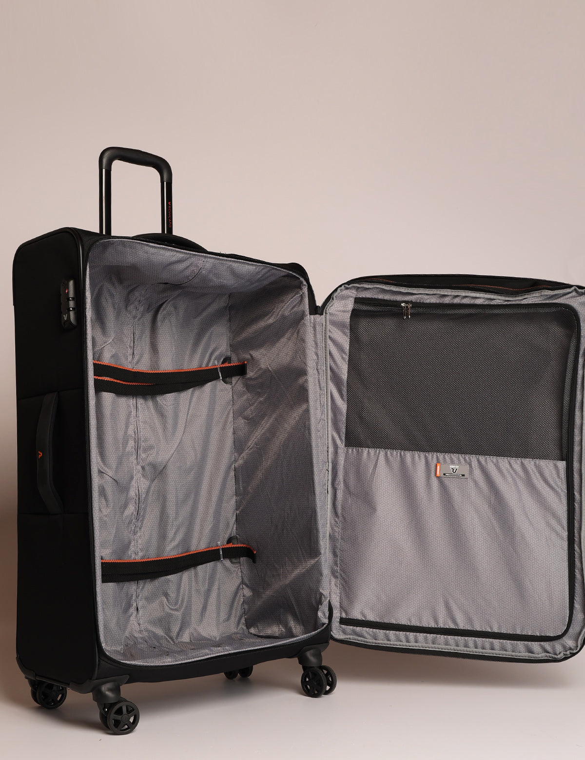 Roncato large four-wheeled hold luggage with expandability for greater load capacity