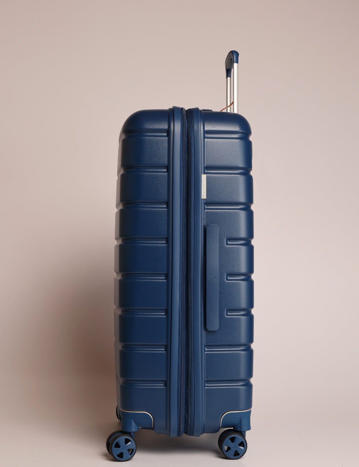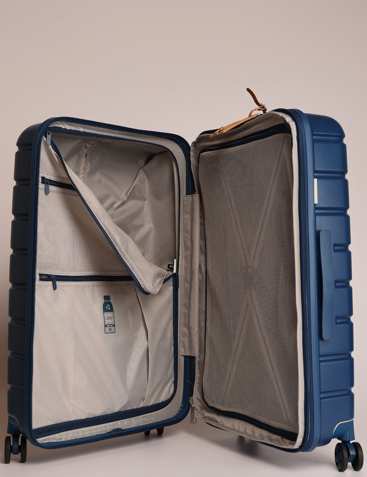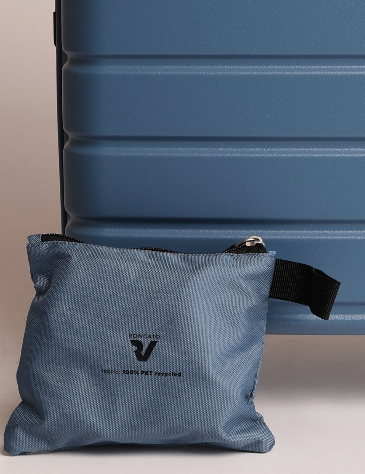 The Relife line by Roncato is a collection of eco-sustainable suitcases, made of RPET obtained from recycled plastic bottles. Available in three sizes (cabin, medium and large), it offers removable double wheels, expandable system and TSA lock. The Italian design combines functionality and respect for the environment, with details such as the cork address tag and the safety zip