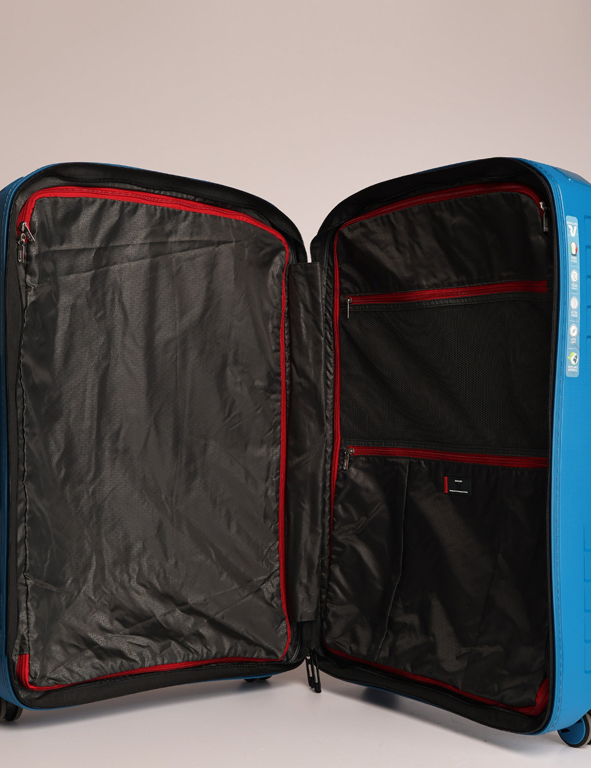 The Ypsilon 4.0 line by Roncato is a collection of expandable hard suitcases, made of 100% recyclable polypropylene, designed and produced entirely in Italy. It offers three sizes (cabin, medium and large), all equipped with four swivel wheels, TSA lock and protective corners. The cabin model includes an integrated USB port for charging electronic devices during travel. The collection combines lightness, resistance and environmental sustainability.