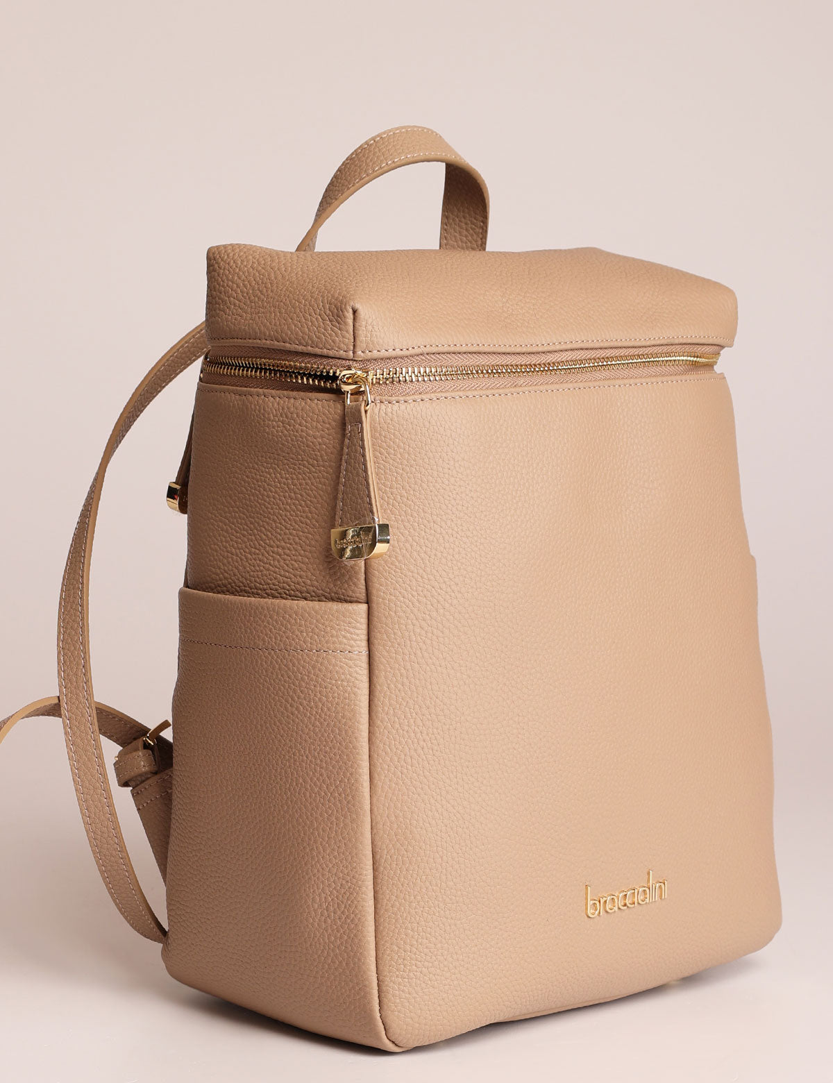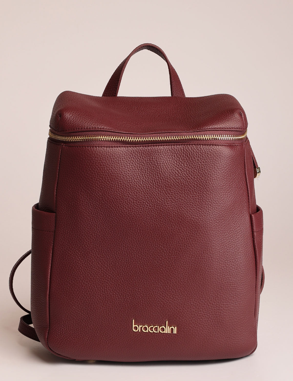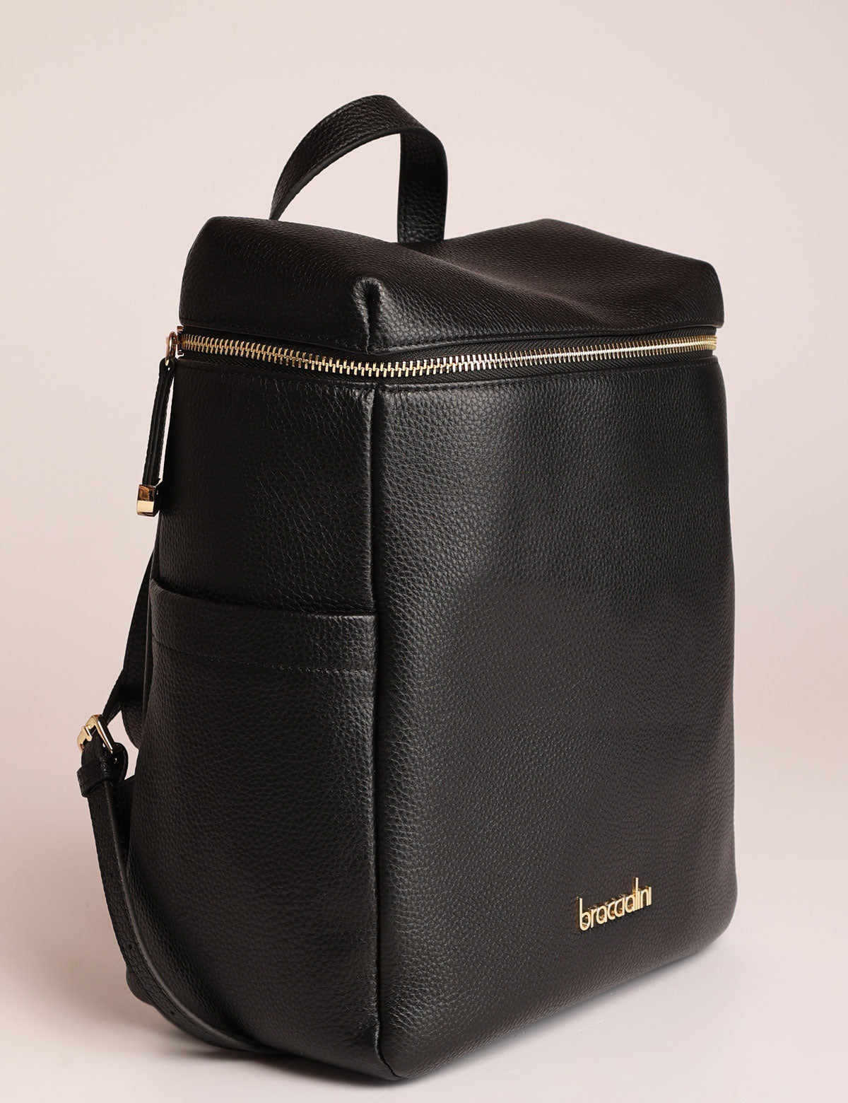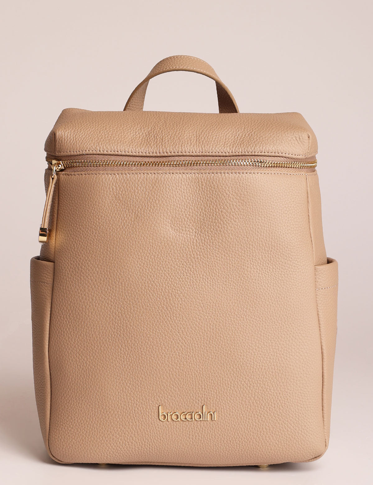 Braccialini women's backpack, leather model with zip top opening and gold-colored details