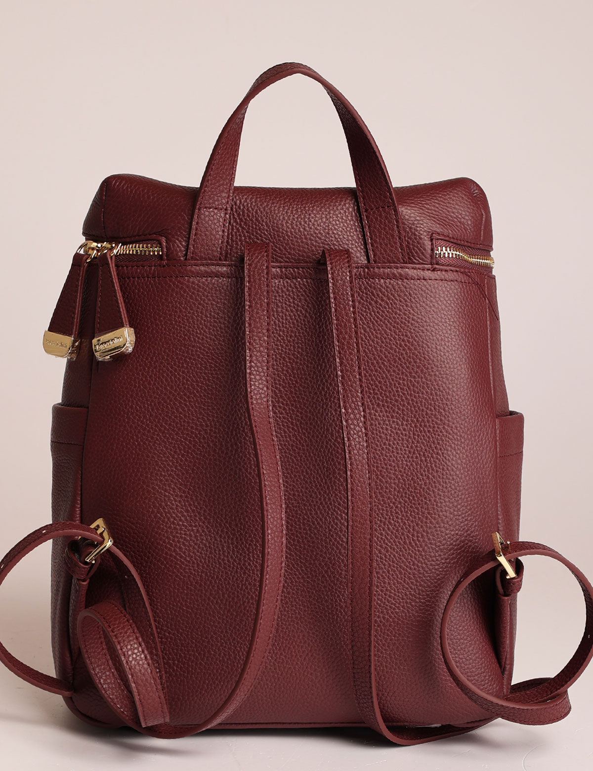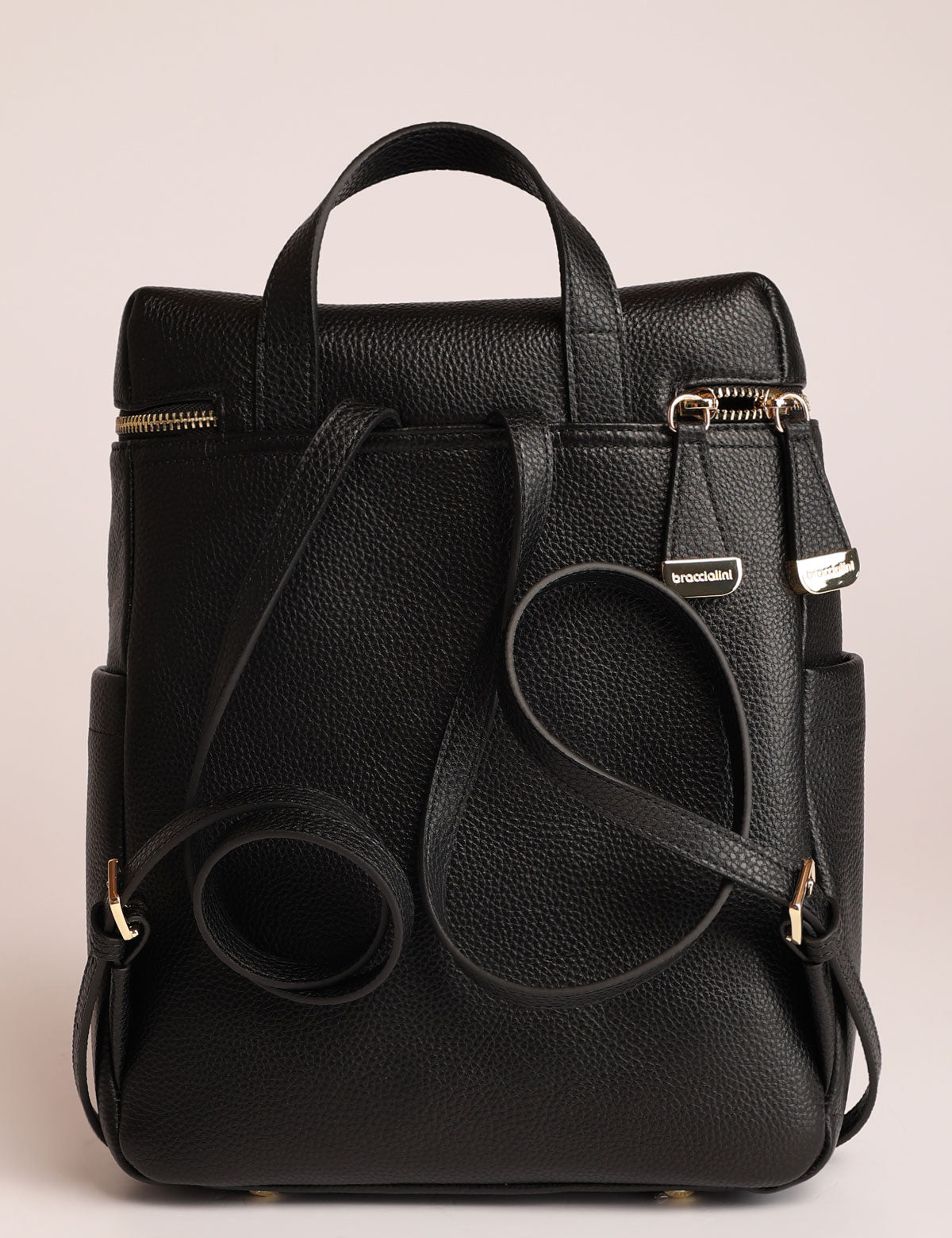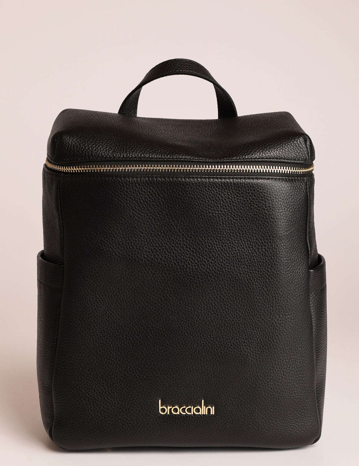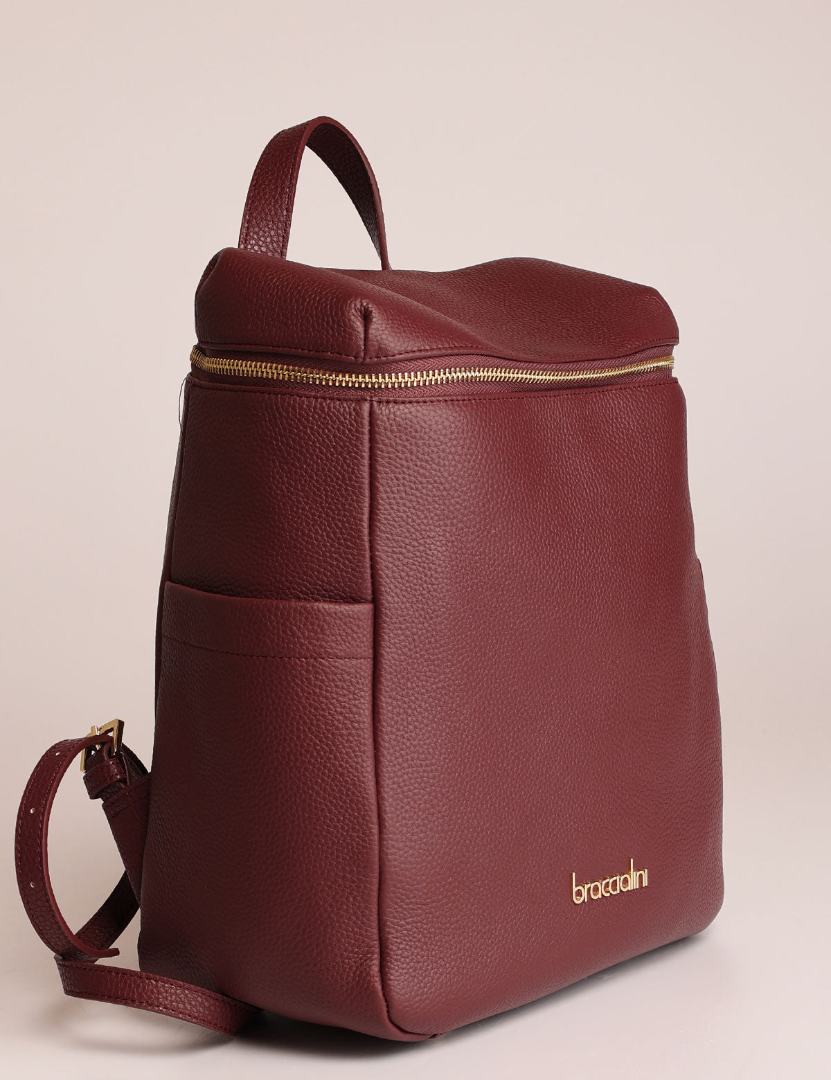 Braccialini women's backpack, leather model with zip top opening and gold-colored details
