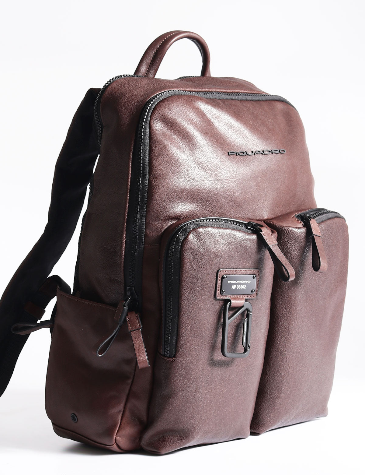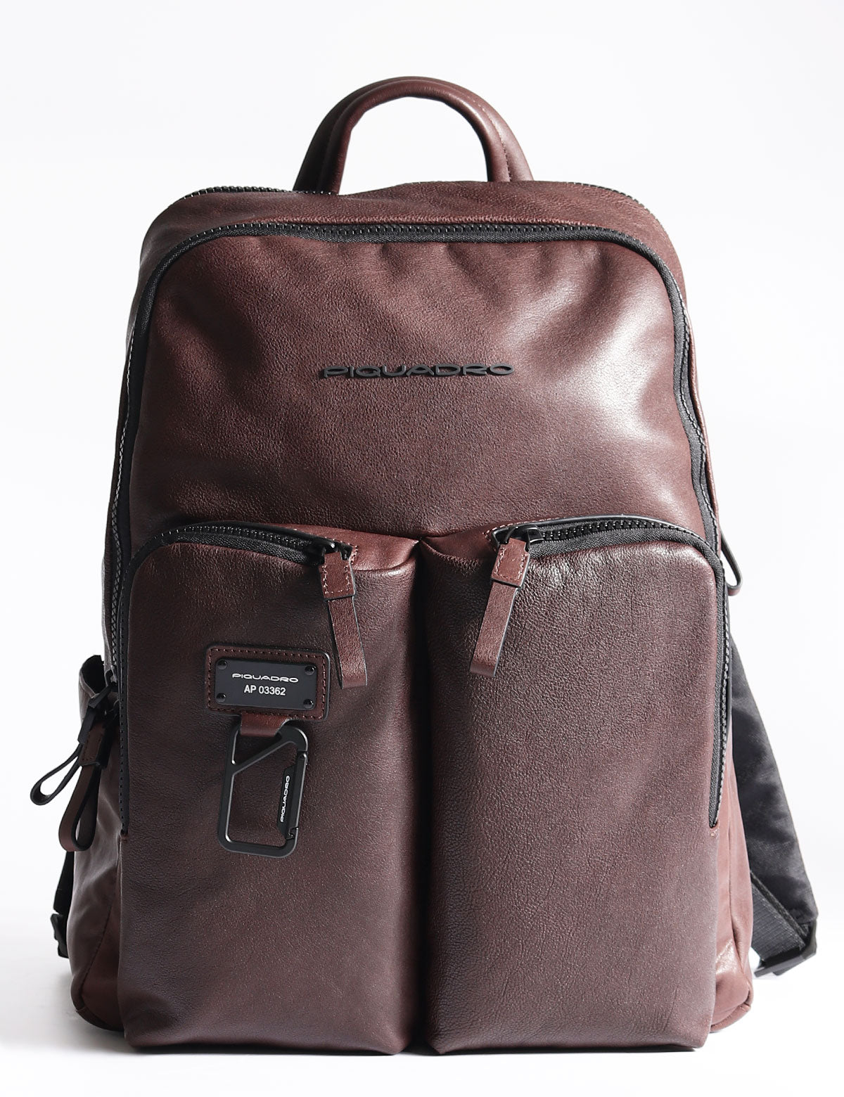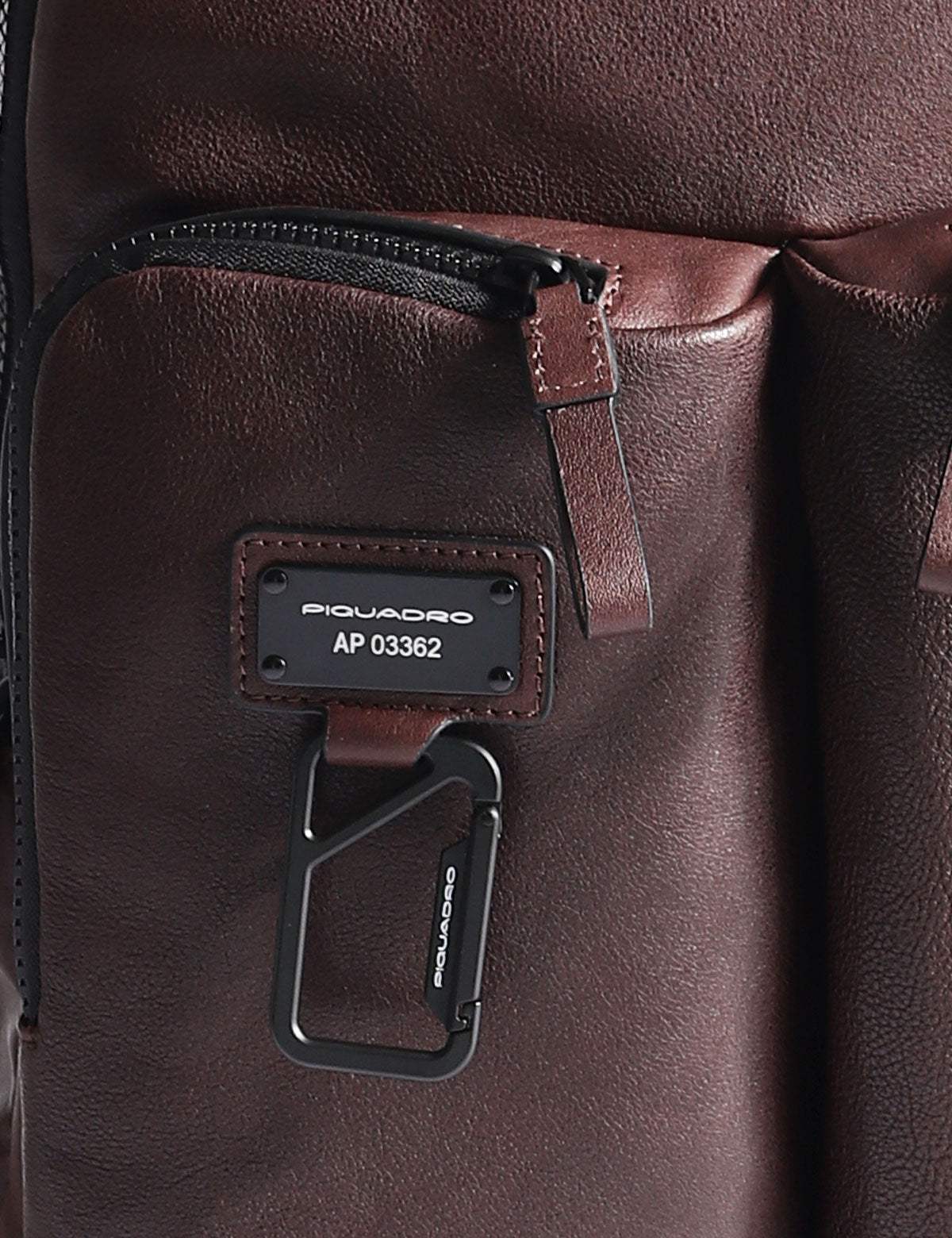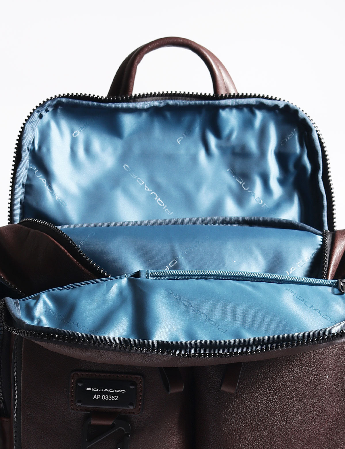 Piquadro business backpack made of leather, with compartment for laptop up to 14 inches and tablet up to 11 inches