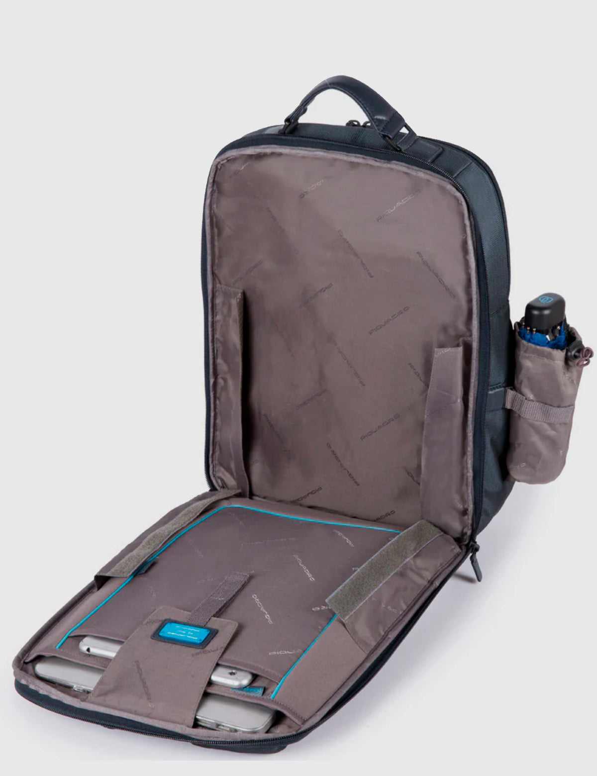 Piquadro business backpack in technical fabric with compartment featuring a flap opening and a laptop pocket up to 15.6 inches