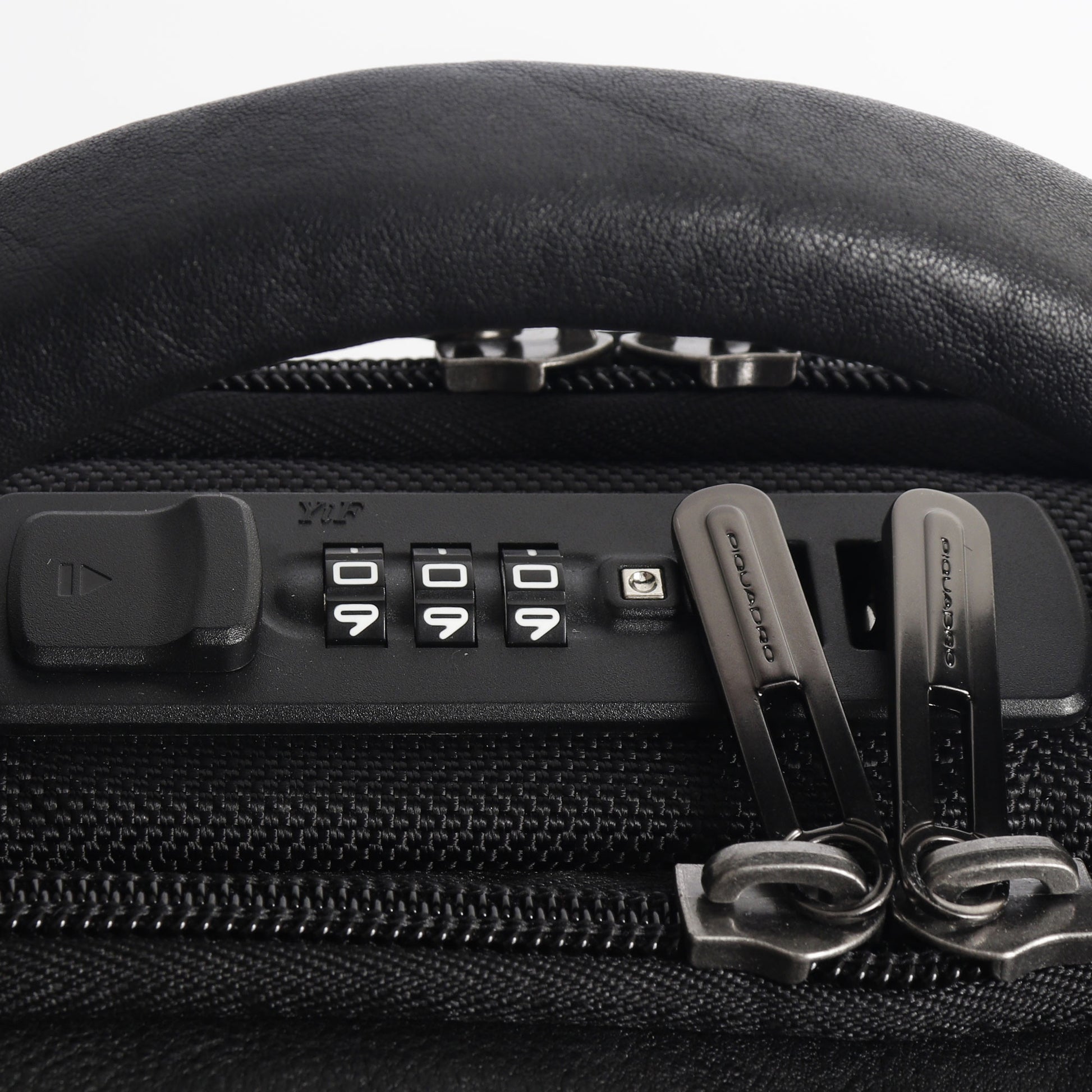 The Brief collection by Piquadro is characterized by the full-grain vegetable-tanned calfskin with a homogeneous appearance thanks to the artisanal washing process combined with a water-resistant technical fabric. Each model is finished with gunmetal and brushed metal hardware.