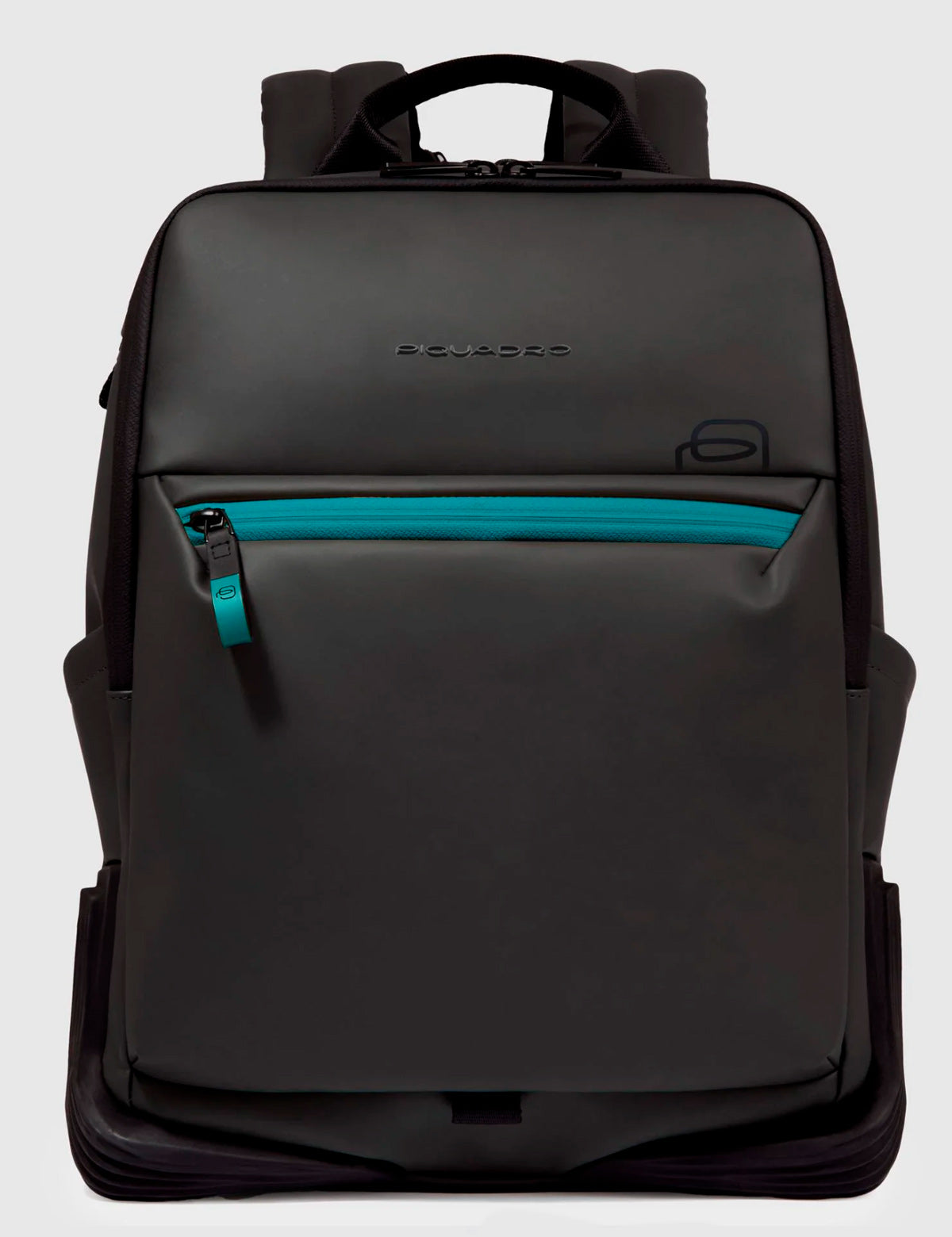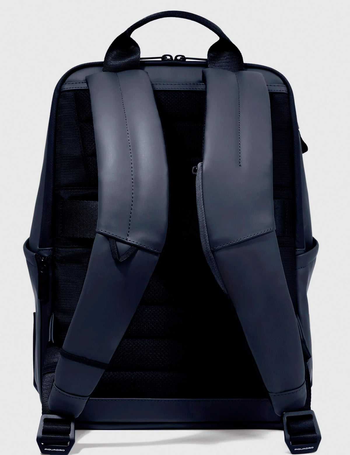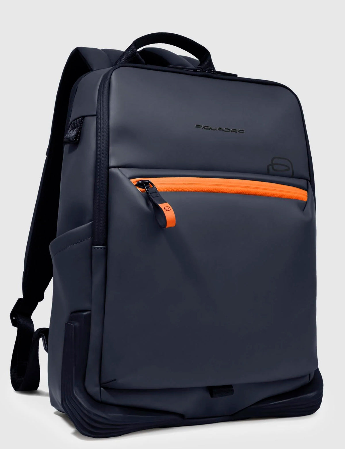 Water-resistant Piquadro business backpack, made of fabric with anti-shock neoprene reinforcements and equipped with pockets for all your everyday technological accessories