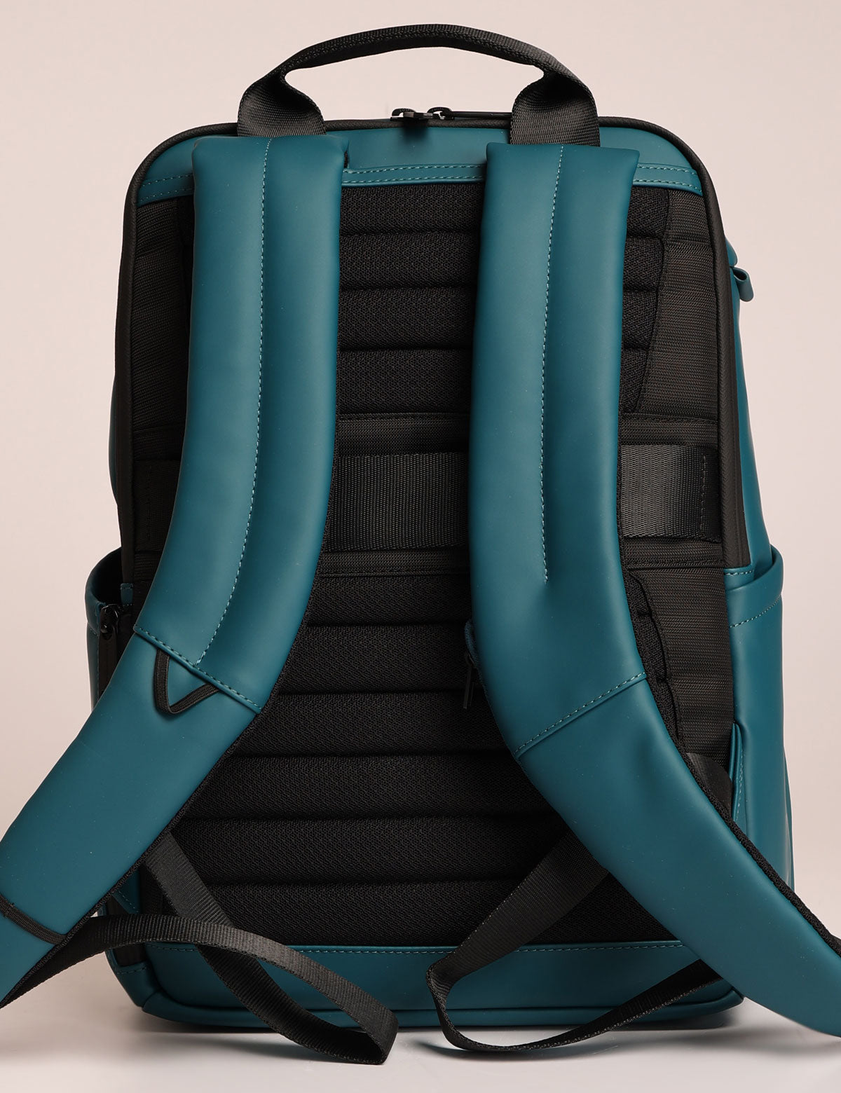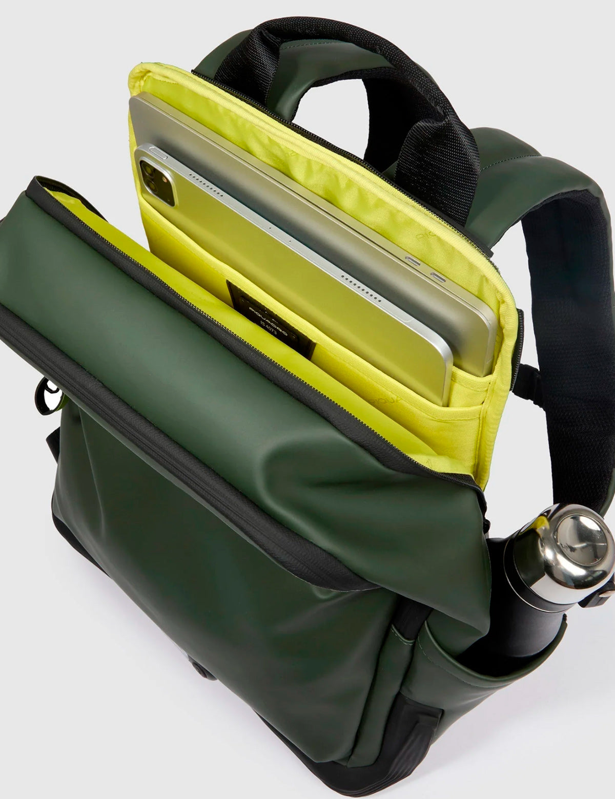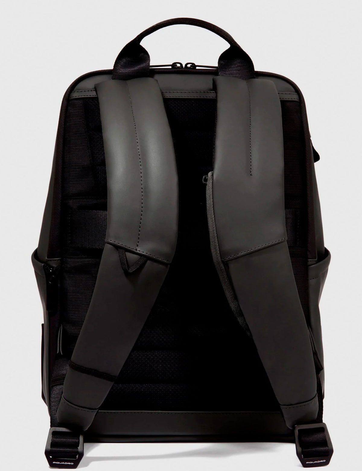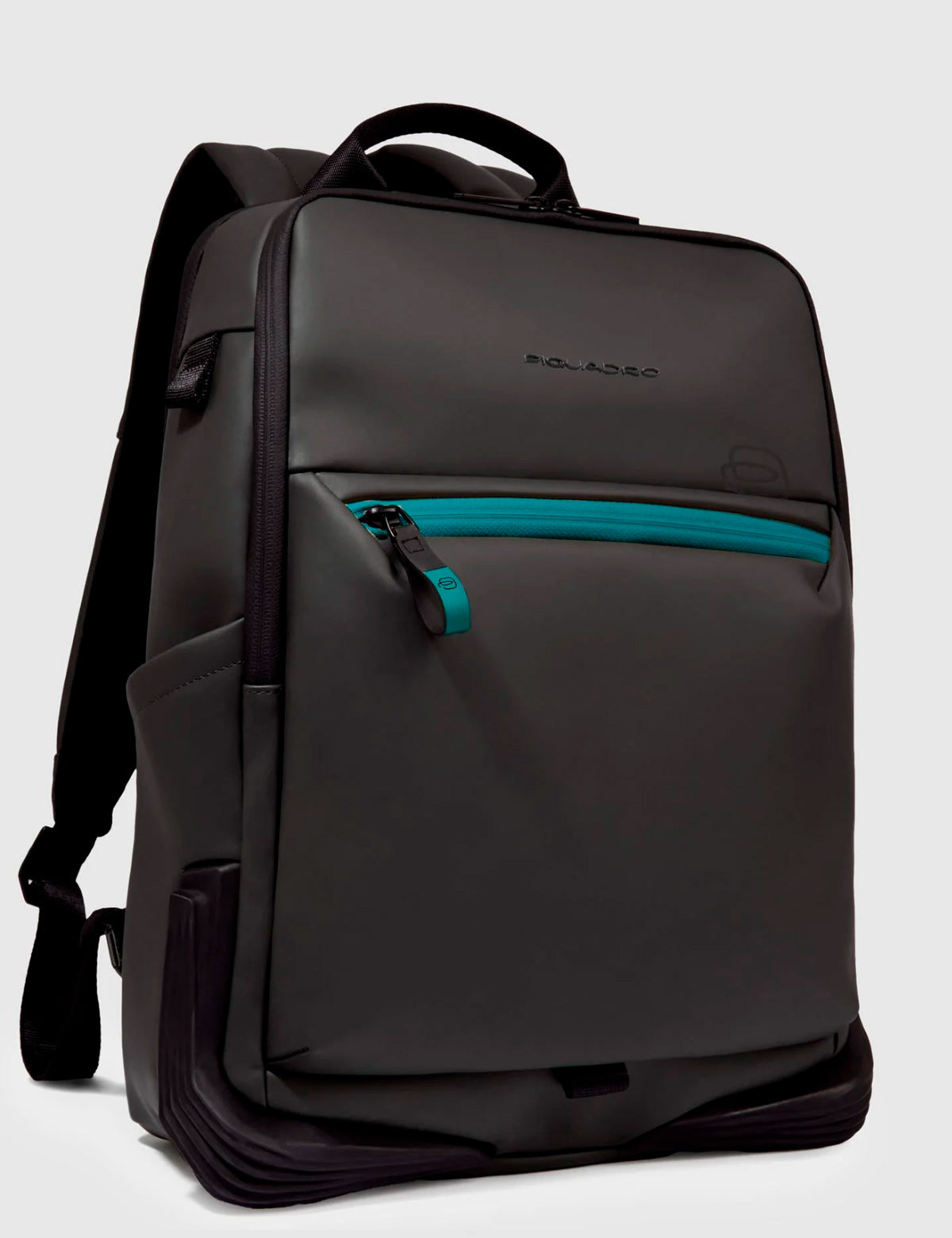 Water-resistant Piquadro business backpack, made of fabric with anti-shock neoprene reinforcements and equipped with pockets for all your everyday technological accessories