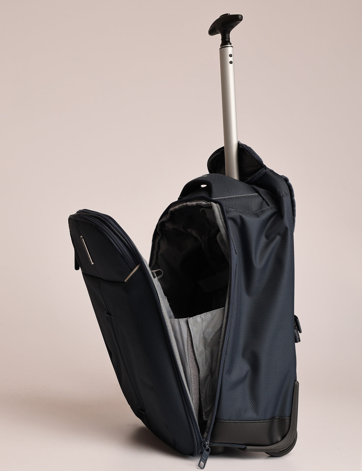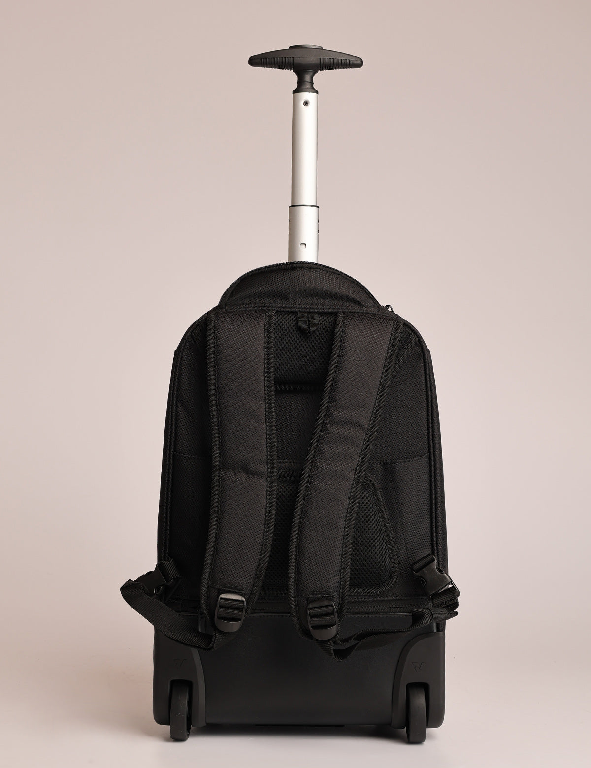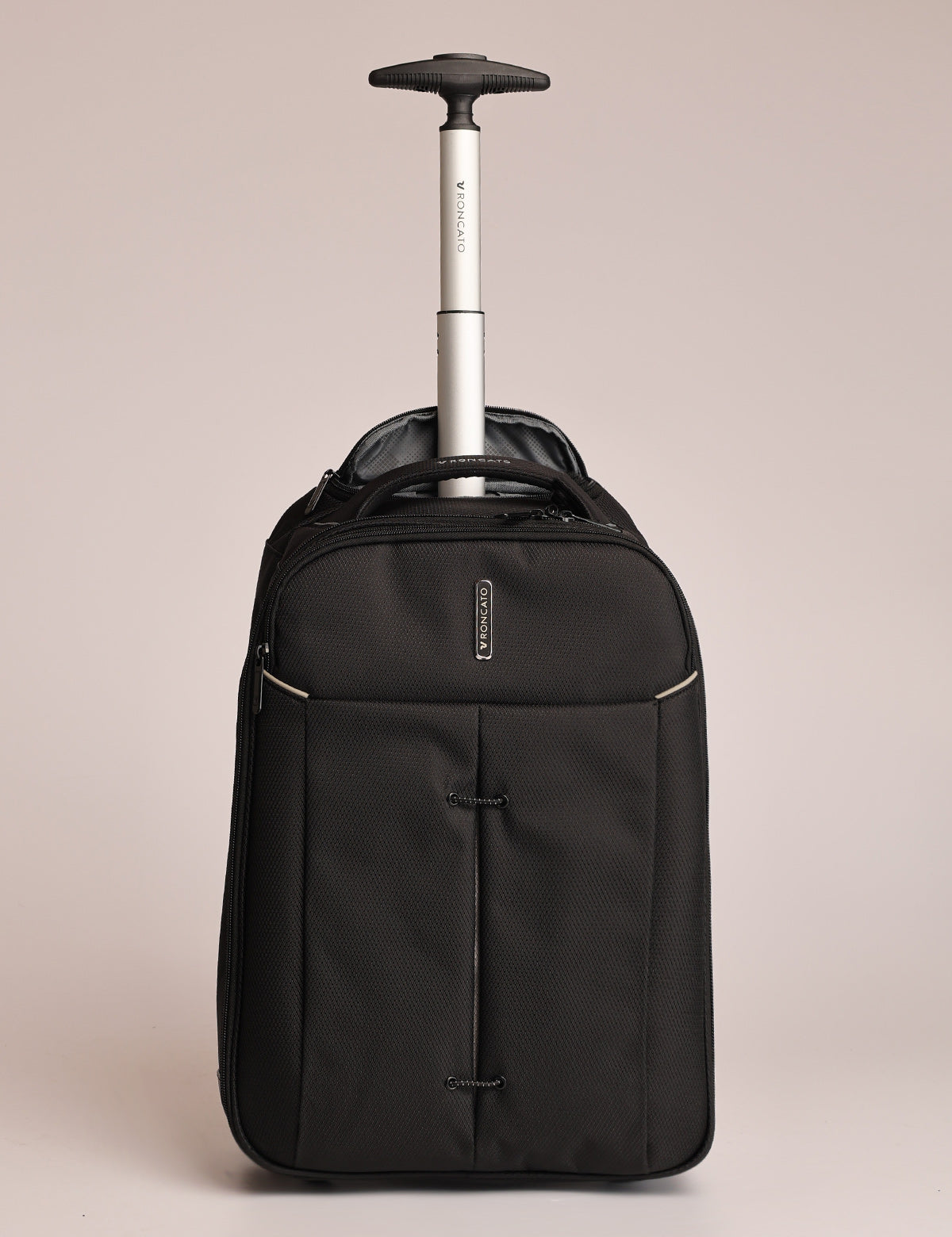 Roncato backpack with wheels and double-tube handle, equipped with adjustable shoulder straps to be pulled or carried on the shoulder