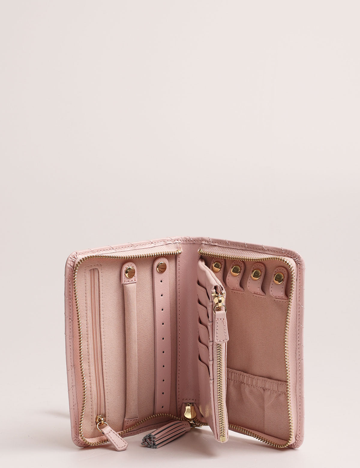 Portagioie da viaggio Friedrich23 pratico da trasportare grazie alla chiusura zip, realizzata in pelle con motivo trapuntato