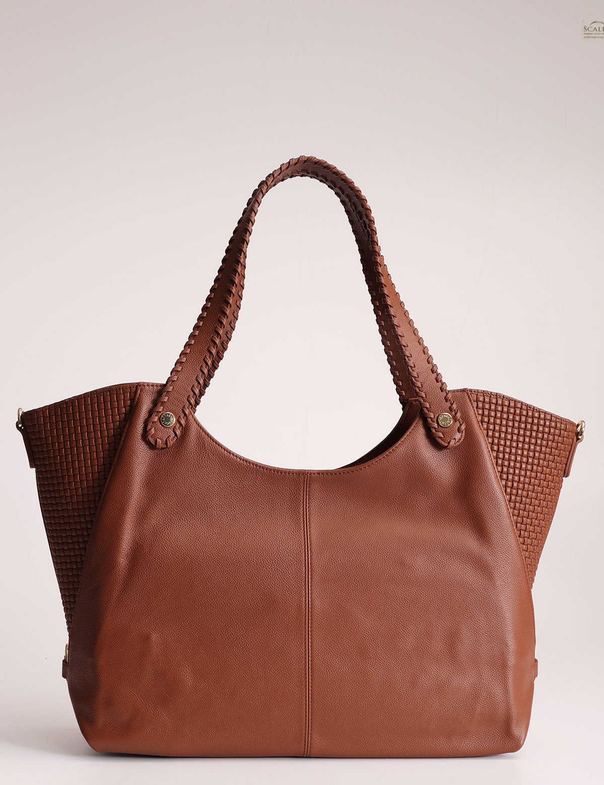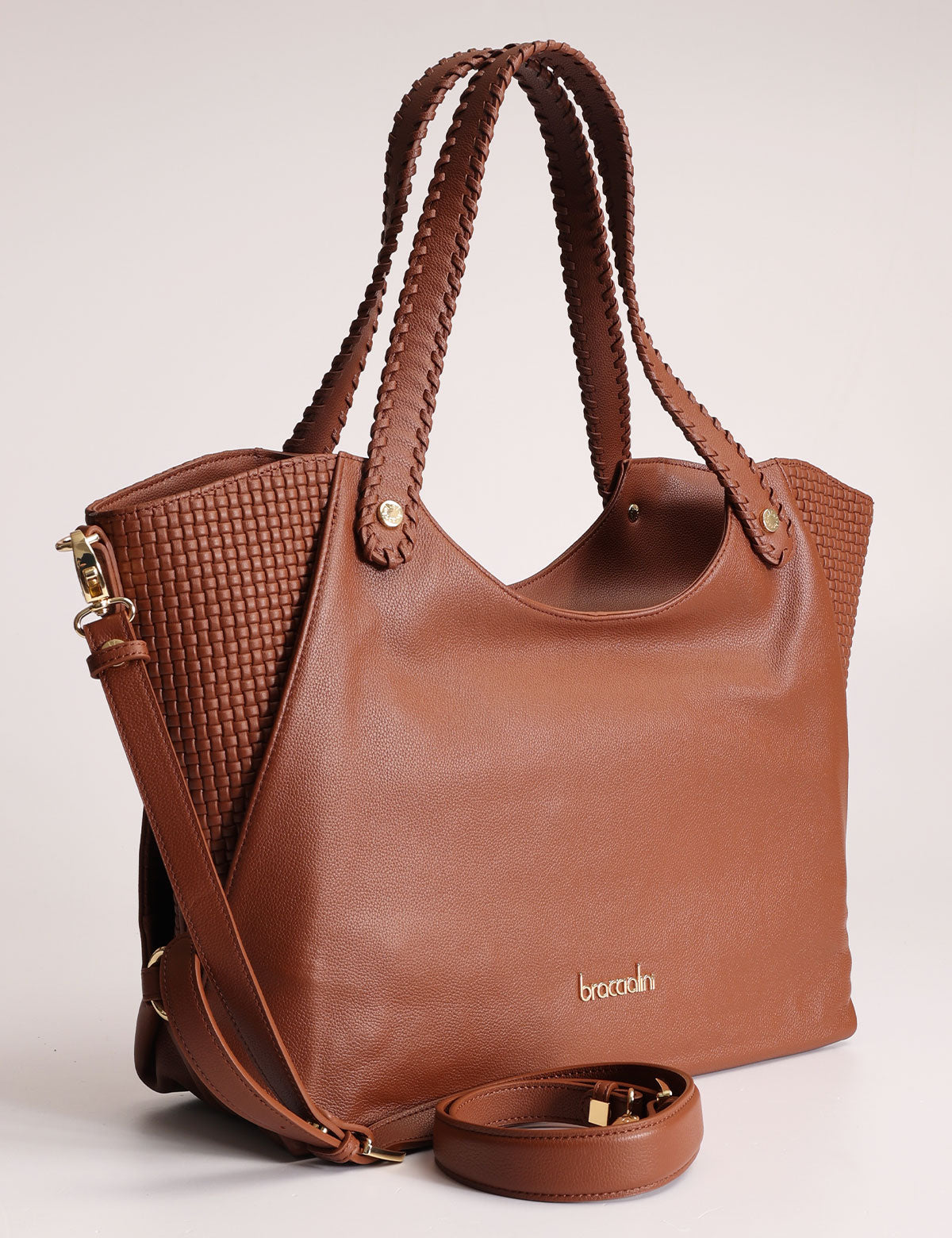 Borsa da donna Braccialini modello a spalla con dettaglio intreccio sui lati del modello