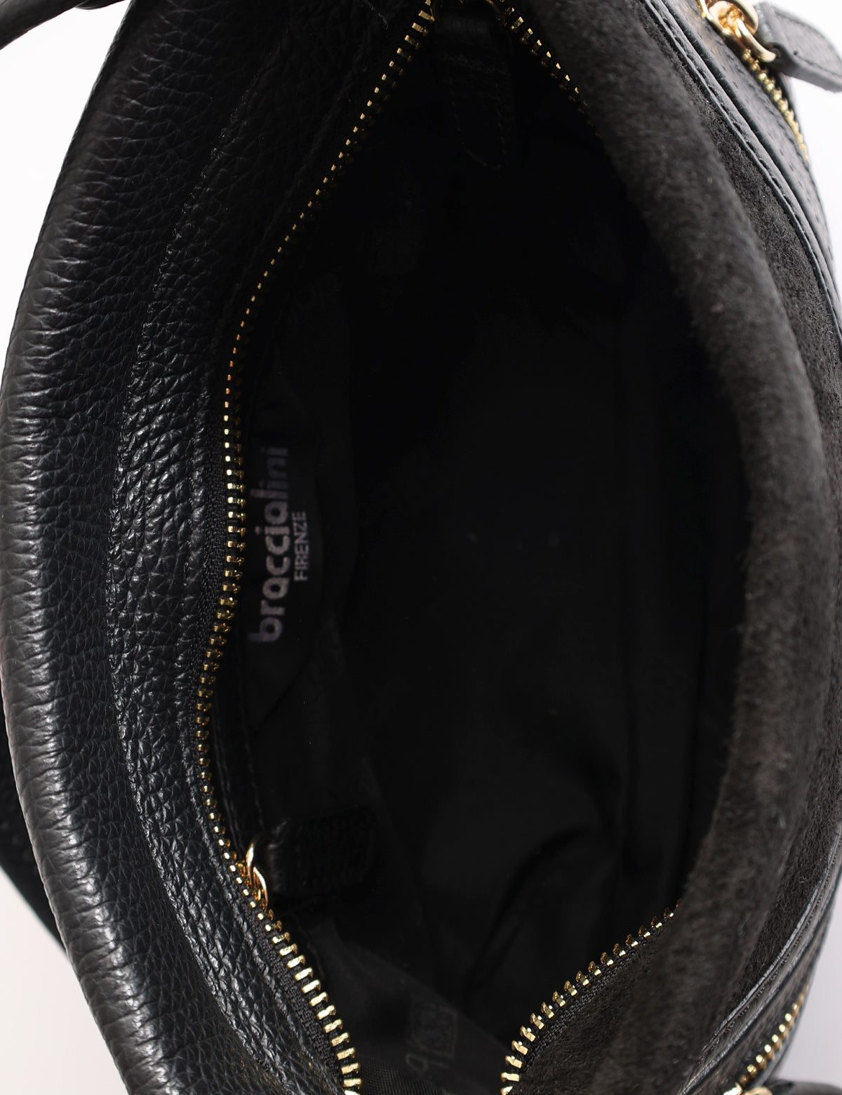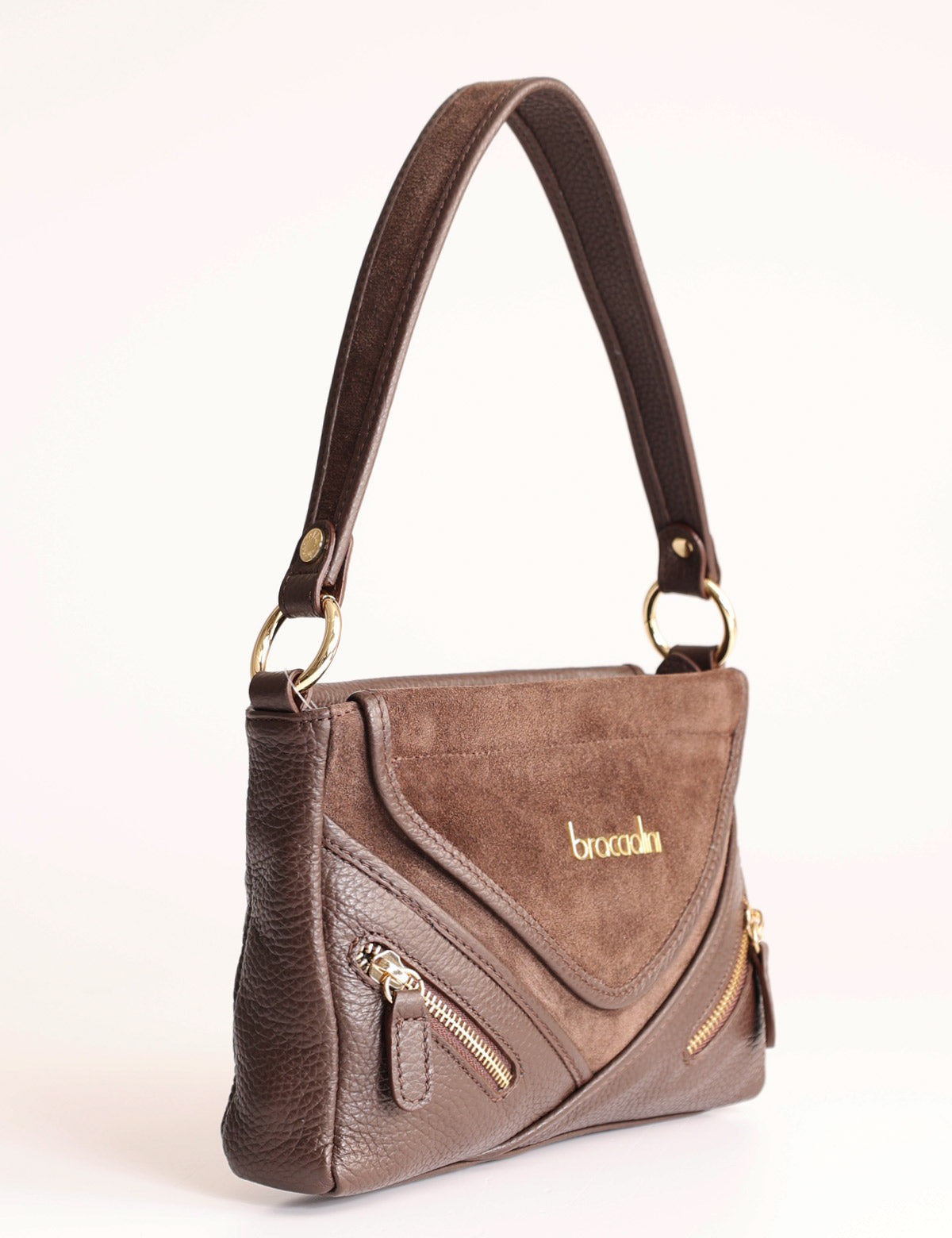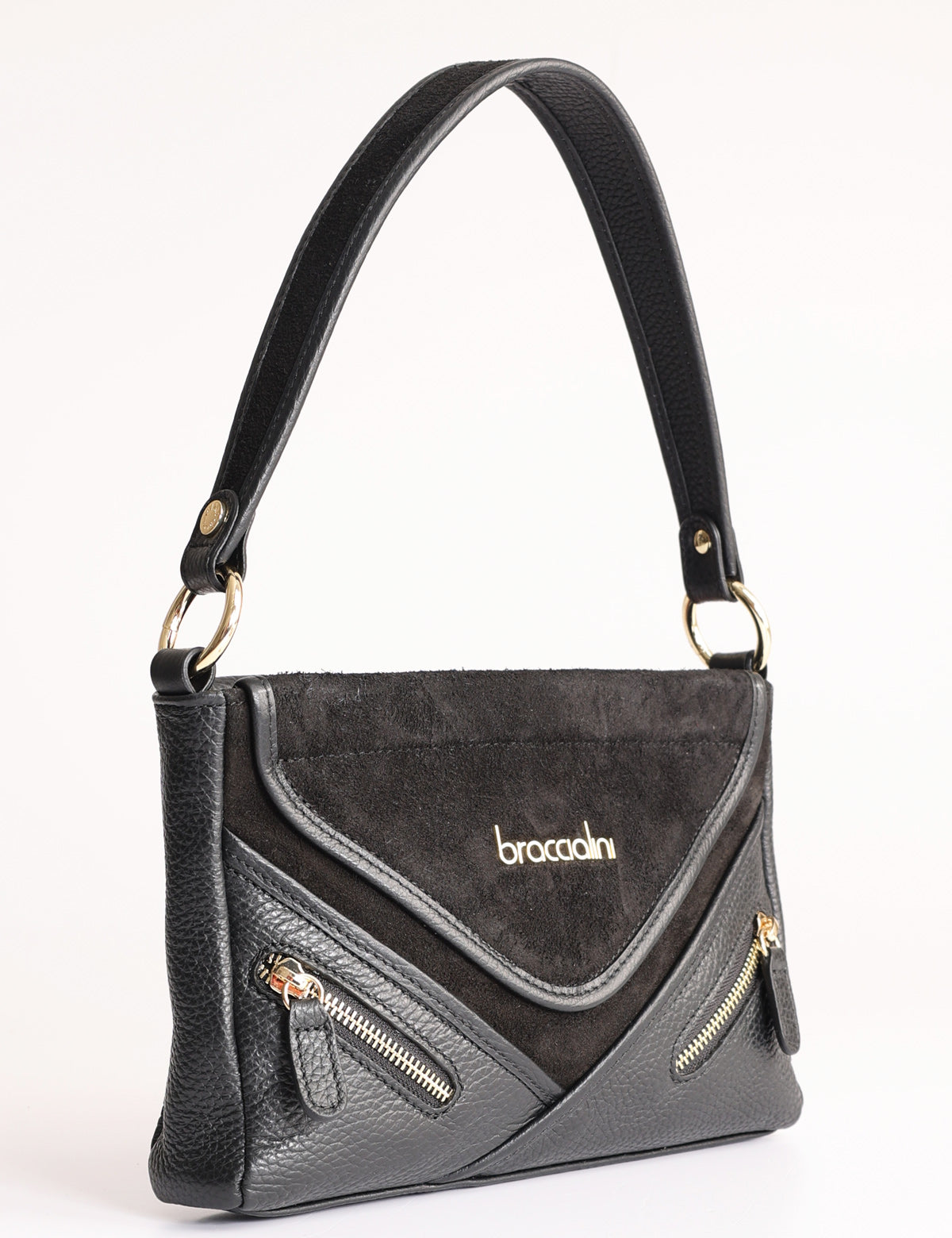 Borsetta a spalla Braccialini in pelle e pelle scamosciata con ulteriore tracolla. Modello dal design strutturato con dettagli color oro