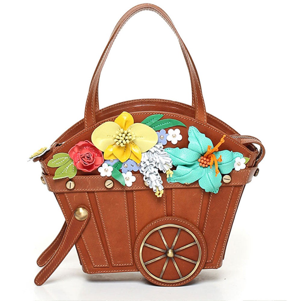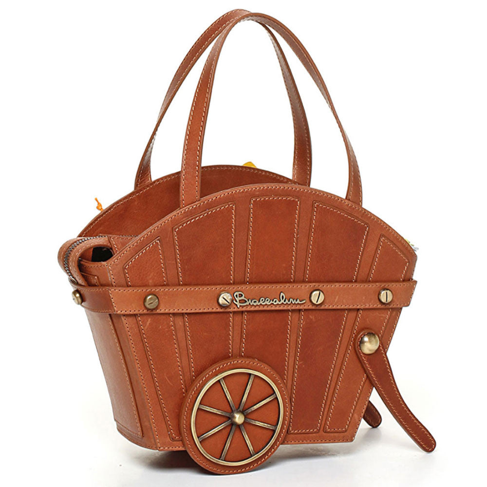 Borsa da donna Braccialini realizzata a mano in pelle raffigurante un carretto in legno