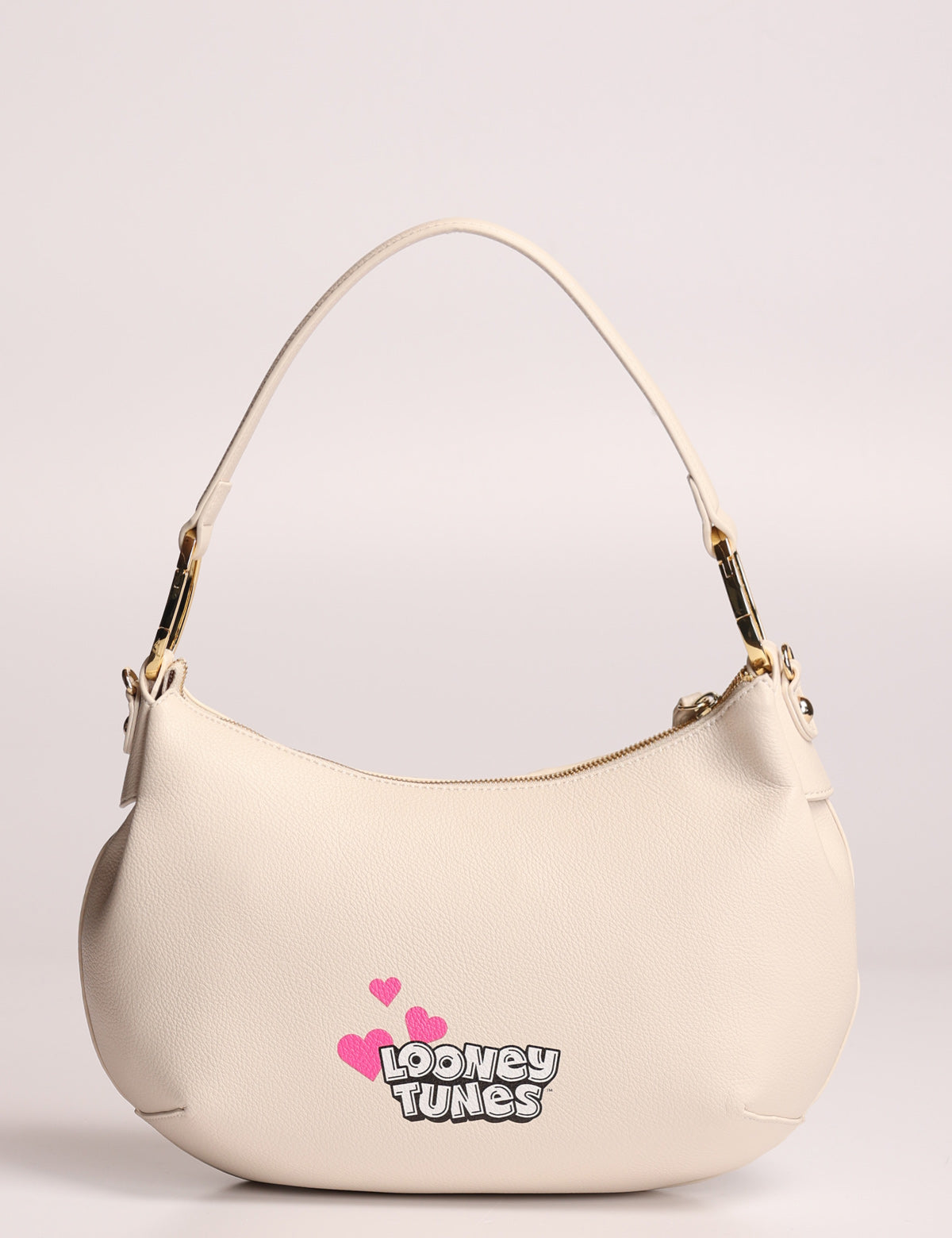 Borsa da donna Braccialini modello a spalla con ulteriore tracolla, caratterizzata dalla stampa Looney Tunes