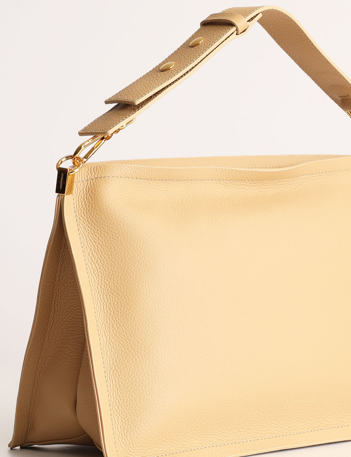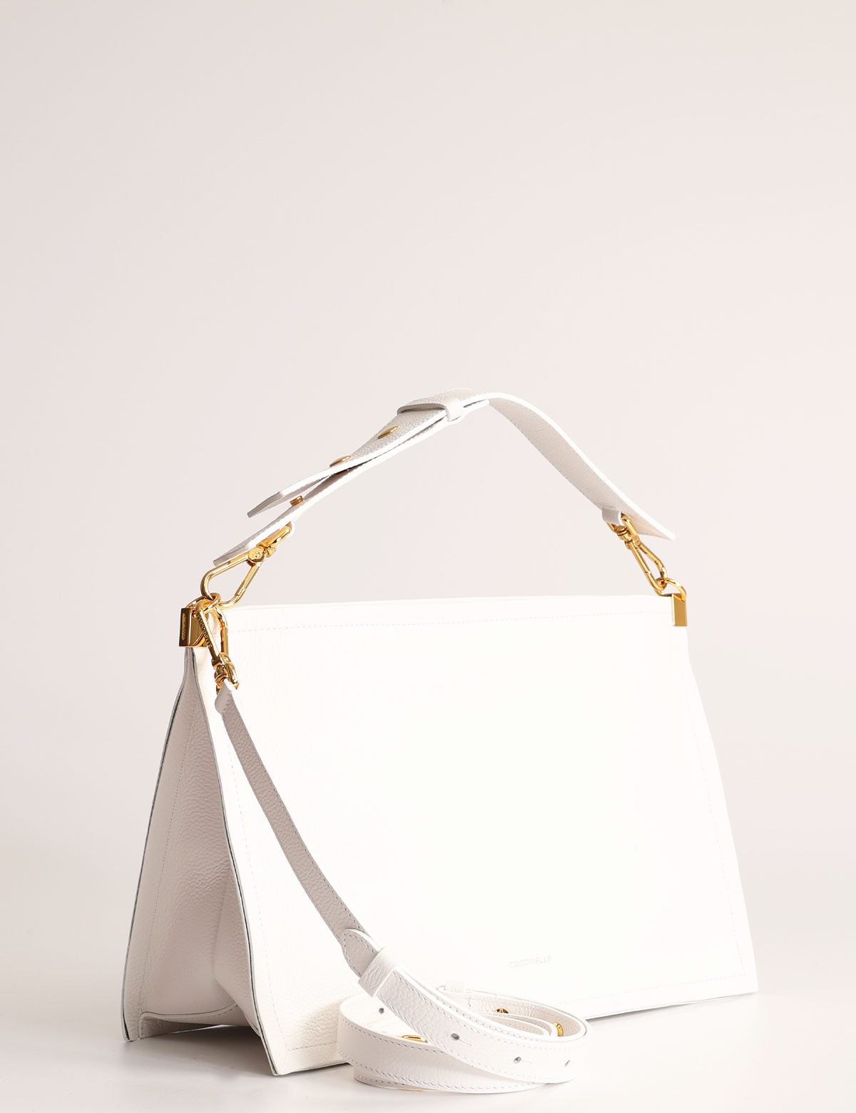 Dal design destrutturato, la linea Snip di Coccinelle creata ispirandosi ad un drappo di tessuto è elegante ed essenziale, arricchita da un manico superiore e una tracolla removibile