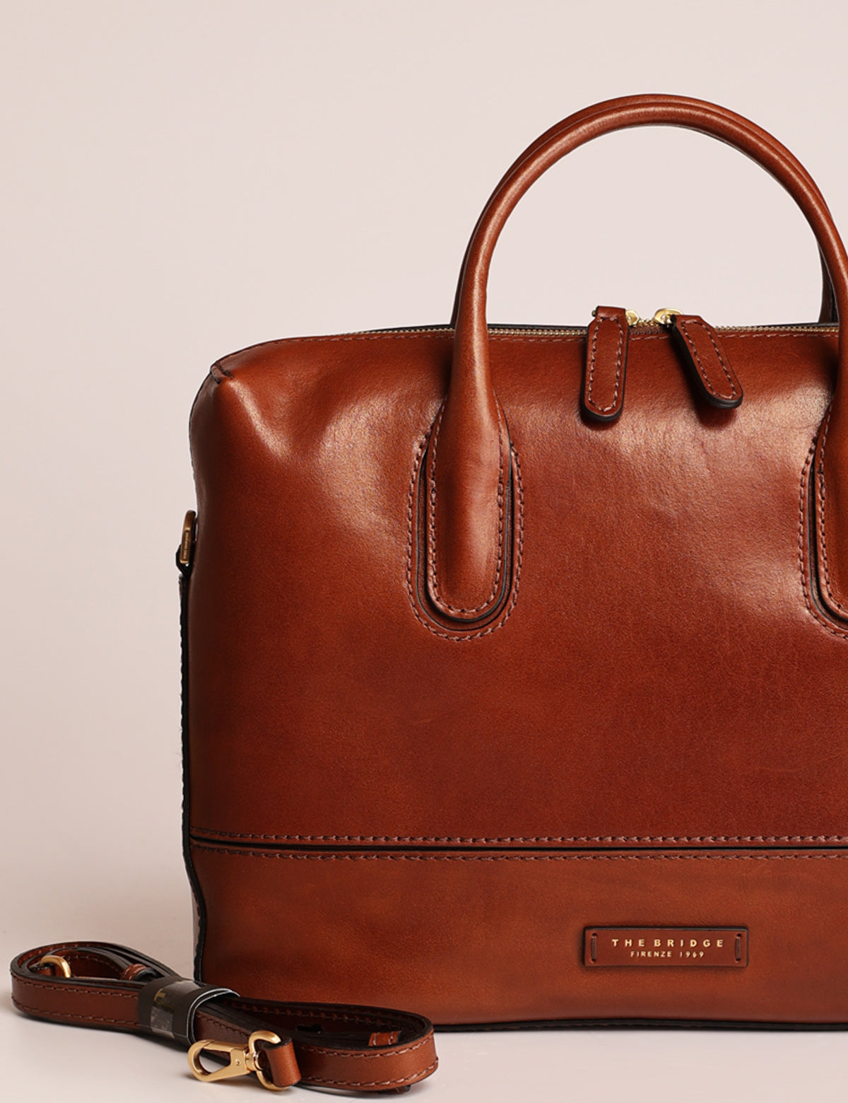 Borsa da donna The Bridge realizzata in cuoio, modello da lavoro con pratica tracolla removibile e passante posteriore per aggancio al trolley
