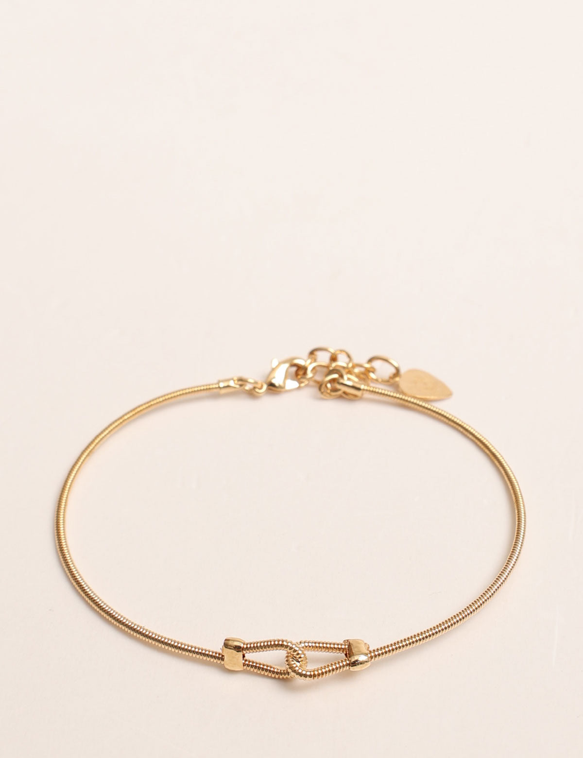 Bracciale da donna con corda di chitarra a forma di anelli piccoli you and me, chiusura con gancetto. Immerso in un bagno di oro giallo