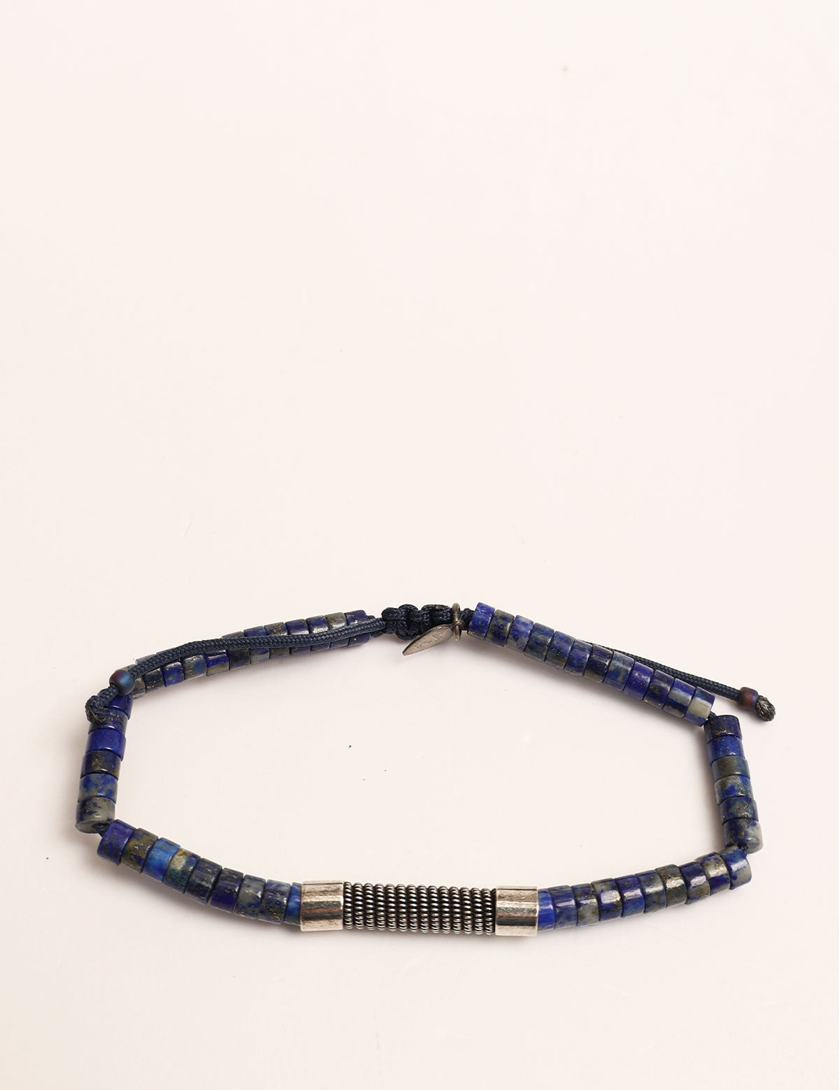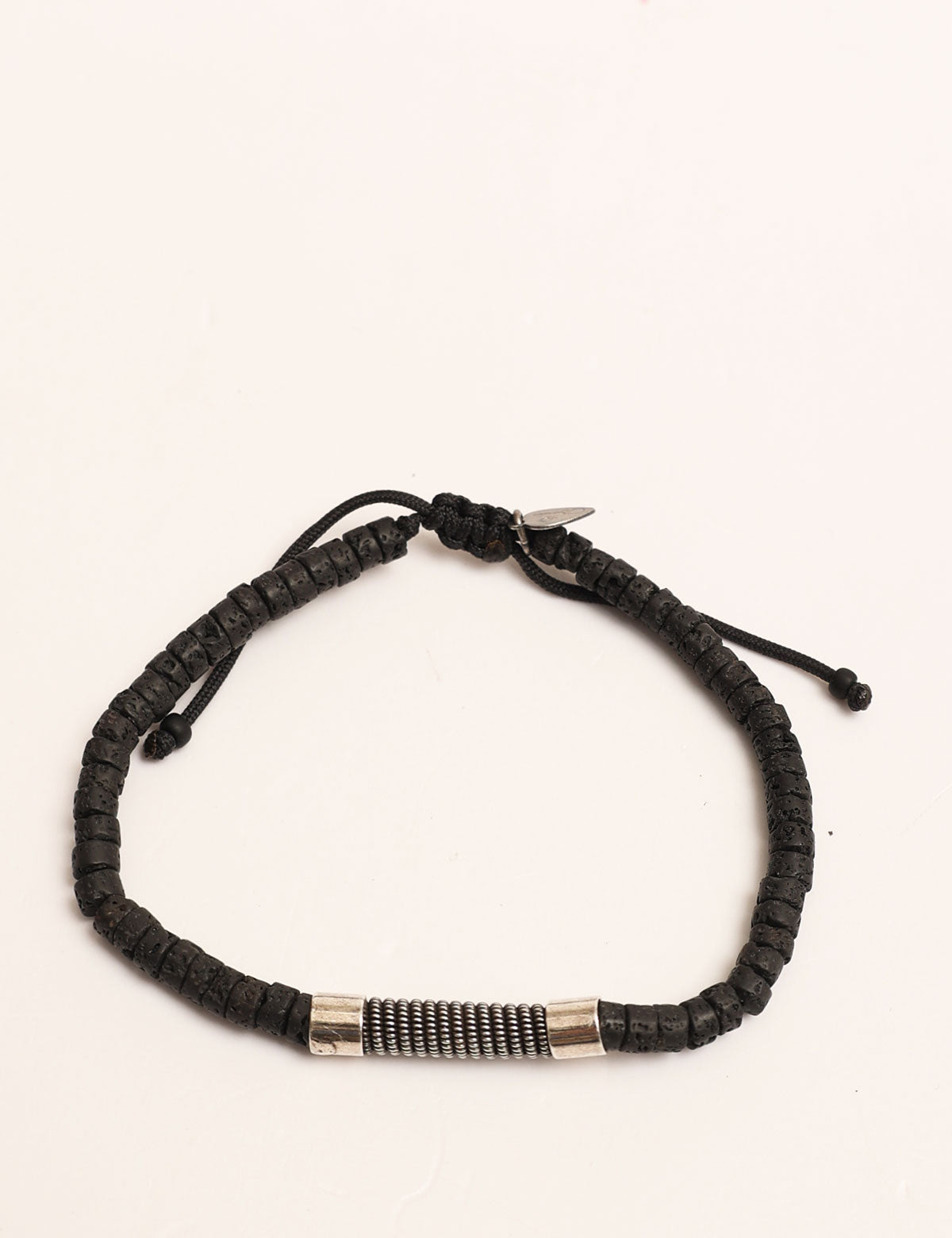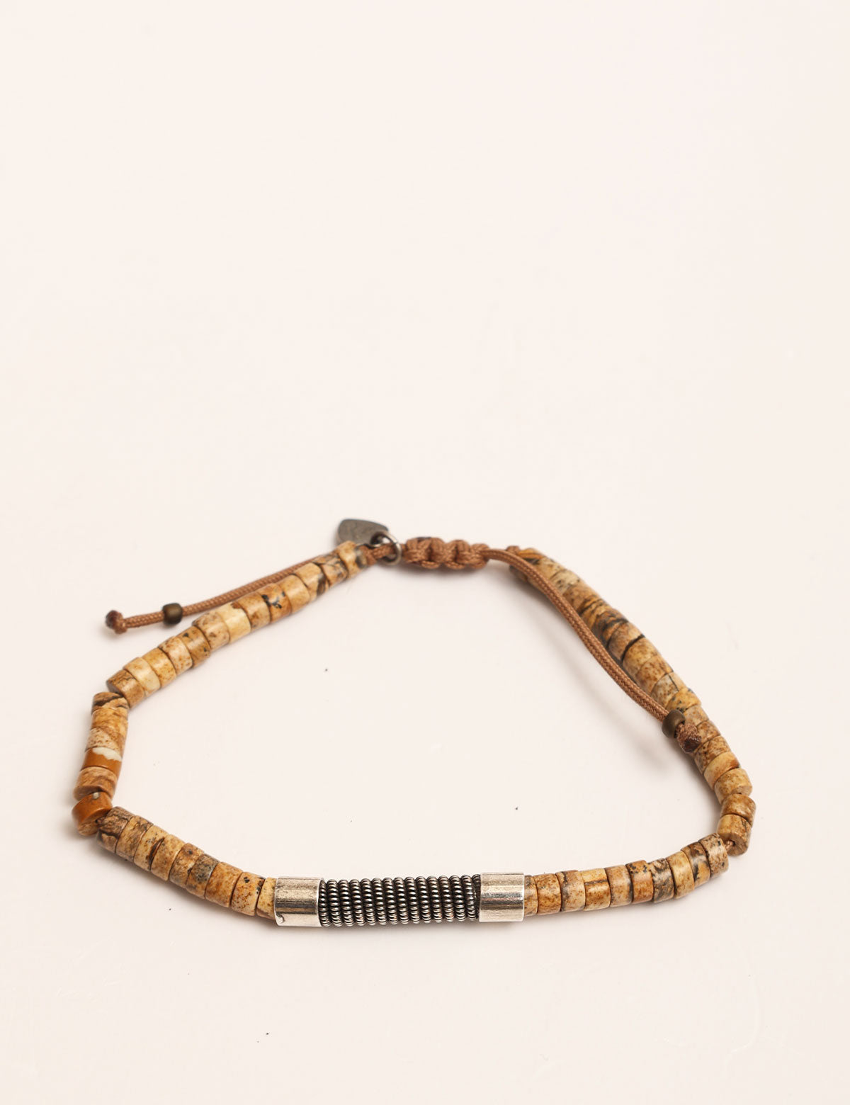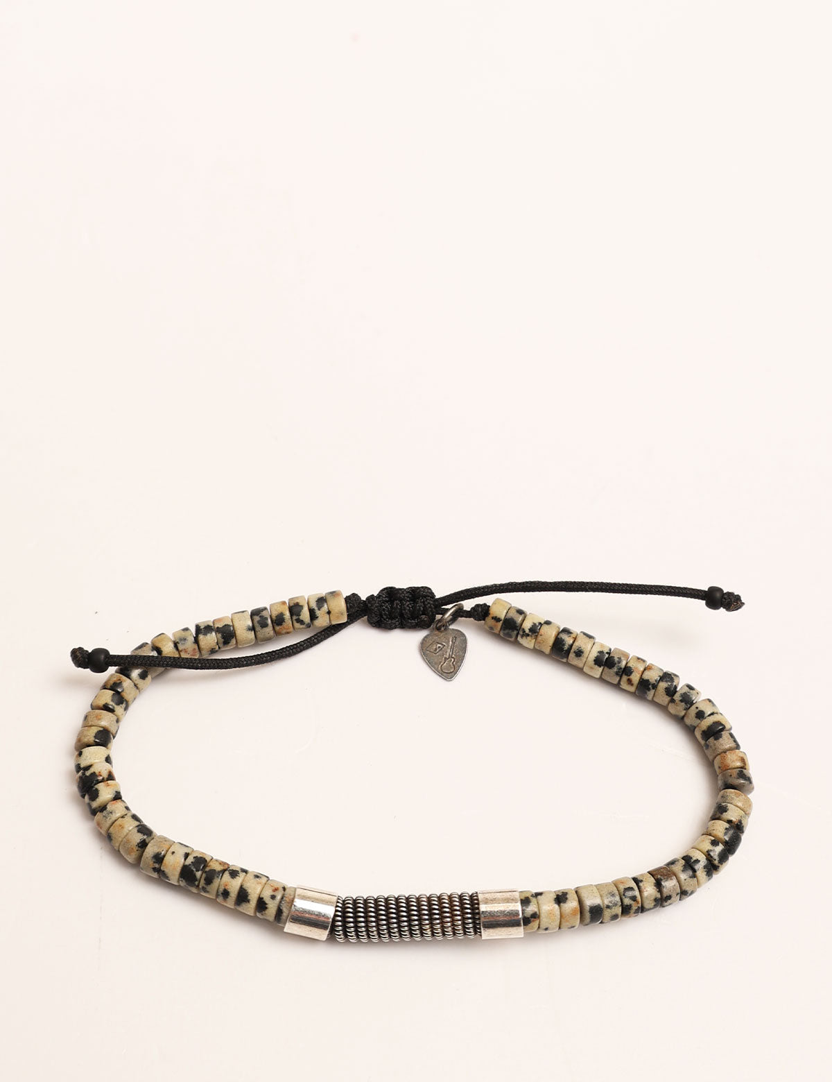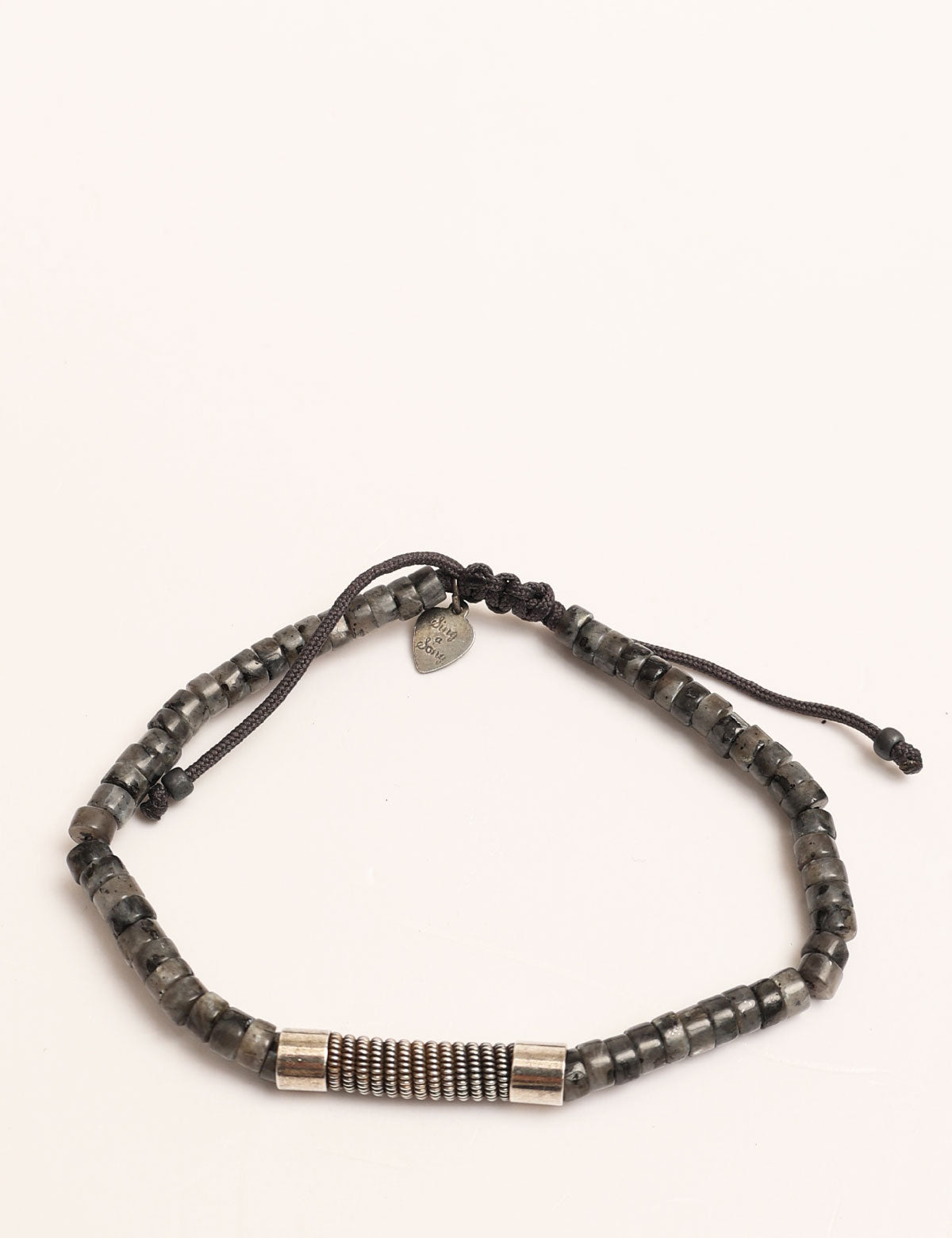 Bracciale da uomo Sing a Song con pietre naturali e corda di chitarra arrotolata, realizzato in filo macramè
