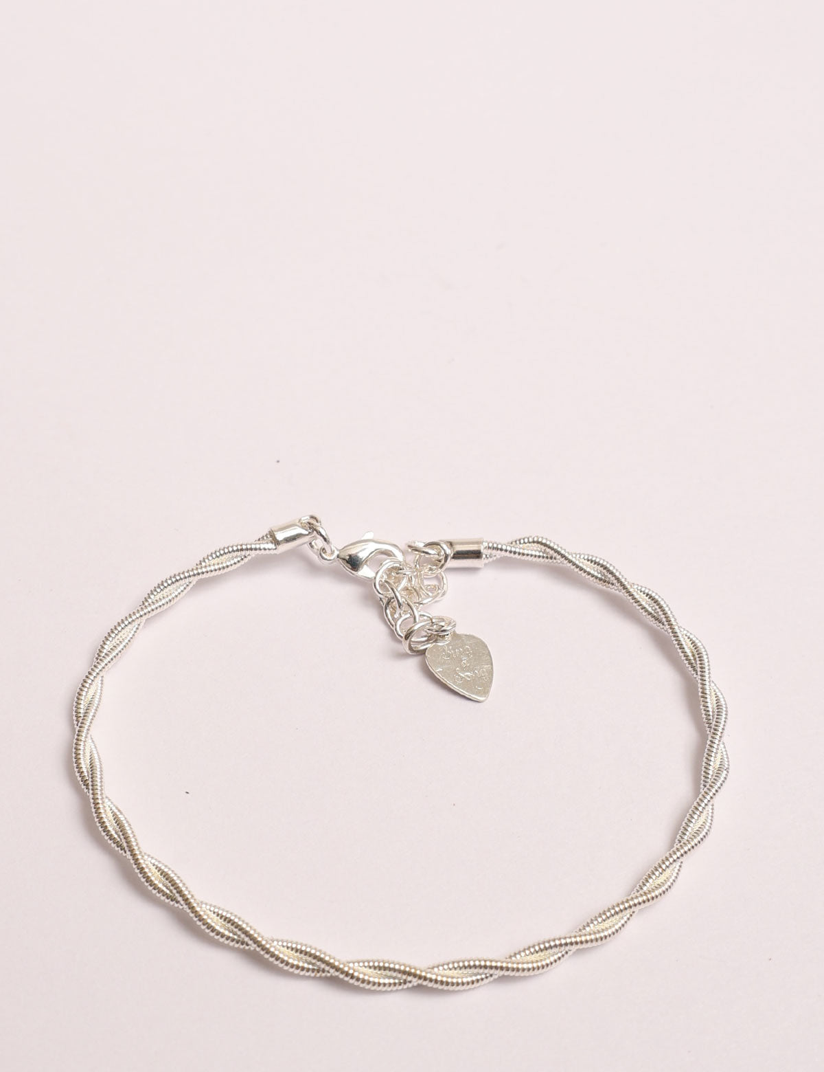 Bracciale da donna Sing a Song con due corde di chitarra intrecciate, chiusura con gancetto. Immerso in un bagno di oro bianco