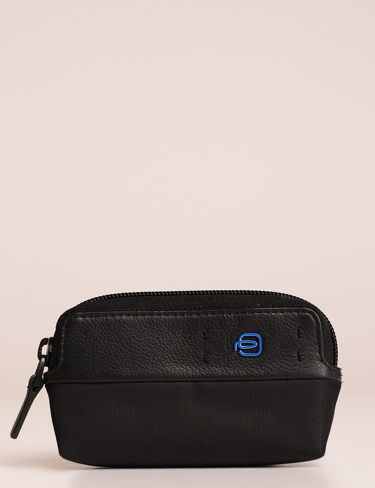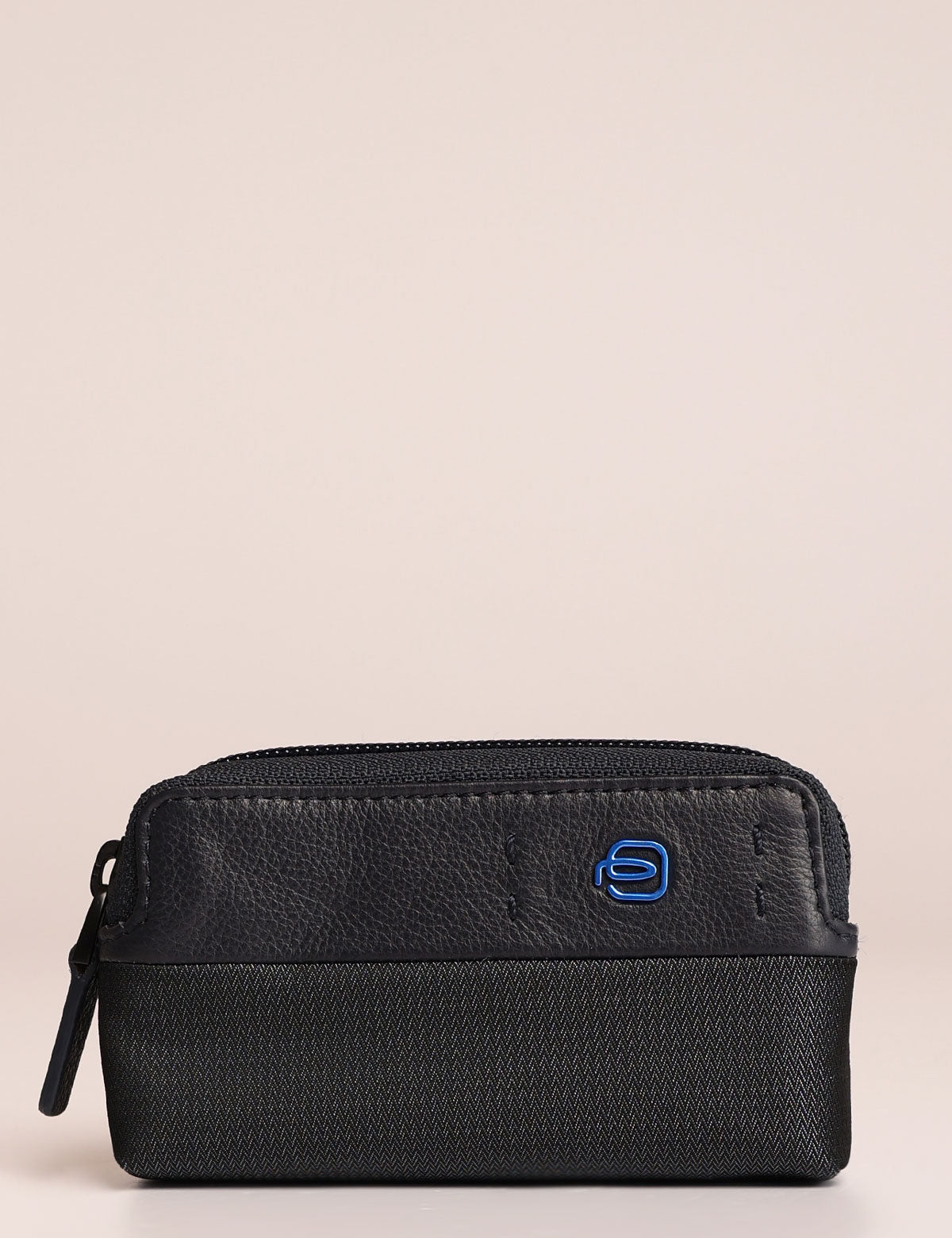 Portachiavi Piquadro in tessuto tecnico e pelle, modello bustina con zip e doppi anelli interni