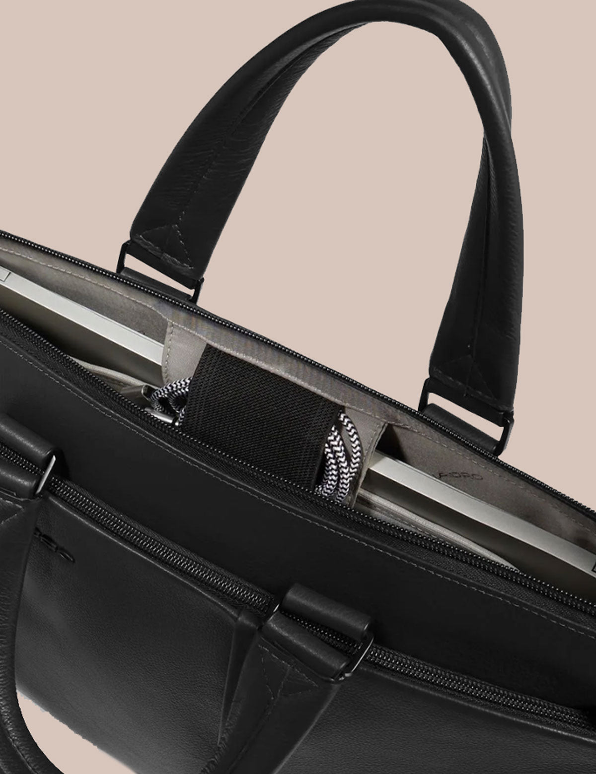 Borsa da lavoro Piquadro sottile, modello con espandibilità zip, dotata di scomparto interno porta computer fino a 15.6 pollici