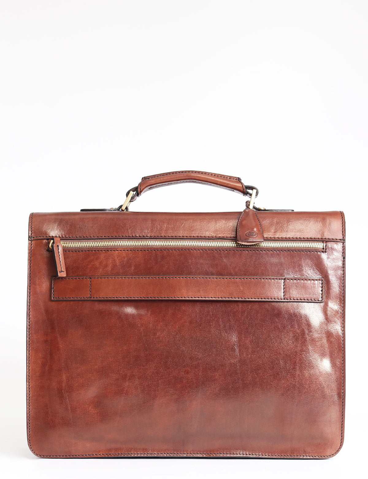 Cartella da lavoro The Bridge realizzata in pelle con patta dotata di chiusura metallica e manico superiore. Modello con scomparto porta pc e passante posteriore per agganciarlo al trolley