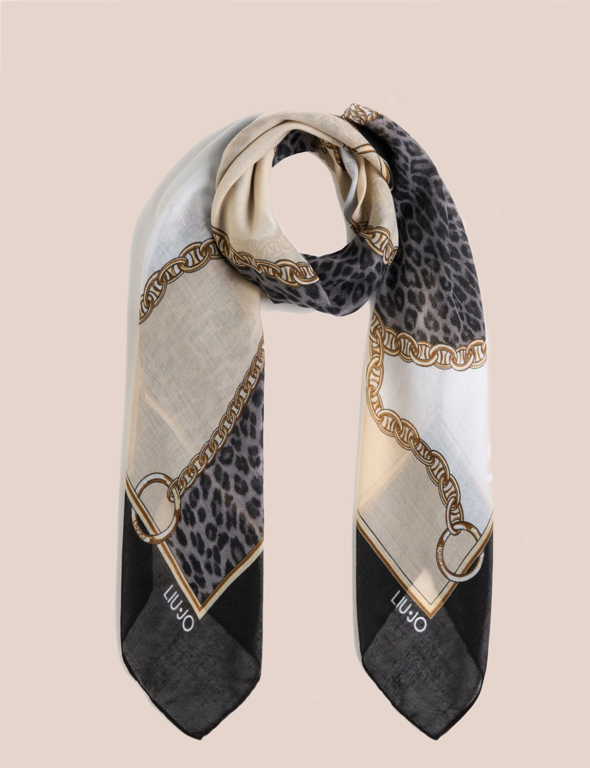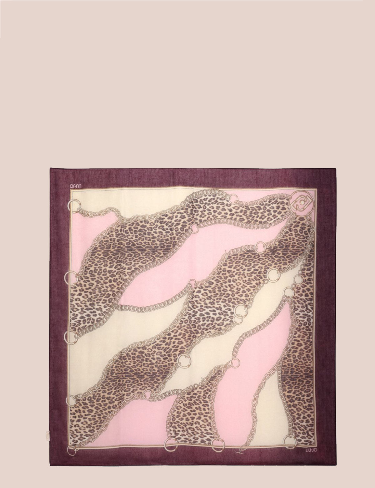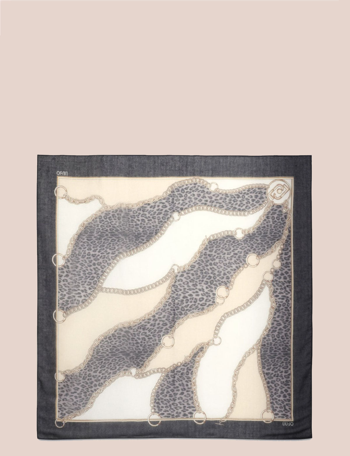 Foulard Liu Jo quadrato stampa animalier e catene, codice prodotto 2F5074T0300