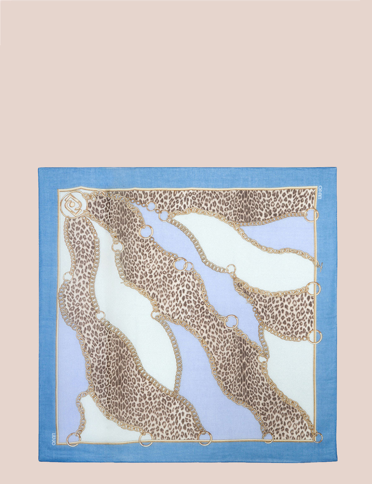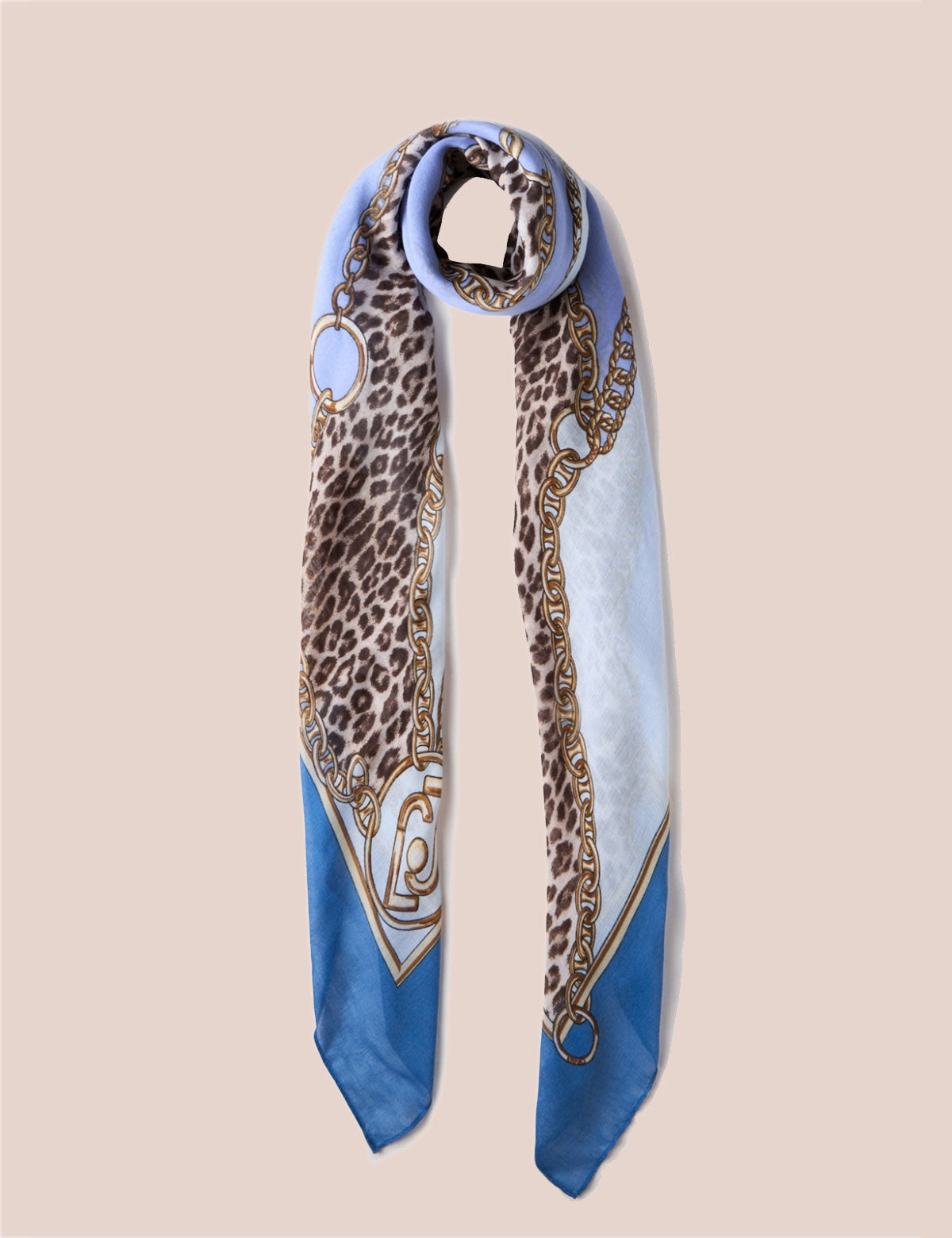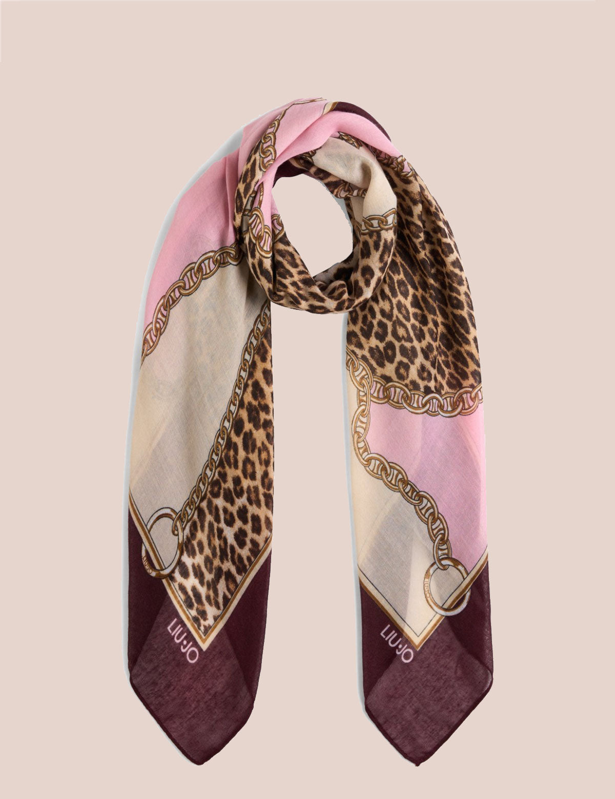 Foulard Liu Jo quadrato stampa animalier e catene, codice prodotto 2F5074T0300