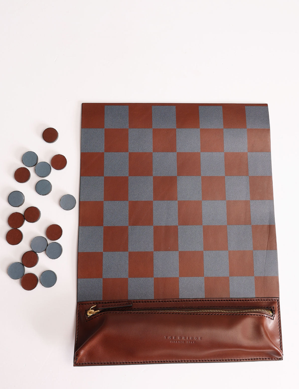 Il gioco della dama The Bridge realizzato in pelle, arrotolabile e facile da trasportare