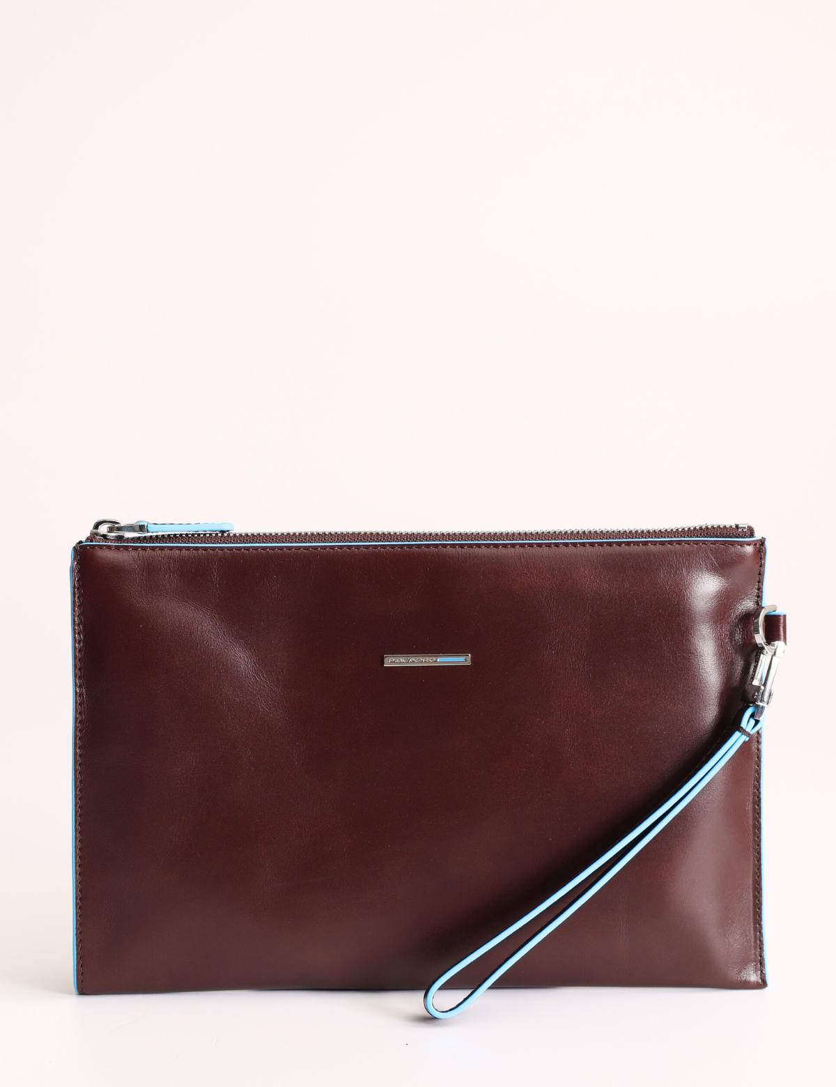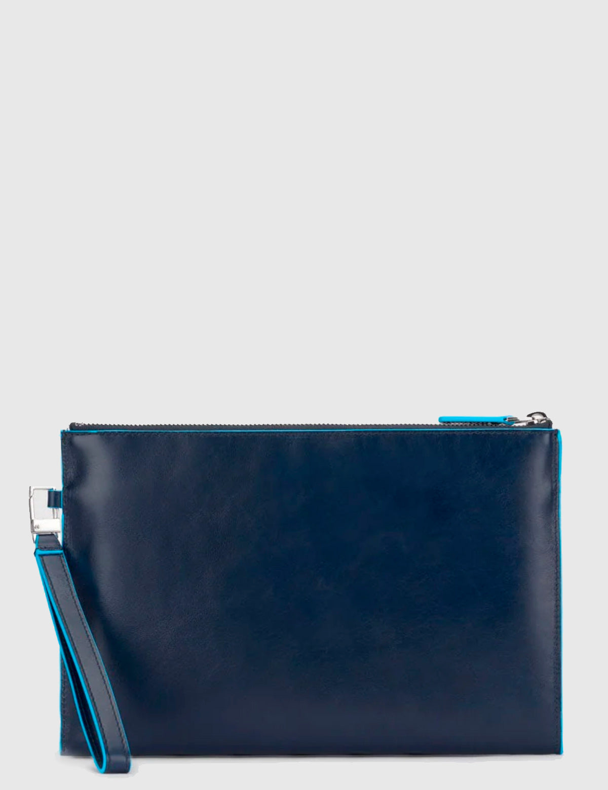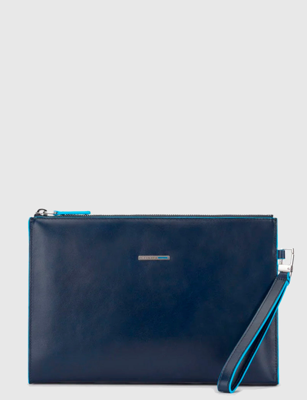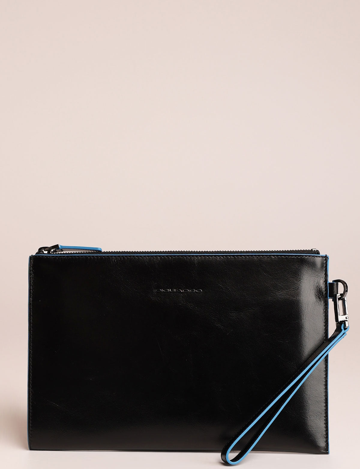 Pochette Piquadro modello sottile porta tablet con laccetto removibile, realizzata in pelle
