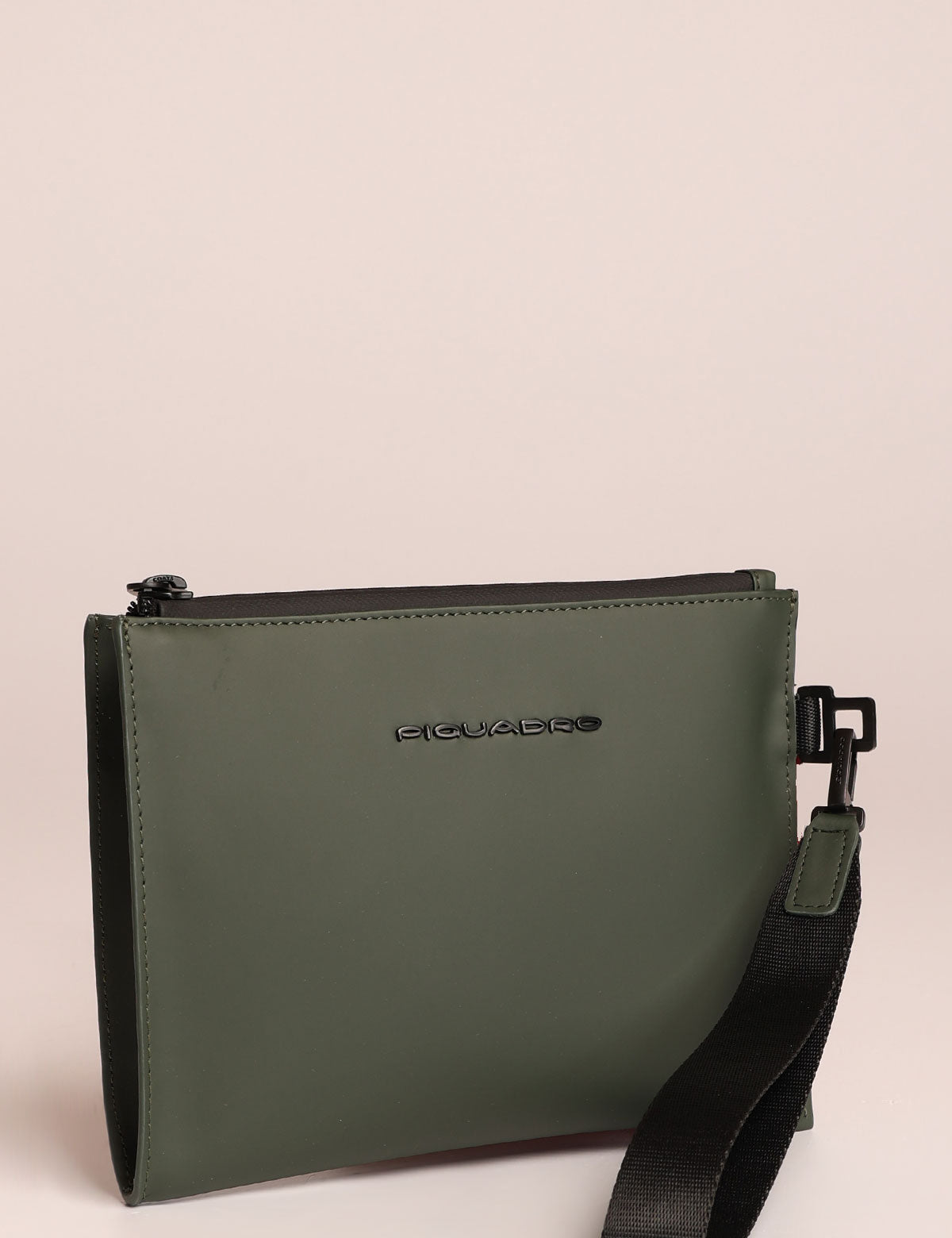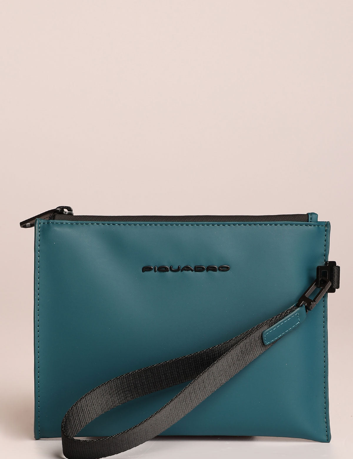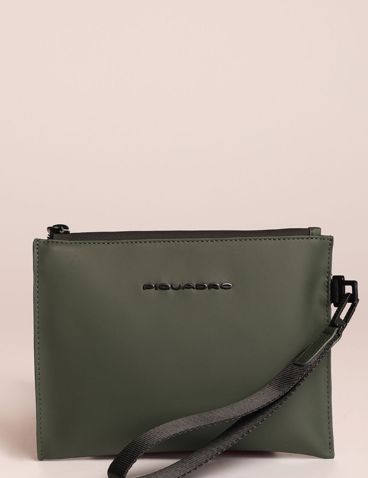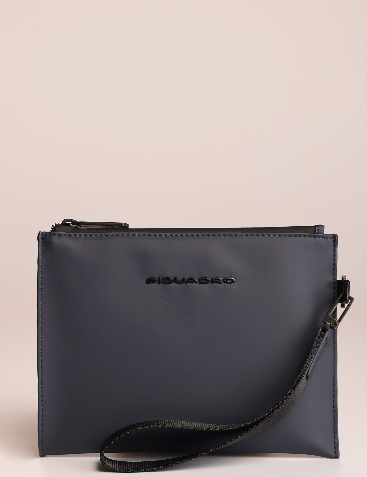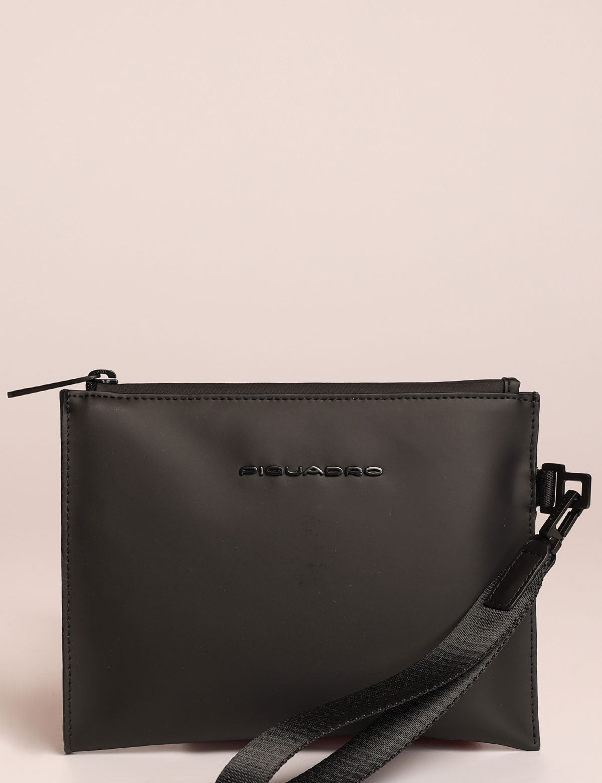 Busta portatutto Piquadro realizzata in tessuto gommato, dotata di chiusura zip e laccetto removibile