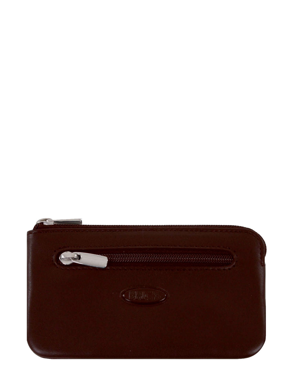 Portachiavi in pelle Bric's modello bustina con chiusura zip, taschina frontale e due anelli portachiavi all'interno