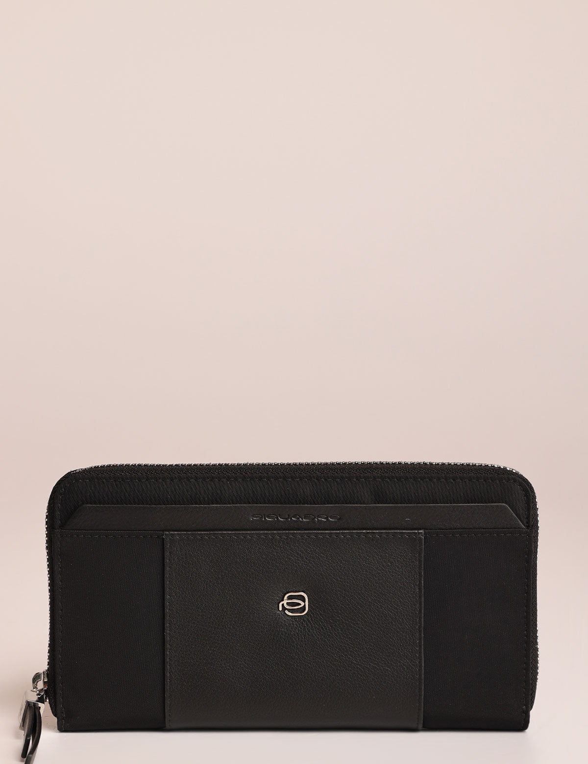 Portafogli da donna Piquadro realizzato in tessuto tecnico e pelle con chiusura zip su tre lati e apertura a soffietto