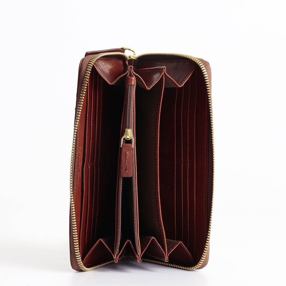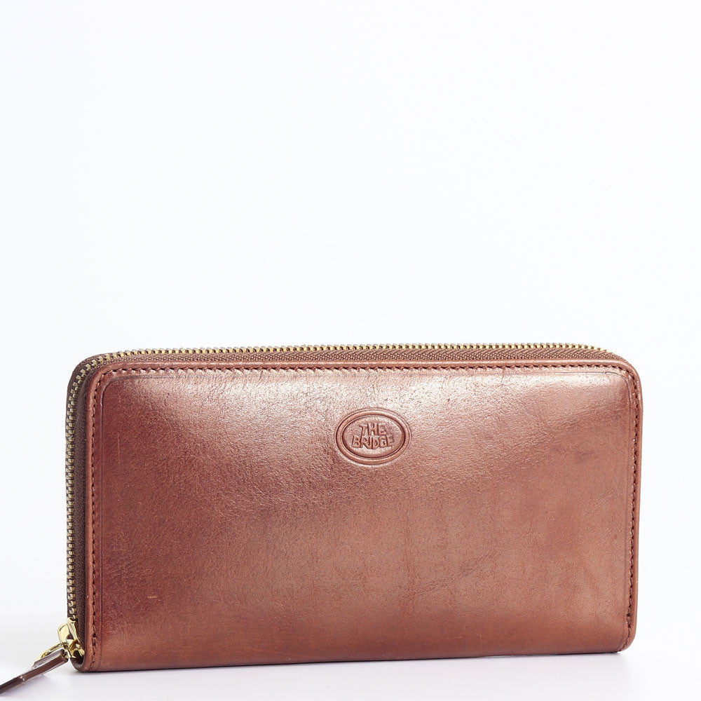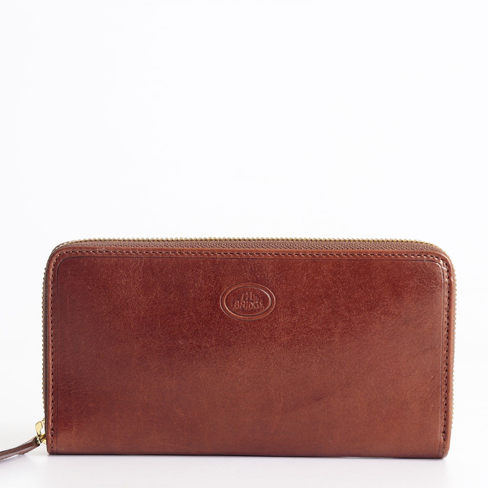 Portafogli in pelle The Bridge da donna, modello lungo con zip su tre lati e apertura a soffietto