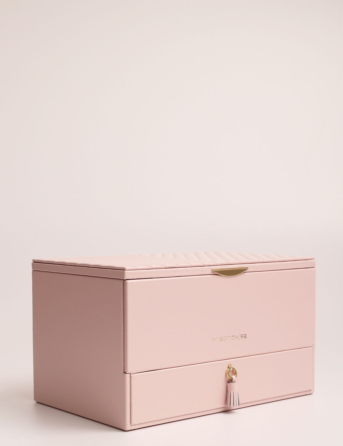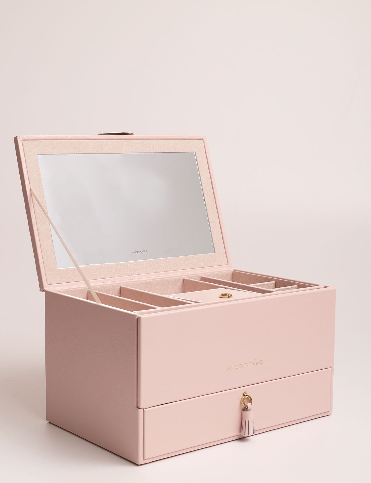 Portagioie Friedrich23 realizzata in pelle con rivestimento interno in velluto. Dotato di specchio interno, cassetti interni per anelli, collane, bracciali e orologi