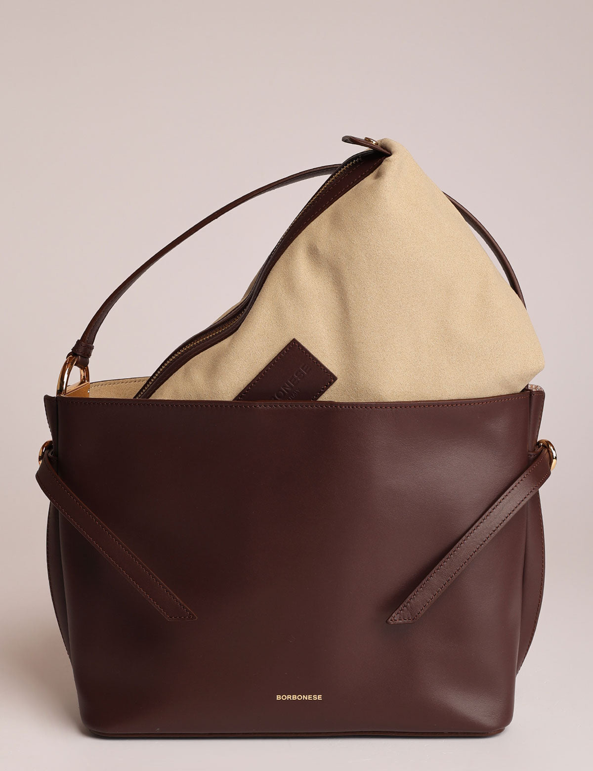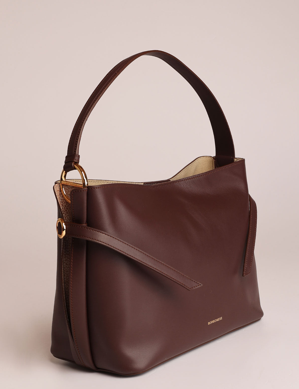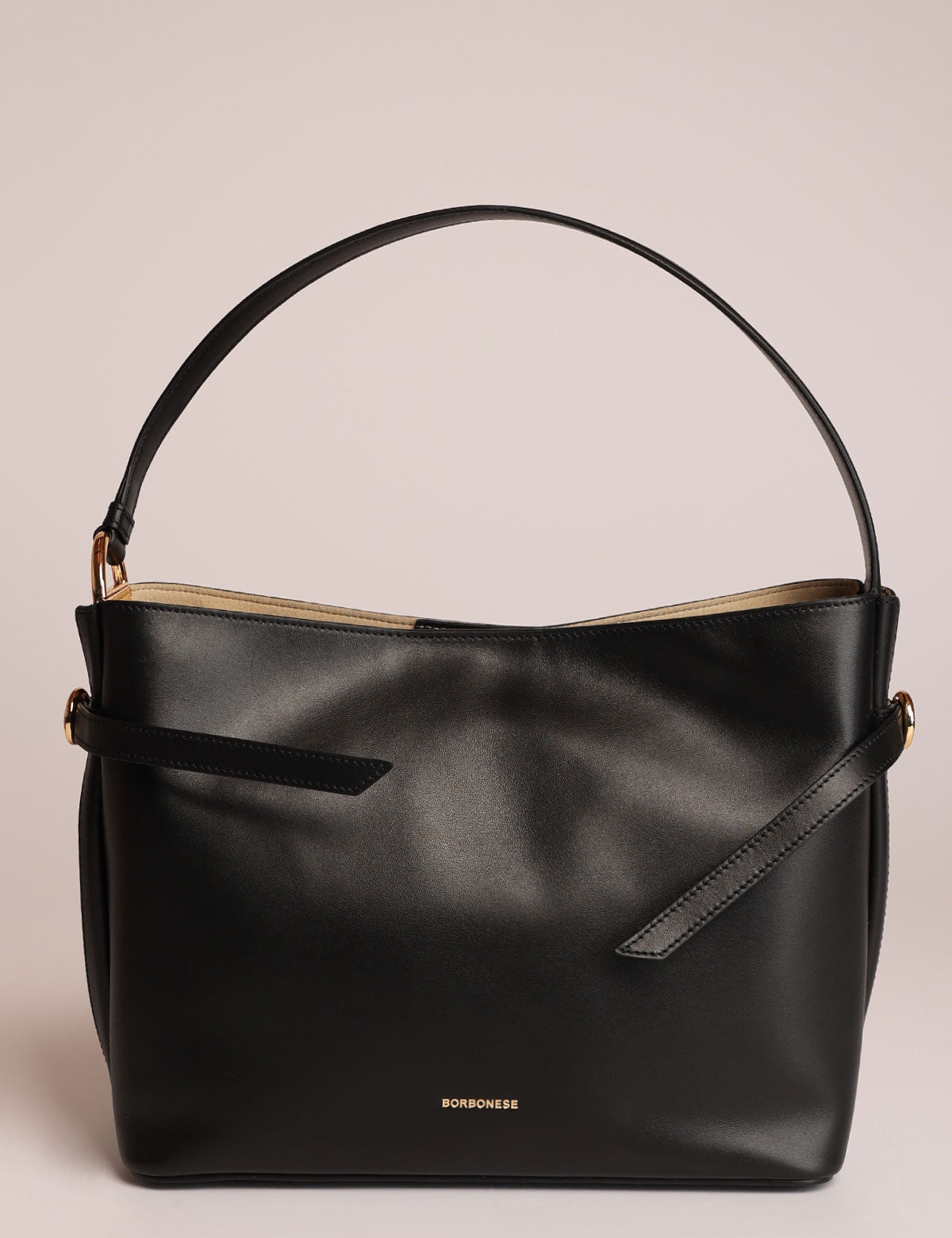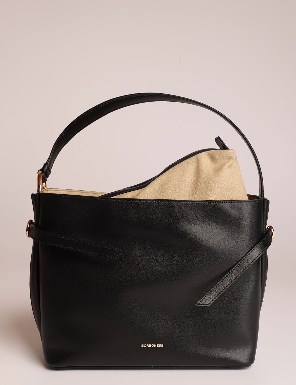 Borsa da donna Borbonese realizzata in pelle, modello secchiello a spallaccio singolo con maxi-pochette interna removibile