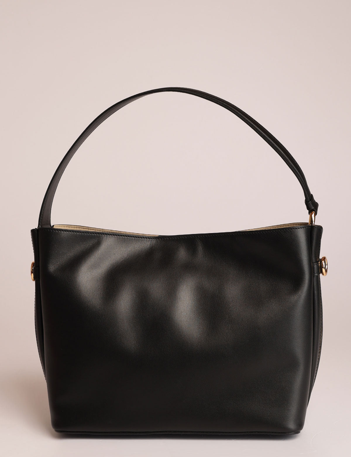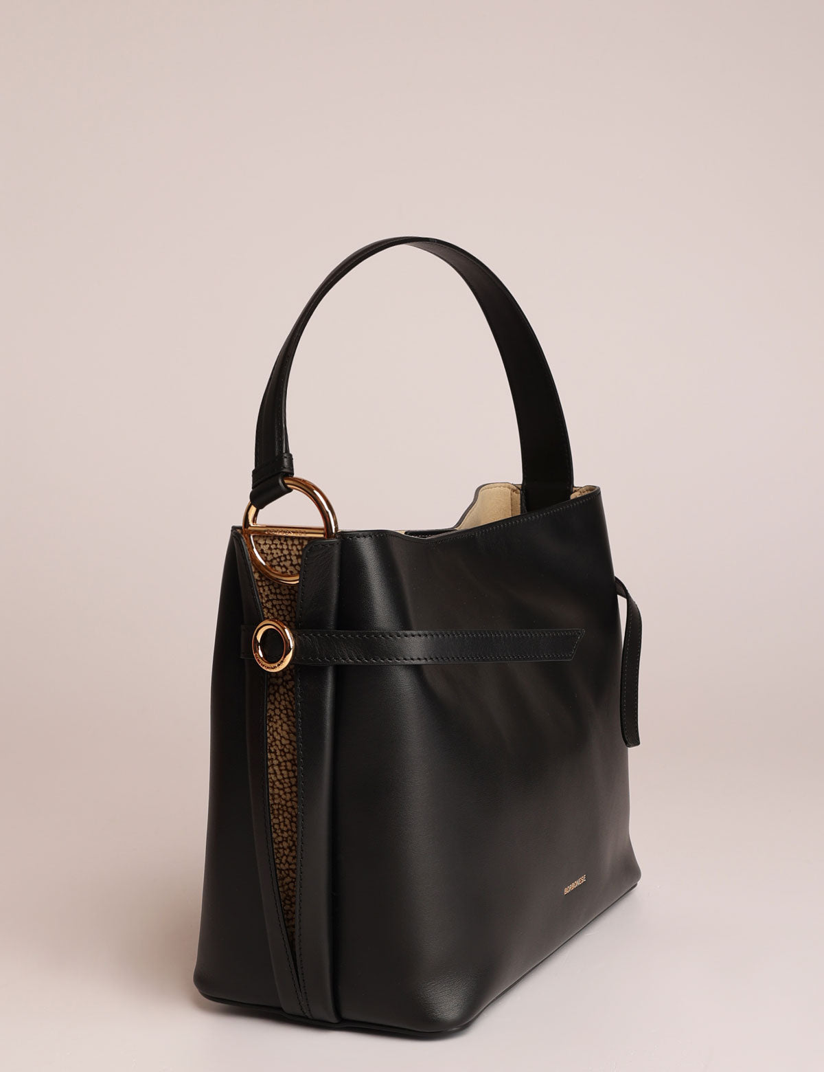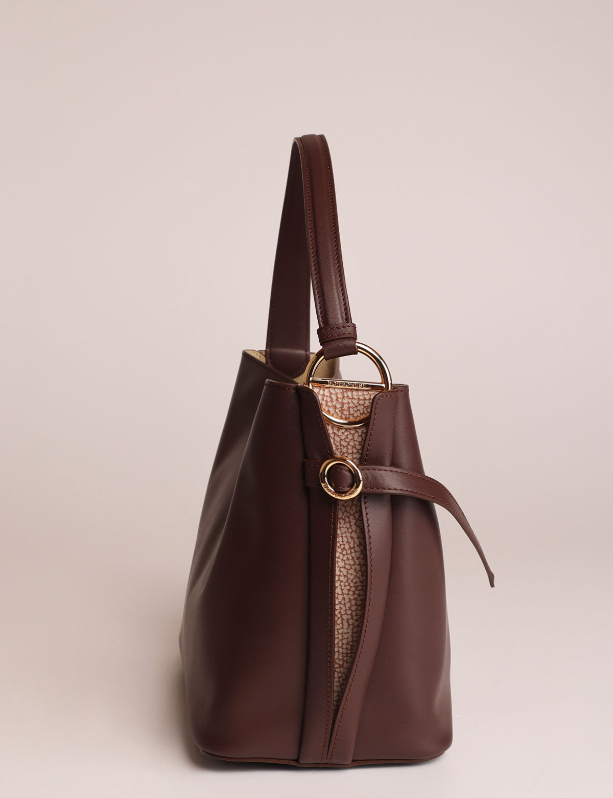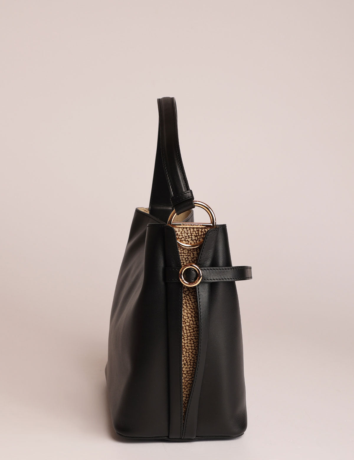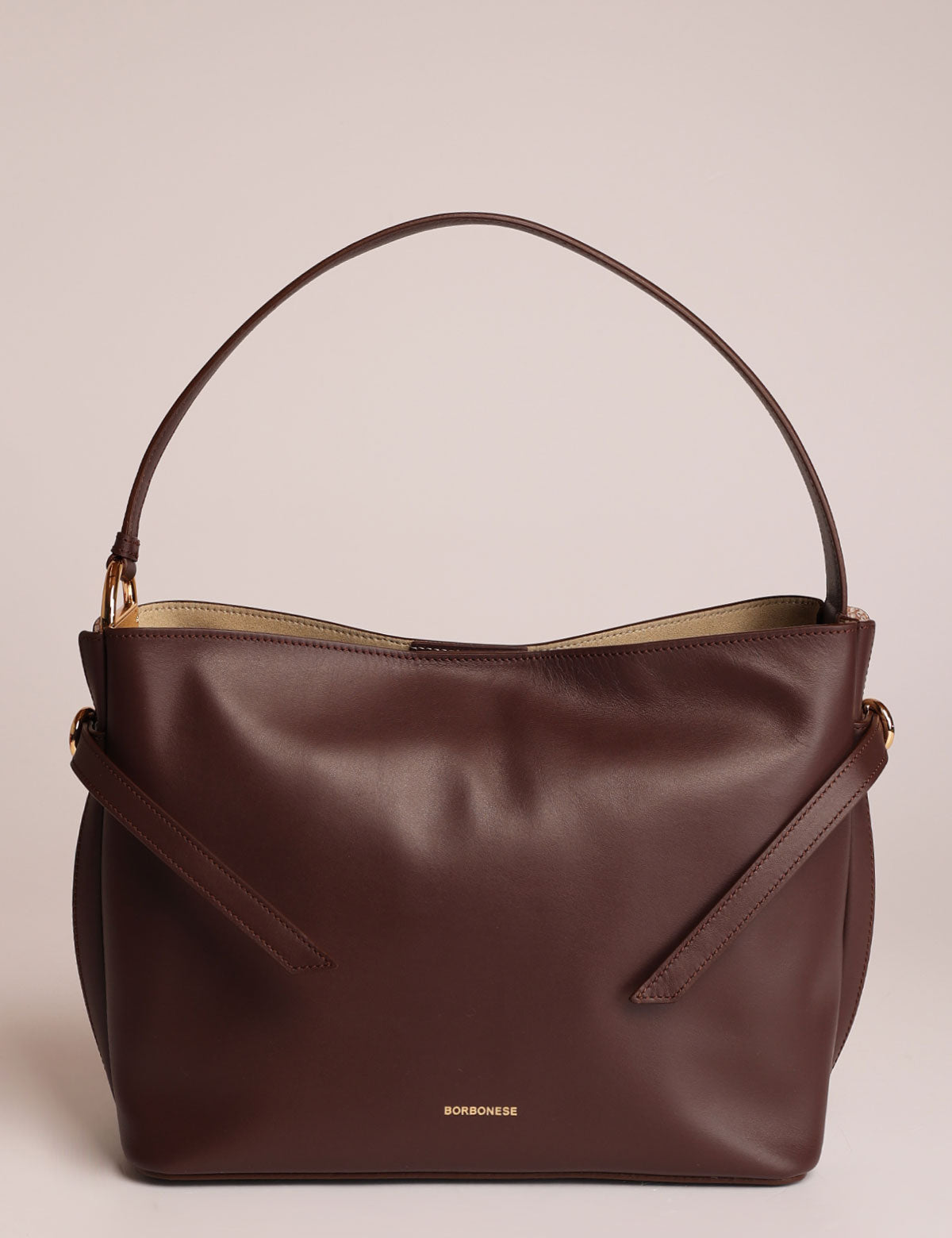 Borsa da donna Borbonese realizzata in pelle, modello secchiello a spallaccio singolo con maxi-pochette interna removibile