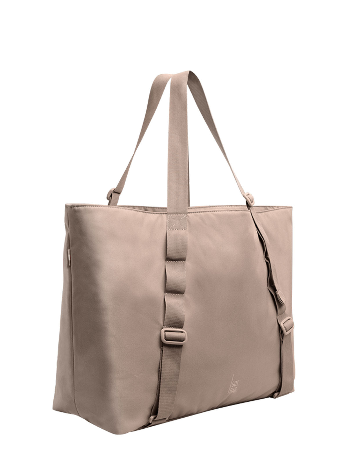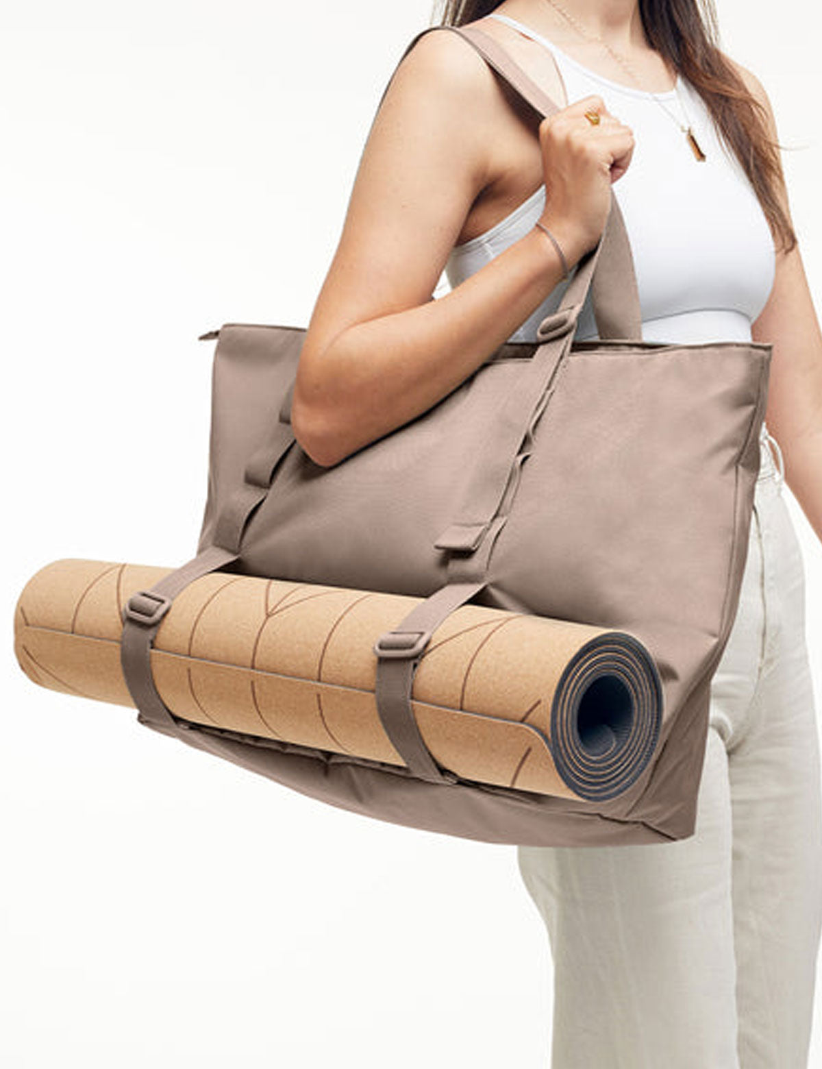 Borsa Got Bag modello shopping bag di grandi dimensioni. Modello spazioso con organizzatori interni e fasce esterne per agganciare il tappetino. Modello realizzato con materiale riciclato proveniente dall'Oceano, impermeabile e privo di PVC e PFC