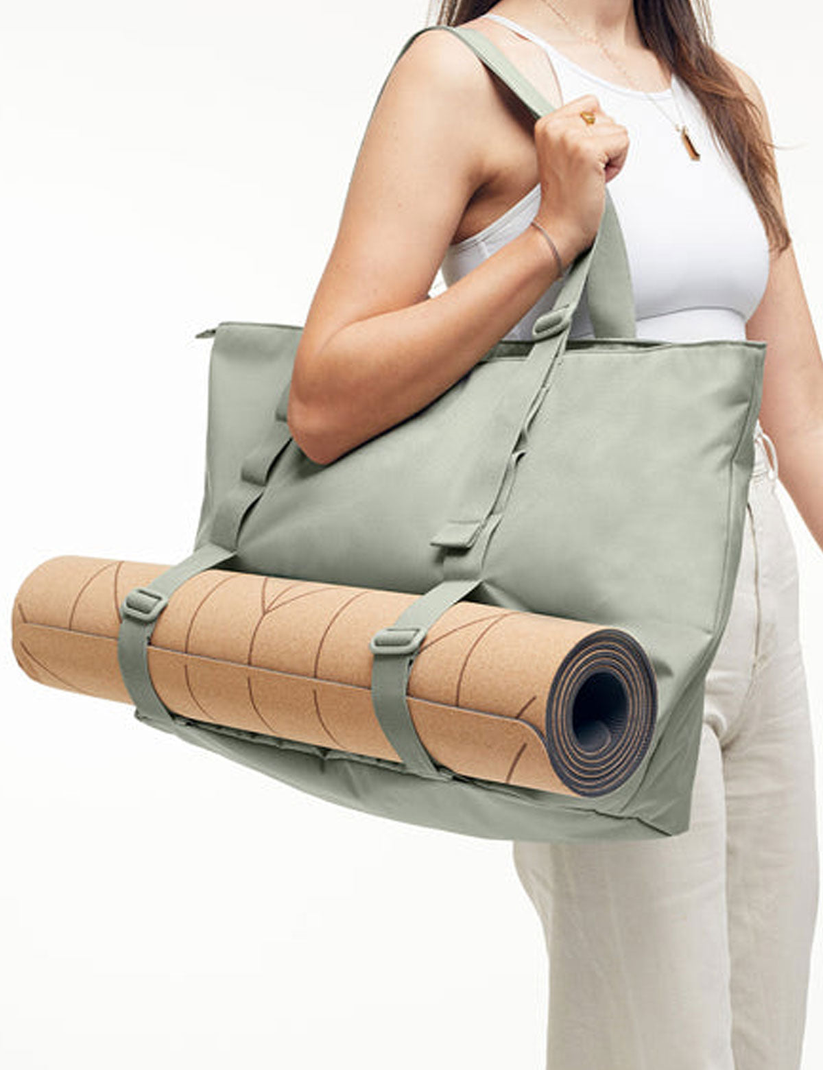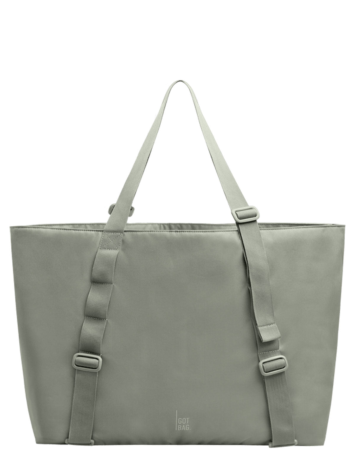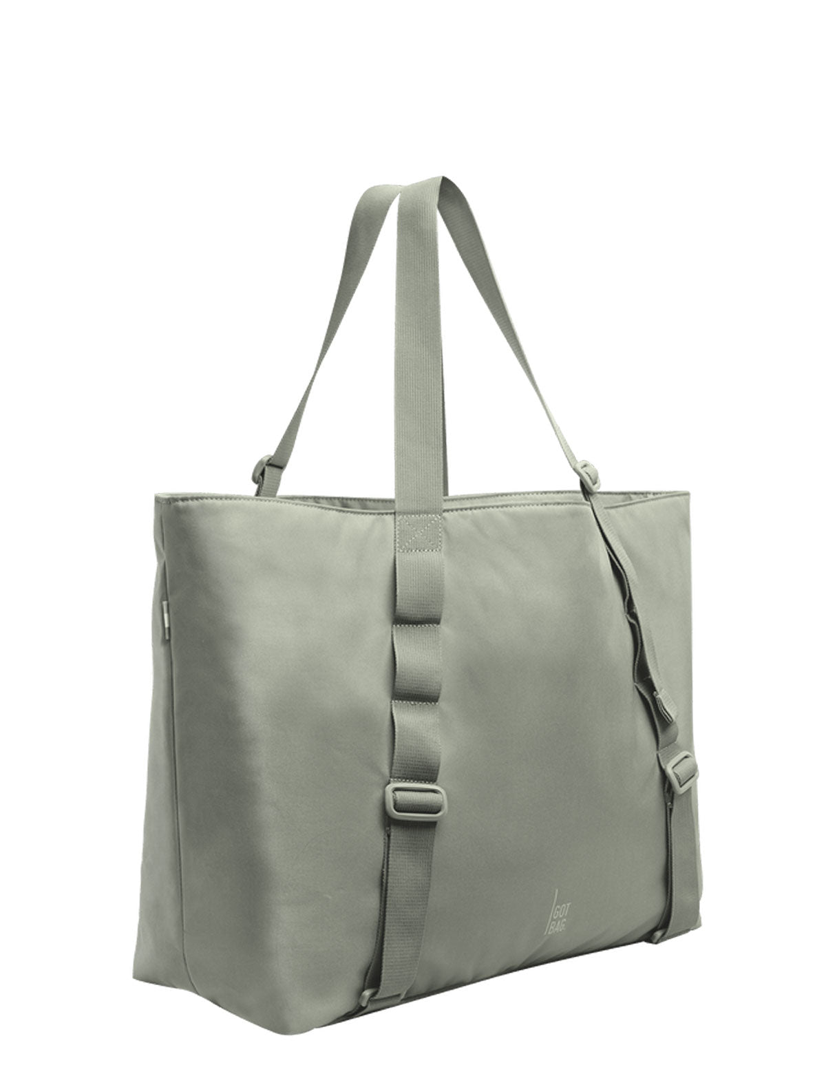 Borsa Got Bag modello shopping bag di grandi dimensioni. Modello spazioso con organizzatori interni e fasce esterne per agganciare il tappetino. Modello realizzato con materiale riciclato proveniente dall'Oceano, impermeabile e privo di PVC e PFC