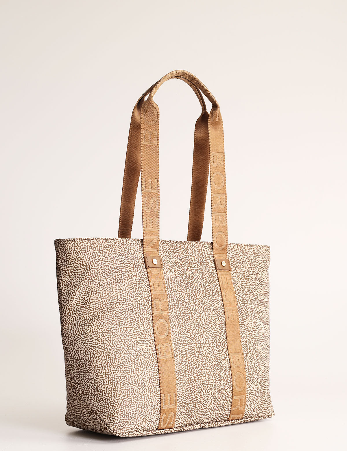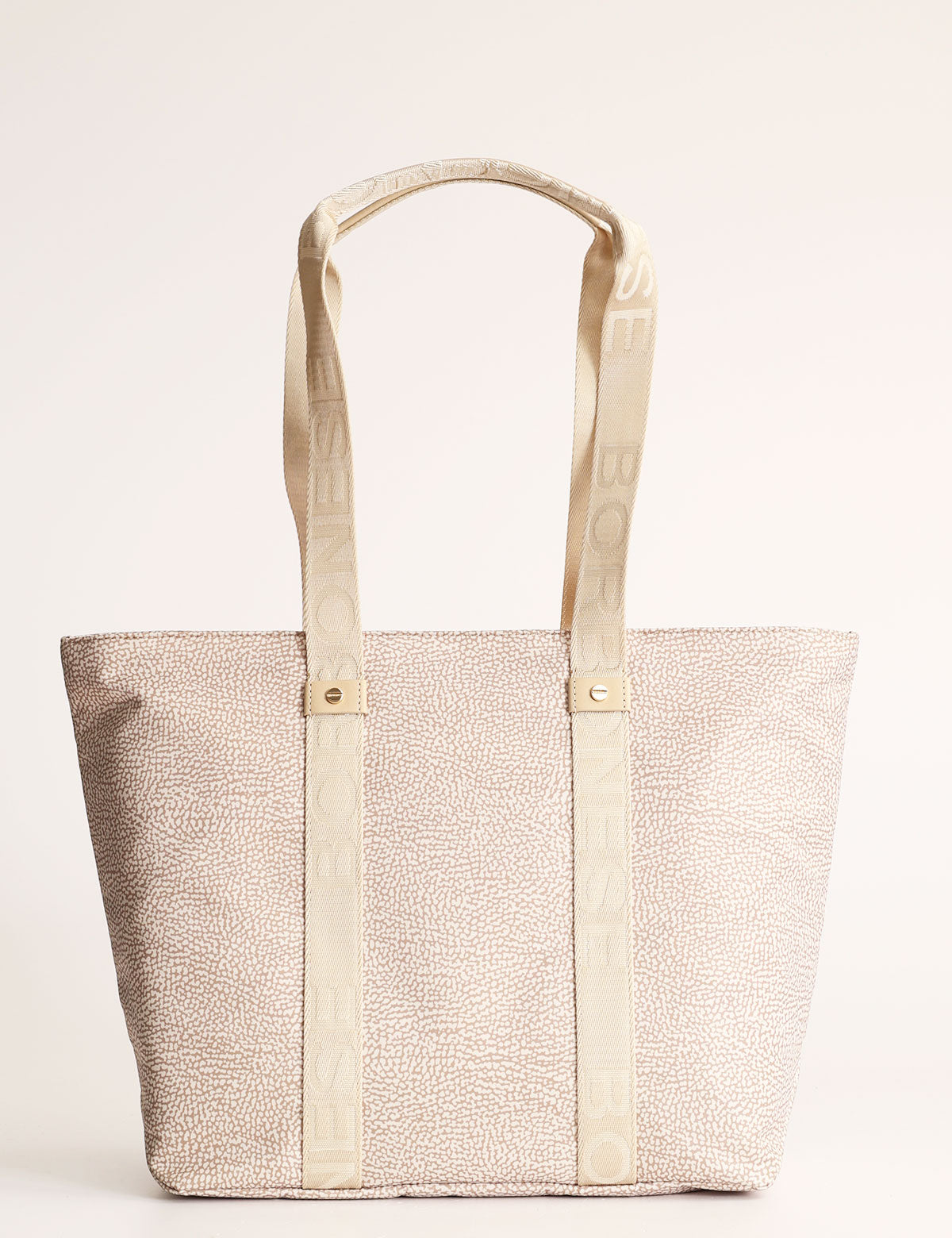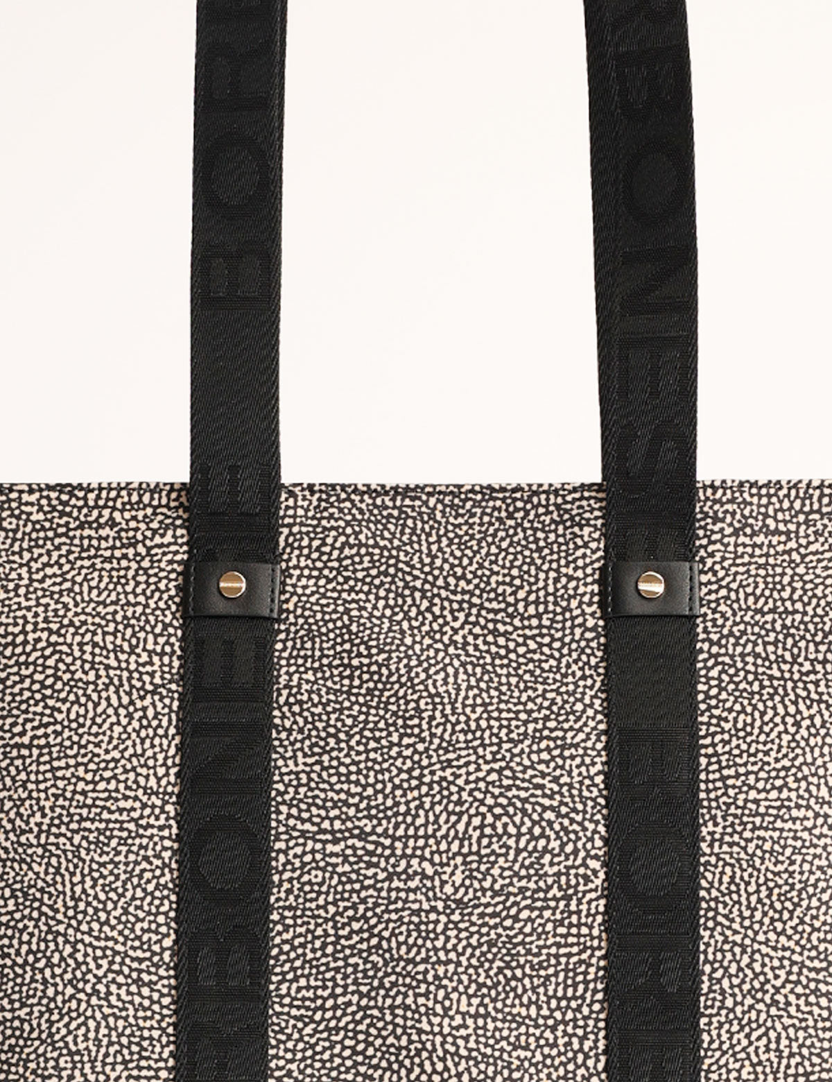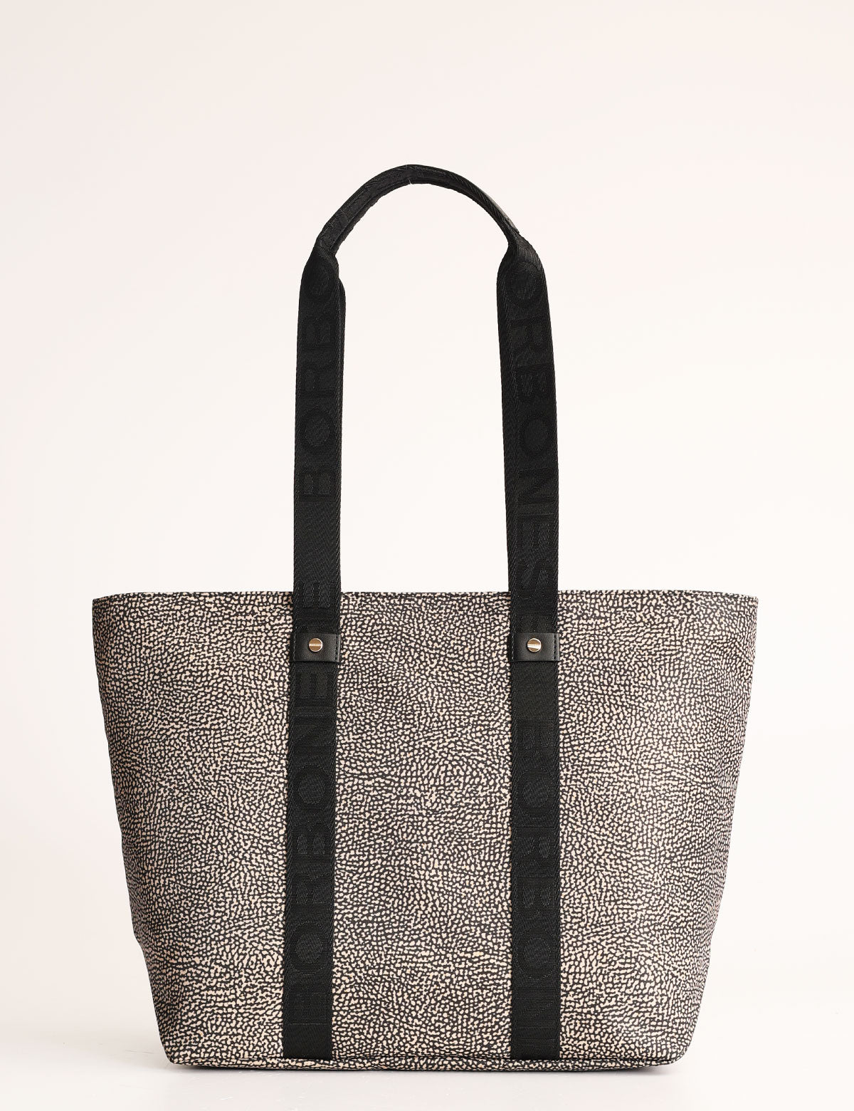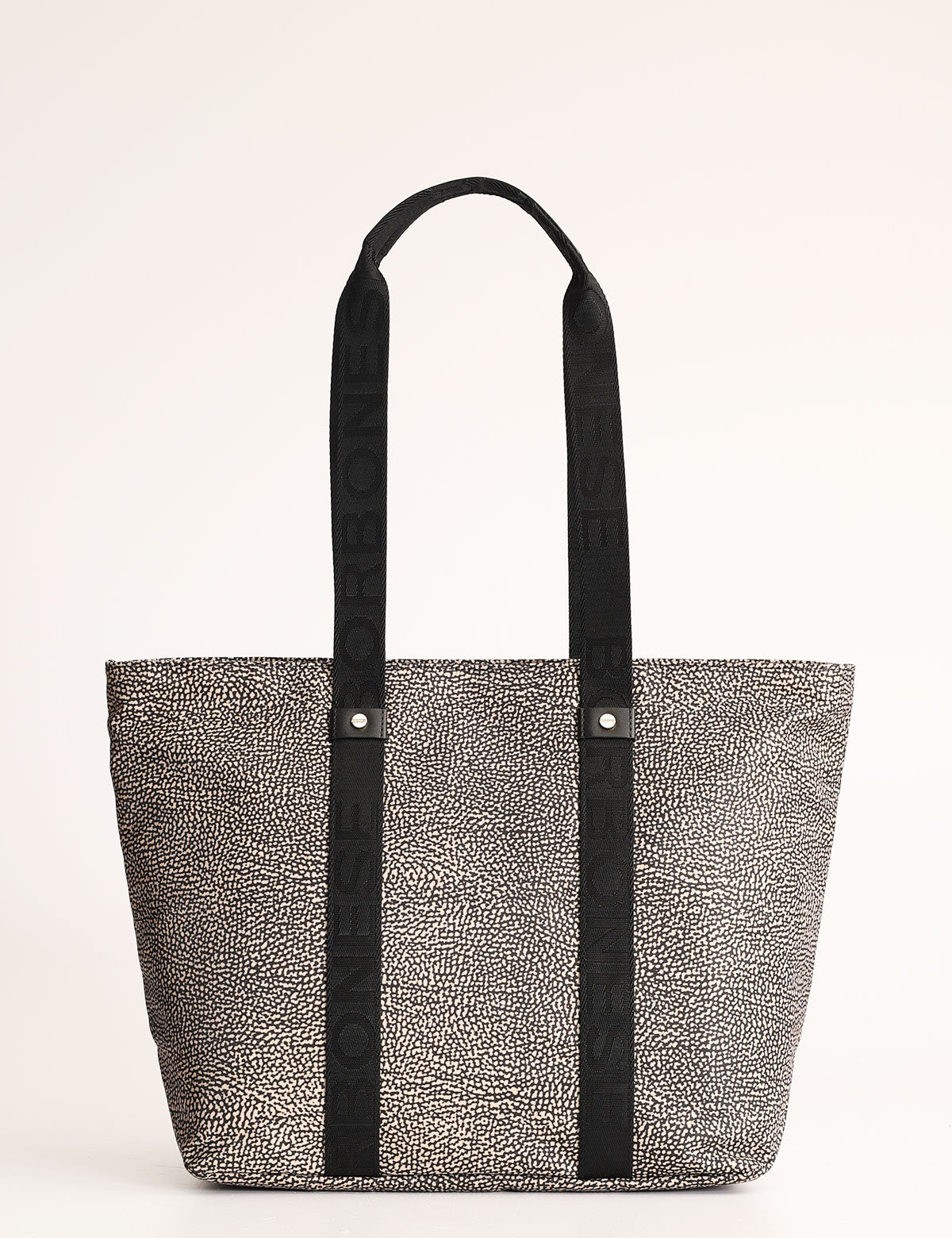 Borsa da donna Borbonese modello shopper con due manici lunghi, realizzata in nyon con stampa OP