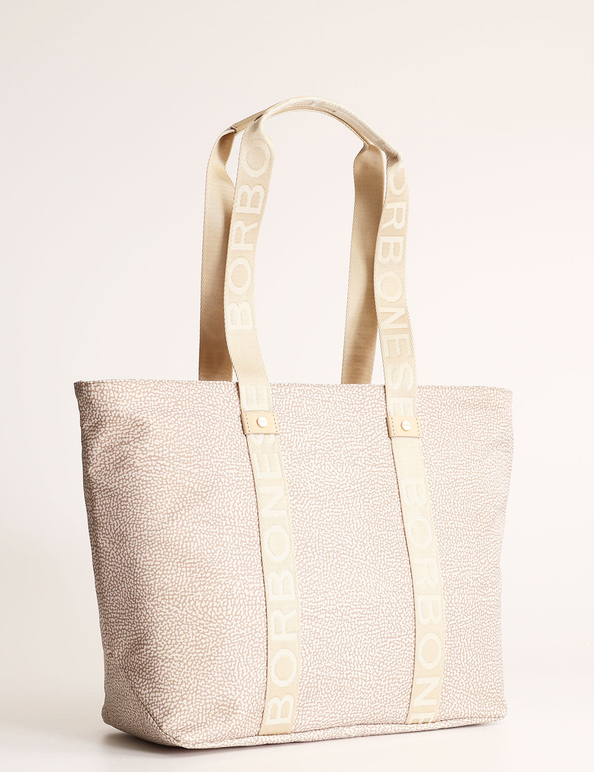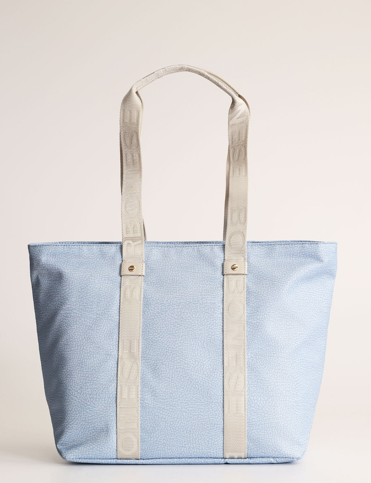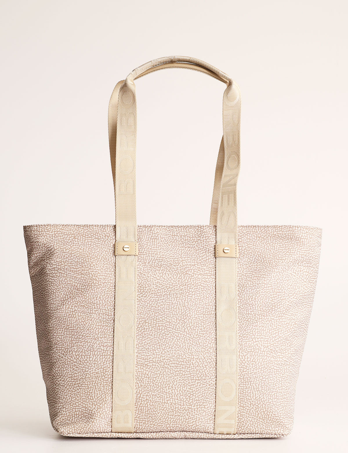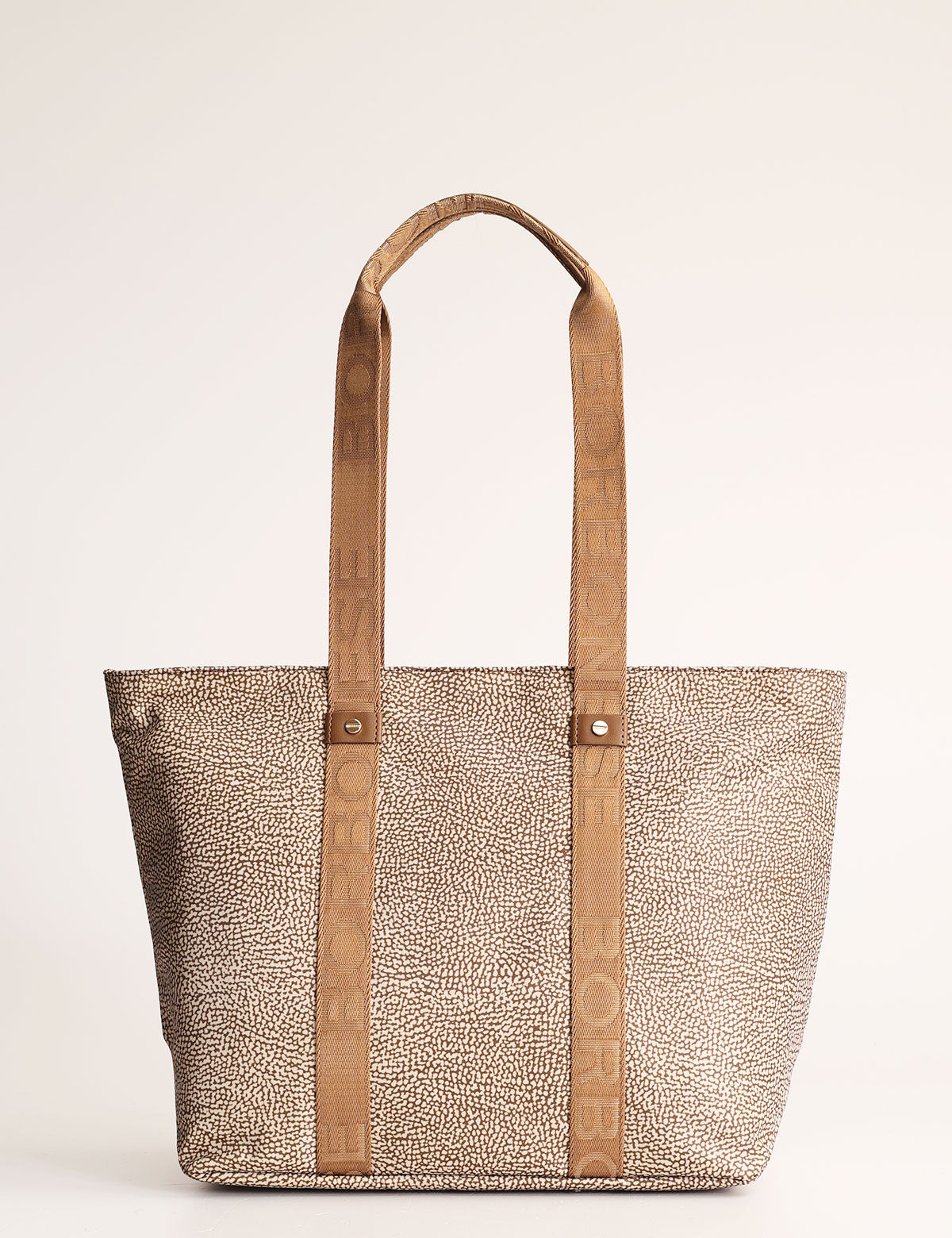 Borsa da donna Borbonese modello shopper con due manici lunghi, realizzata in nyon con stampa OP