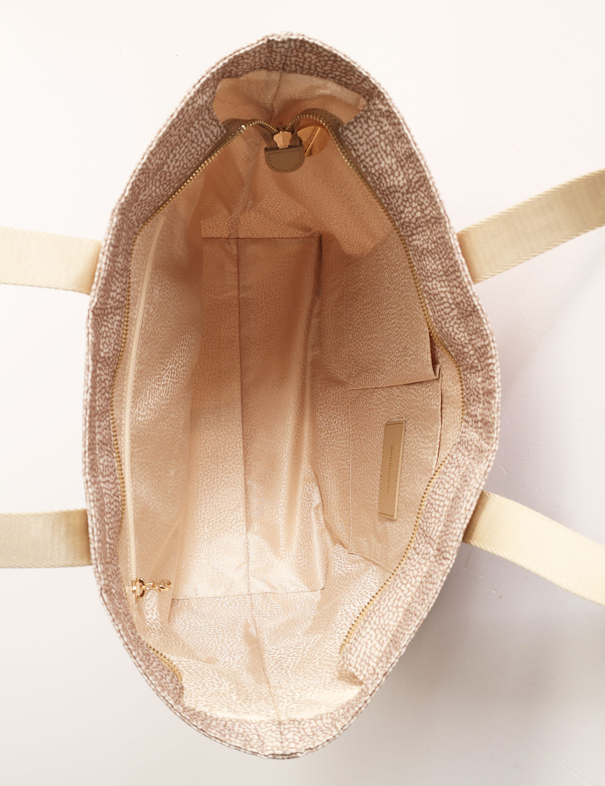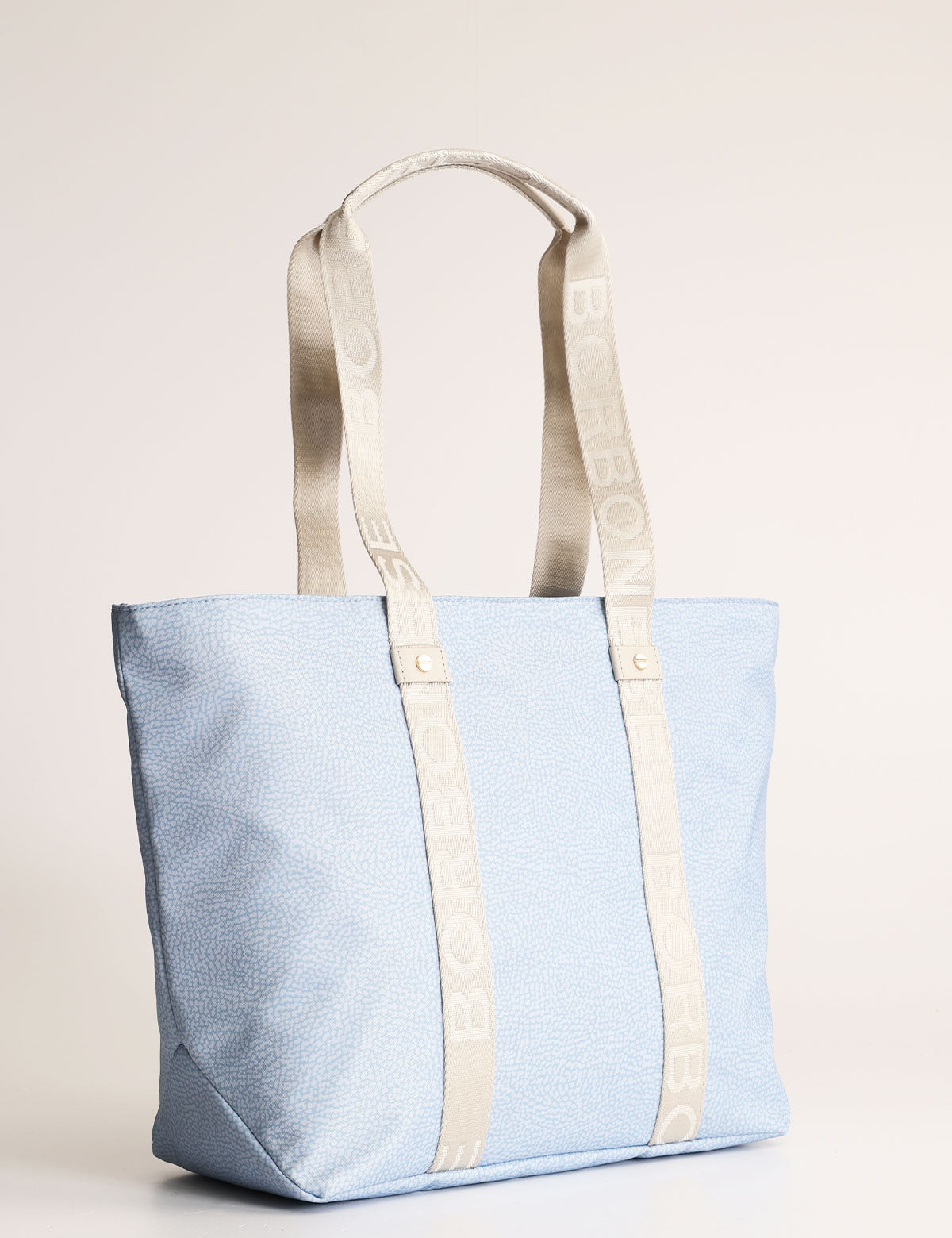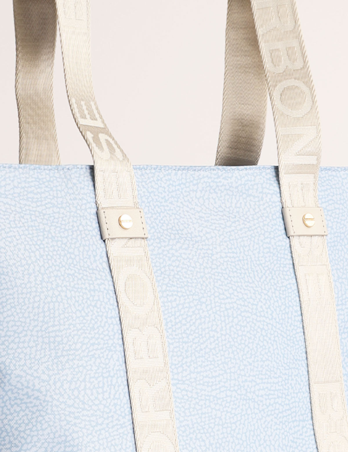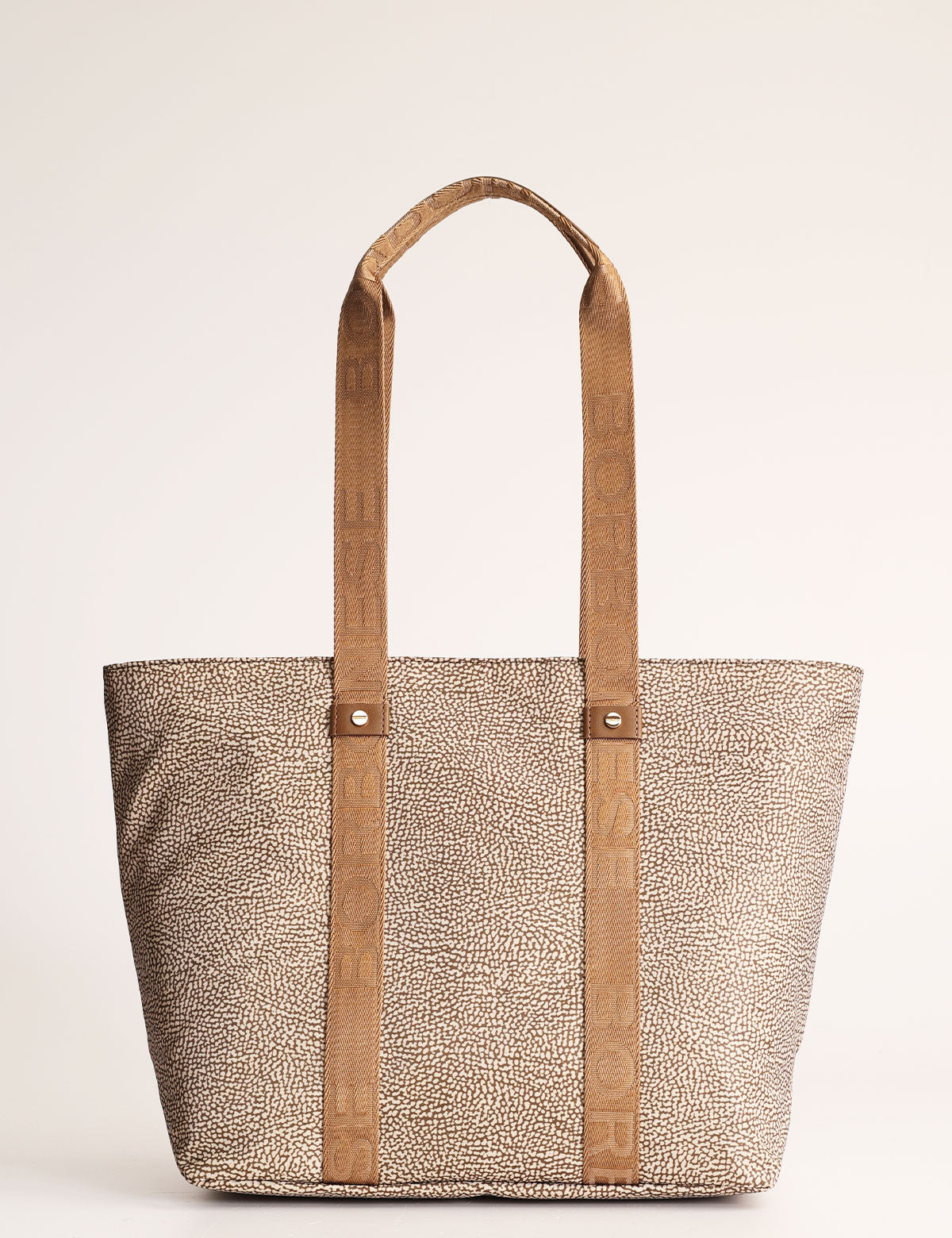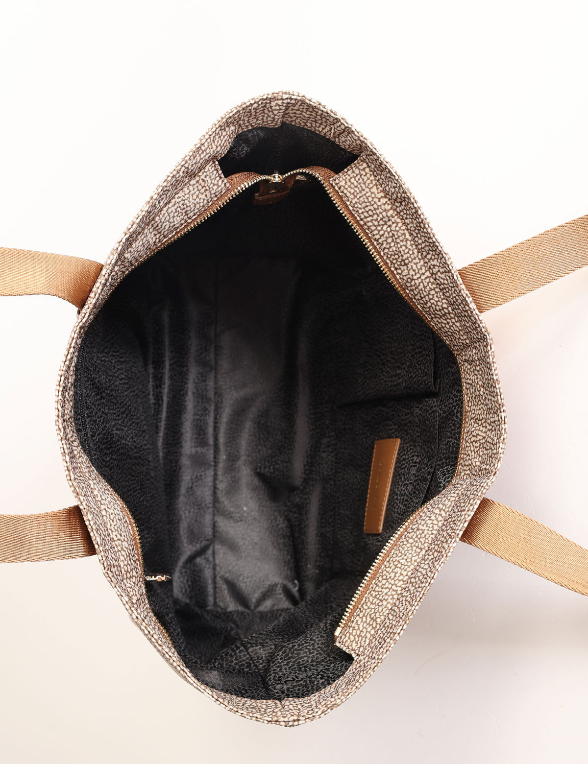 Borsa da donna Borbonese modello shopper con due manici lunghi, realizzata in nyon con stampa OP