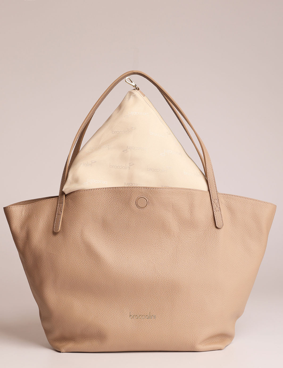 Borsa da donna Braccialini modello shopper realizzata in pelle con finitura dollaro e pochette interna removibile