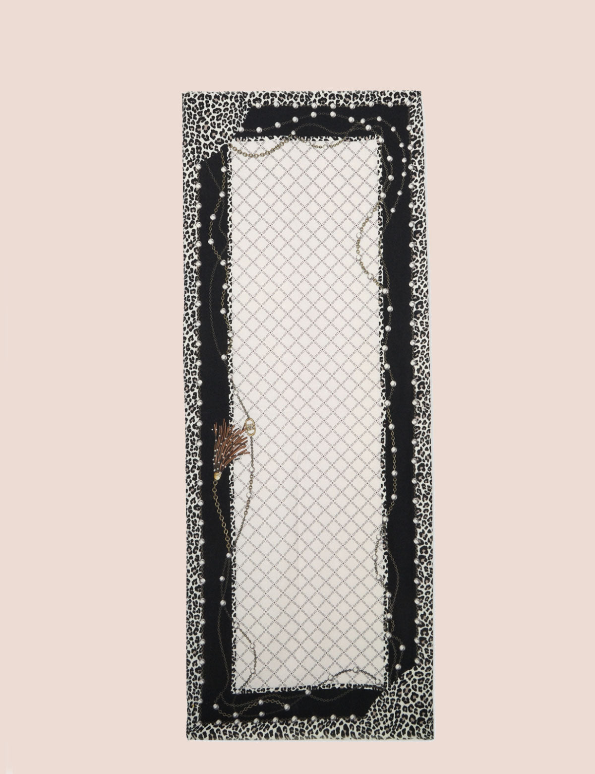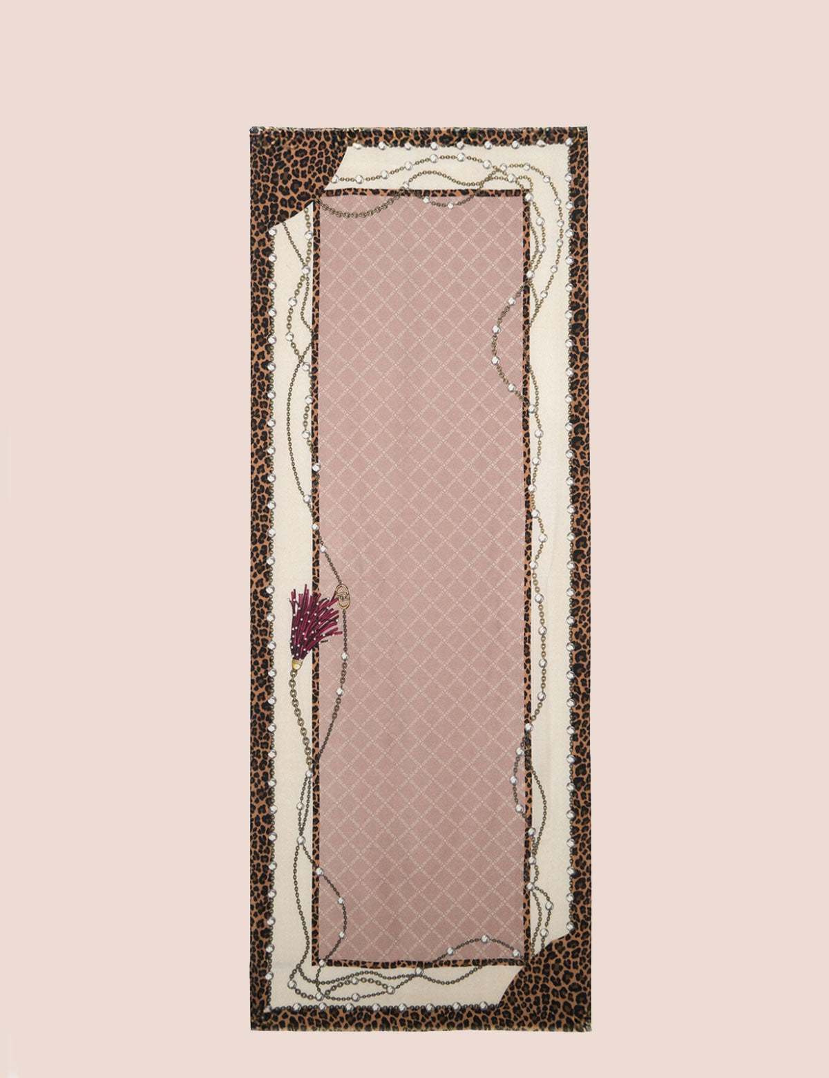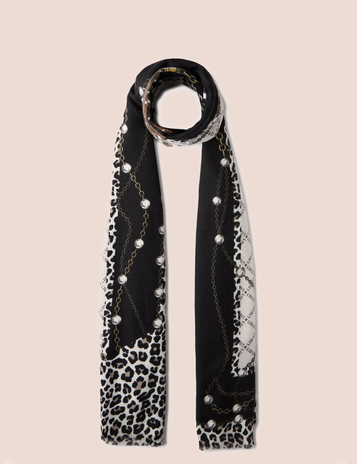 Sciarpa da donna Liu Jo con bordi sfrangiati, stampa gioiello e animalier. Dimensioni 70x180 cm
