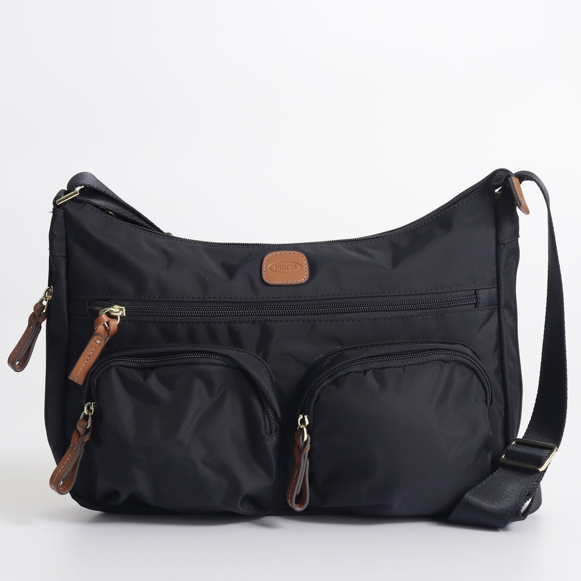 Borsa da donna Bric's realizzata in tessuto tecnico con dettagli in pelle, pratica e funzionale con il suo sistema di espandibilità laterale