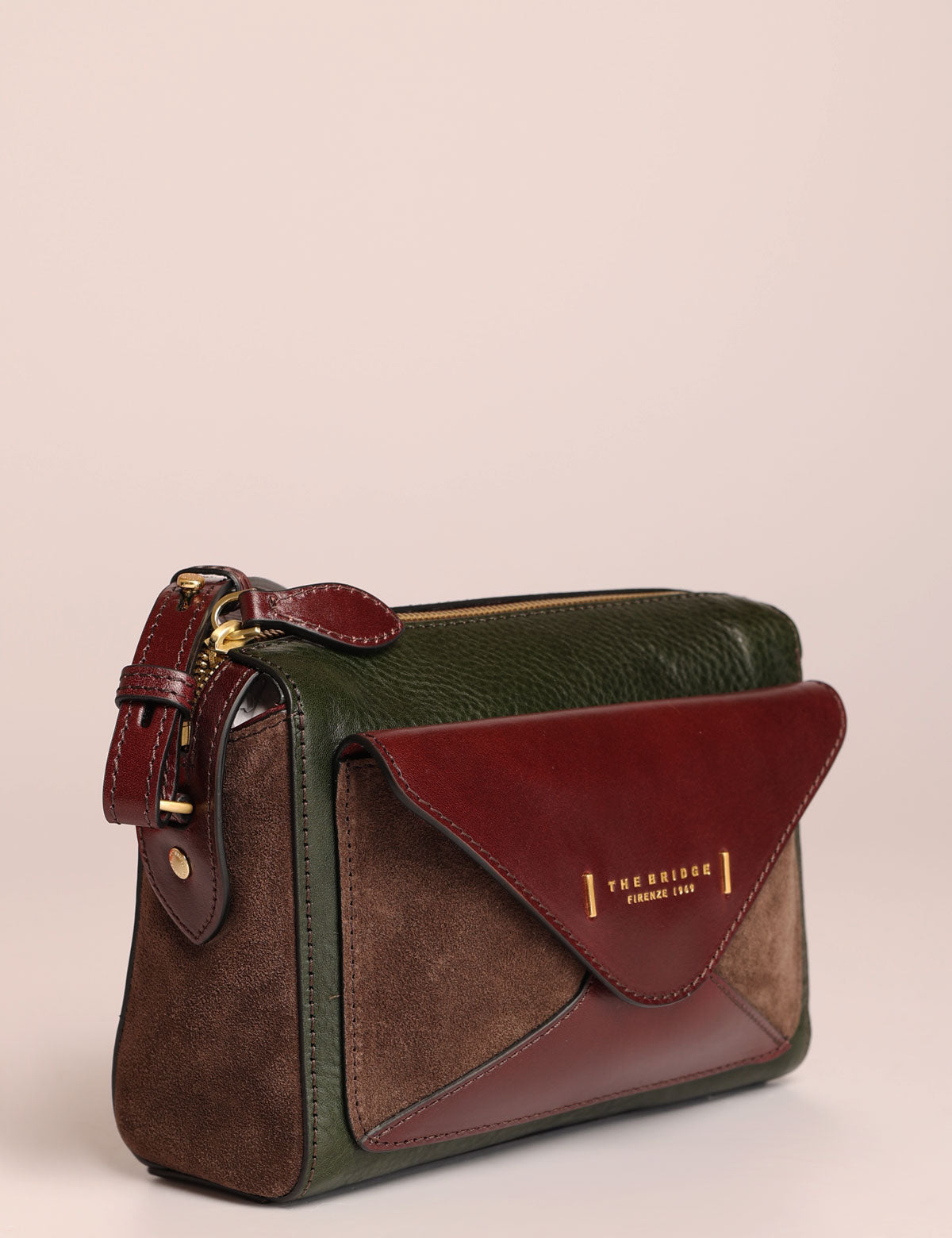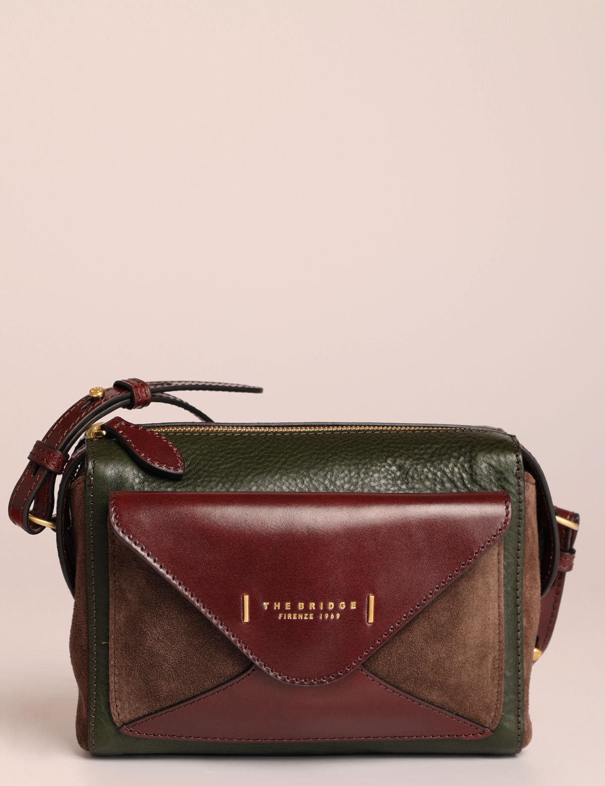 Borsa da donna The Bridge modello tracolla con tasca frontale in stile envelope, realizzata in pregiata pelle liscia e scamosciata