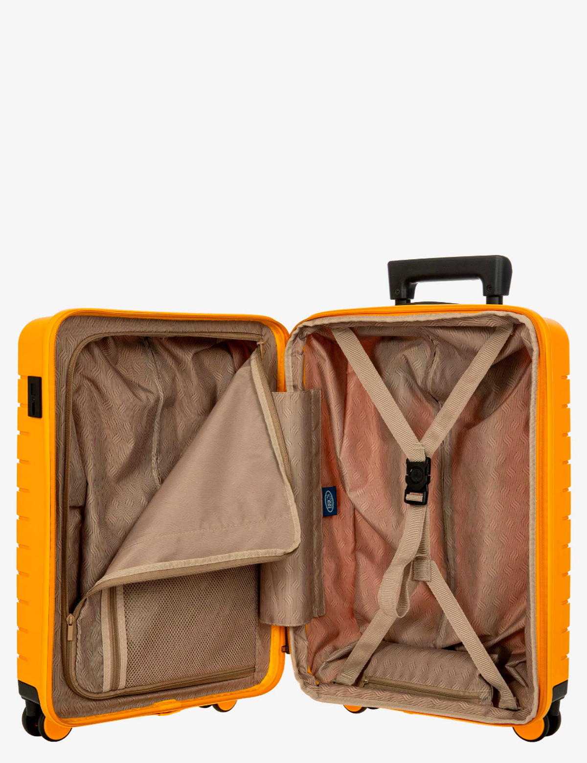 Bagaglio a mano Bric's realizzato in polipropilene, espandibile mediante zip e dotato di attacco USB per battery charge per ricaricare i propri dispositivi elettronici. Modello con tasca frontale in tessuto ed espandibilità zip