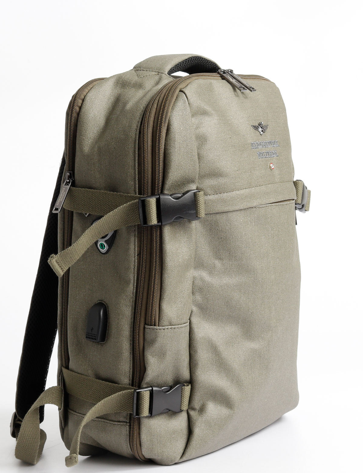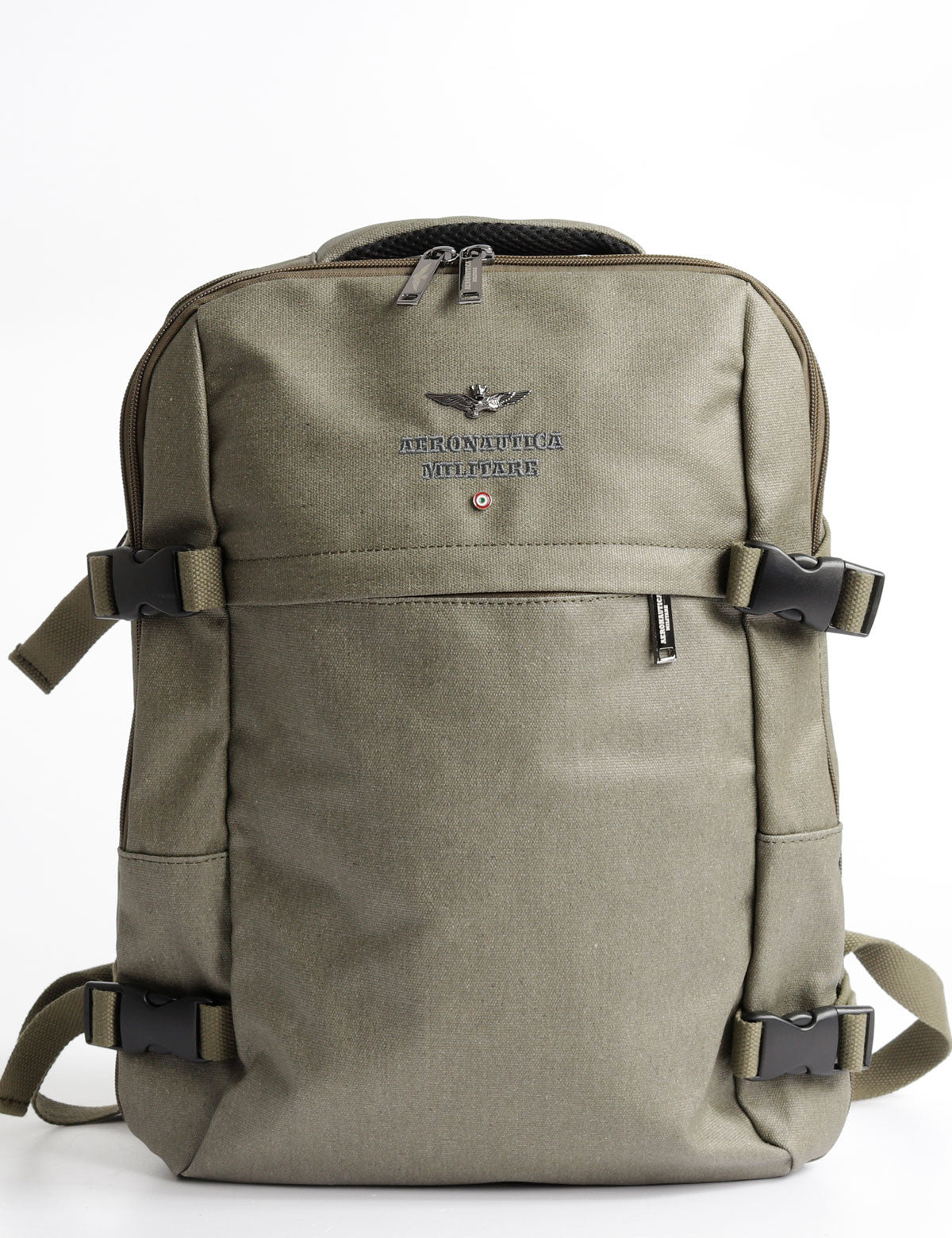 Zaino porta pc Aeronautica Militare ultraleggero, realizzato in tessuto cerato e dotato di cinghie laterali per regolarne la profondità