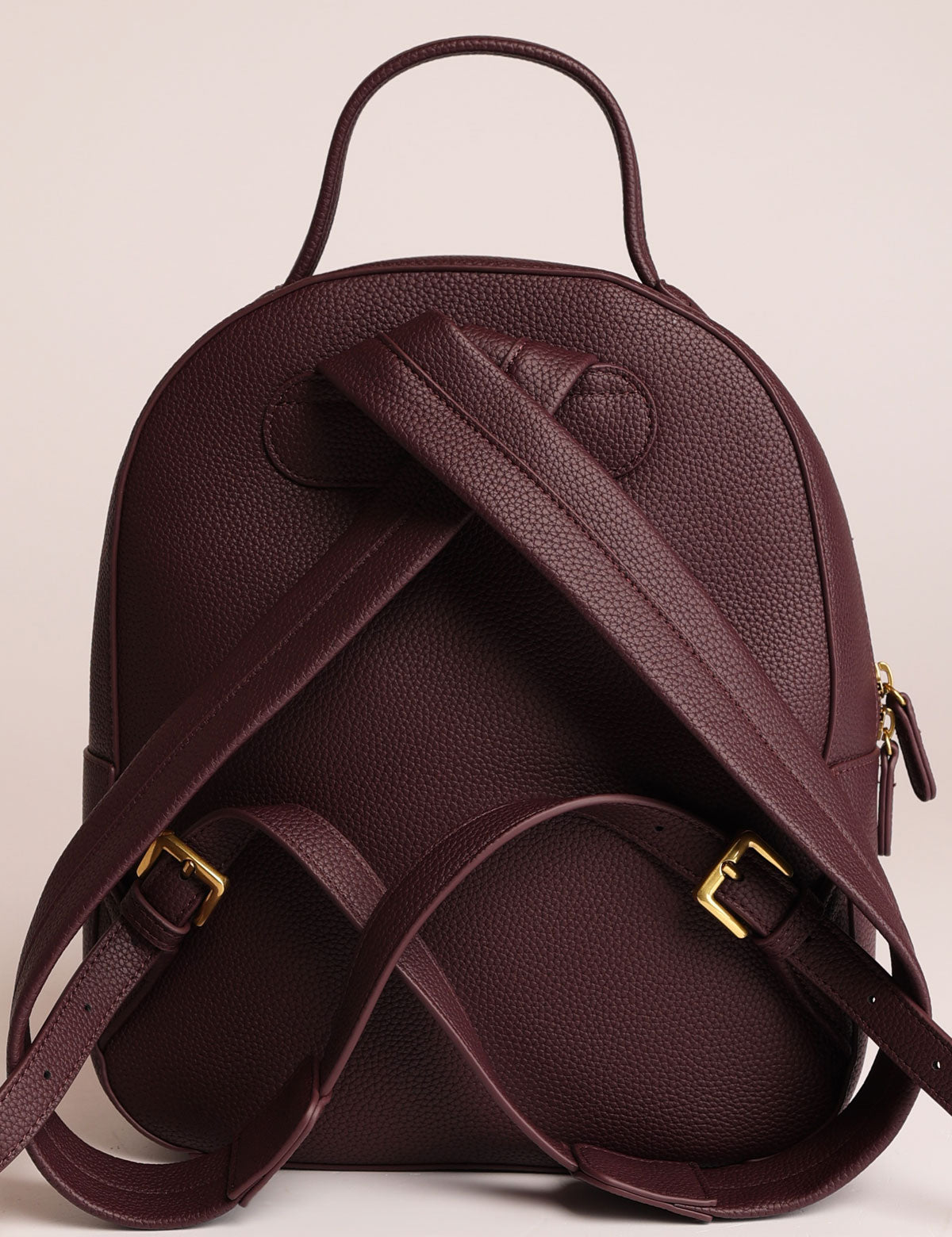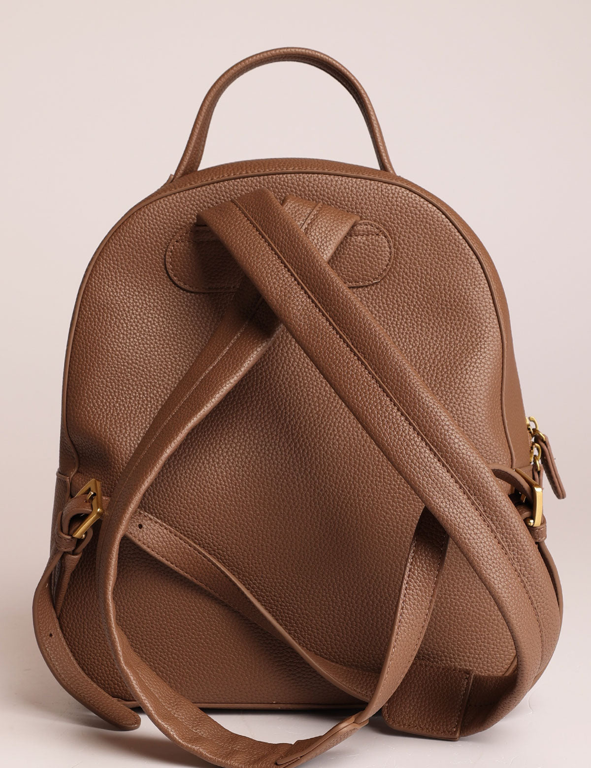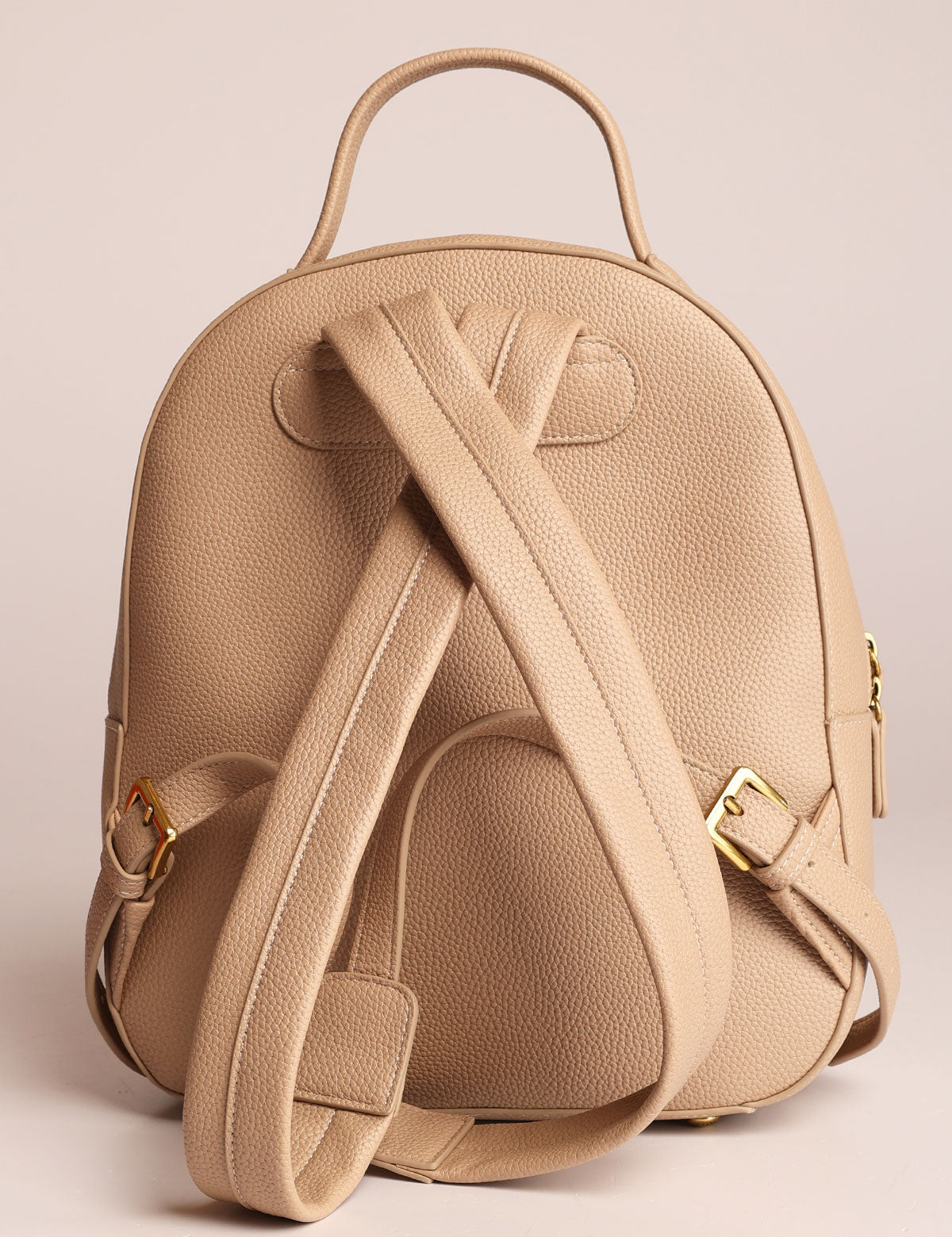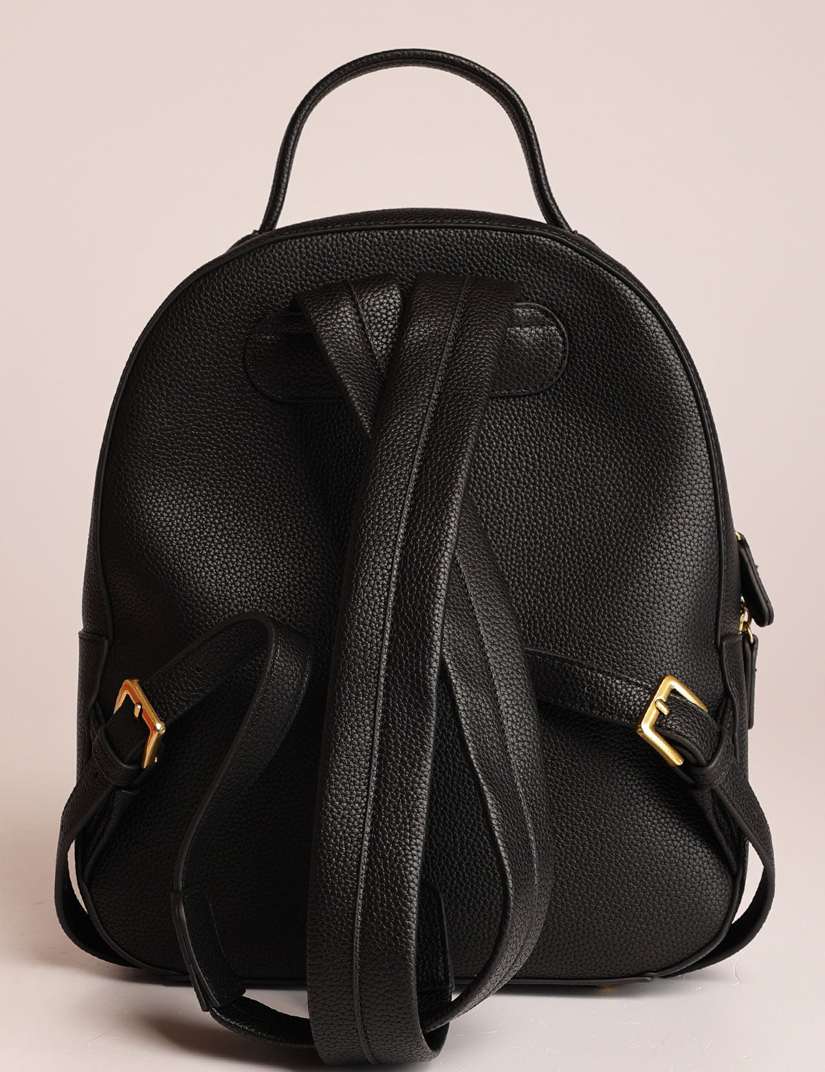 Zainetto da donna Braccialini con particolare dettaglio frontale della catena in metallo brunito all'altezza della tasca
